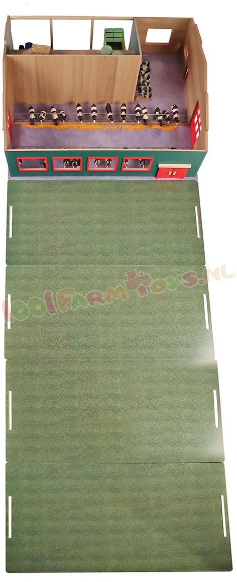 Een complete loopstal met berging en weiland. perfect voor urenlang speelplezier met paardenfiguren.