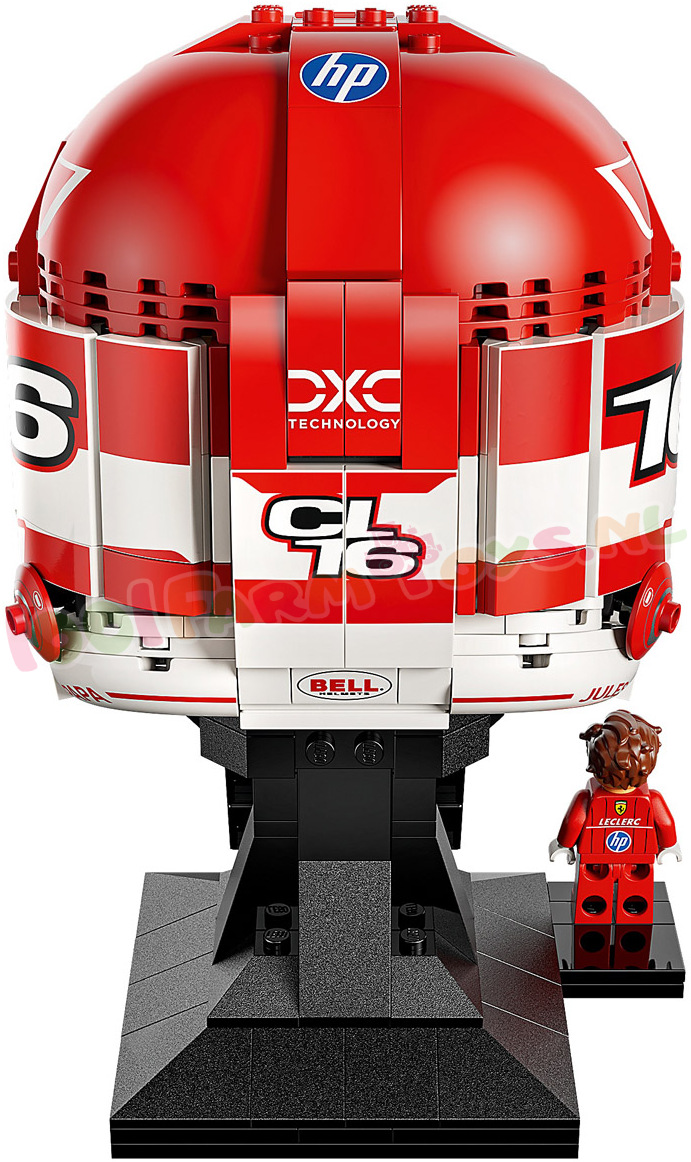 AFMETINGEN – de 886-delige LEGO® helm van Charles Leclerc is ca. 18 cm hoog. 11 cm breed en 13 cm diep