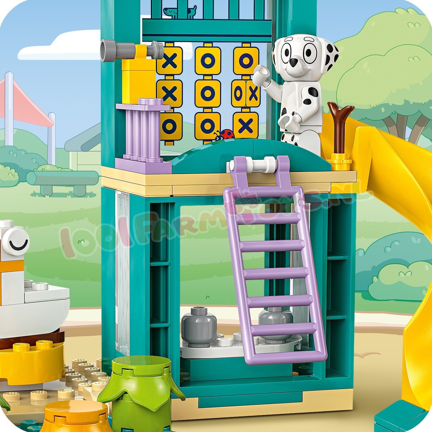 Interactief speelgoed voor kinderen vanaf 4 jaar – fans van de Bluey tv-serie gaan met de minifiguren van Bluey en Chloé naar een kleurrijke. compleet met wipwap. glijbaan. klimrek en meer