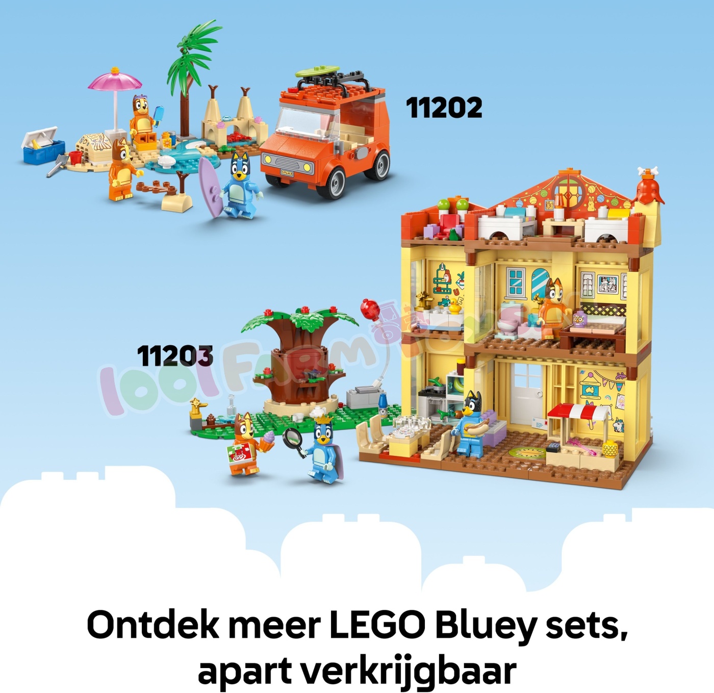 Ontdek meer Bluey plezier – bekijk ook het andere LEGO® Bluey speelgoed (apart verkrijgbaar) met sets die geschikt zijn voor peuters. kleuters en kinderen vanaf 4 jaar