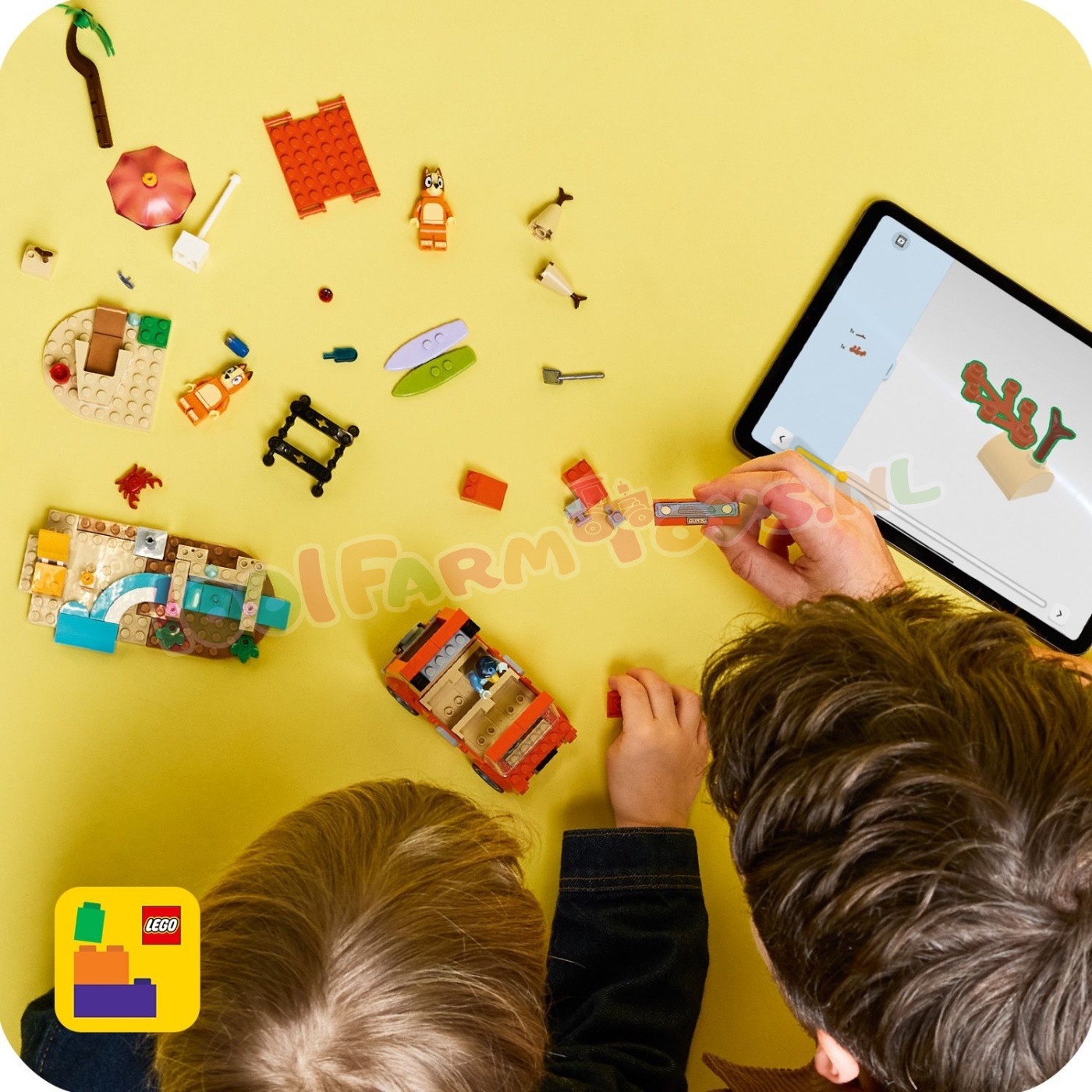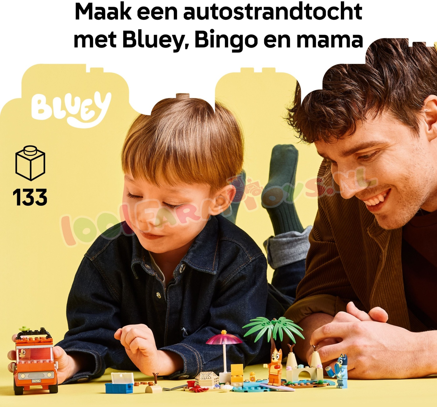 LEGO<br>Bluey's<br>Autorit<br>naar<br>het<br>Strand