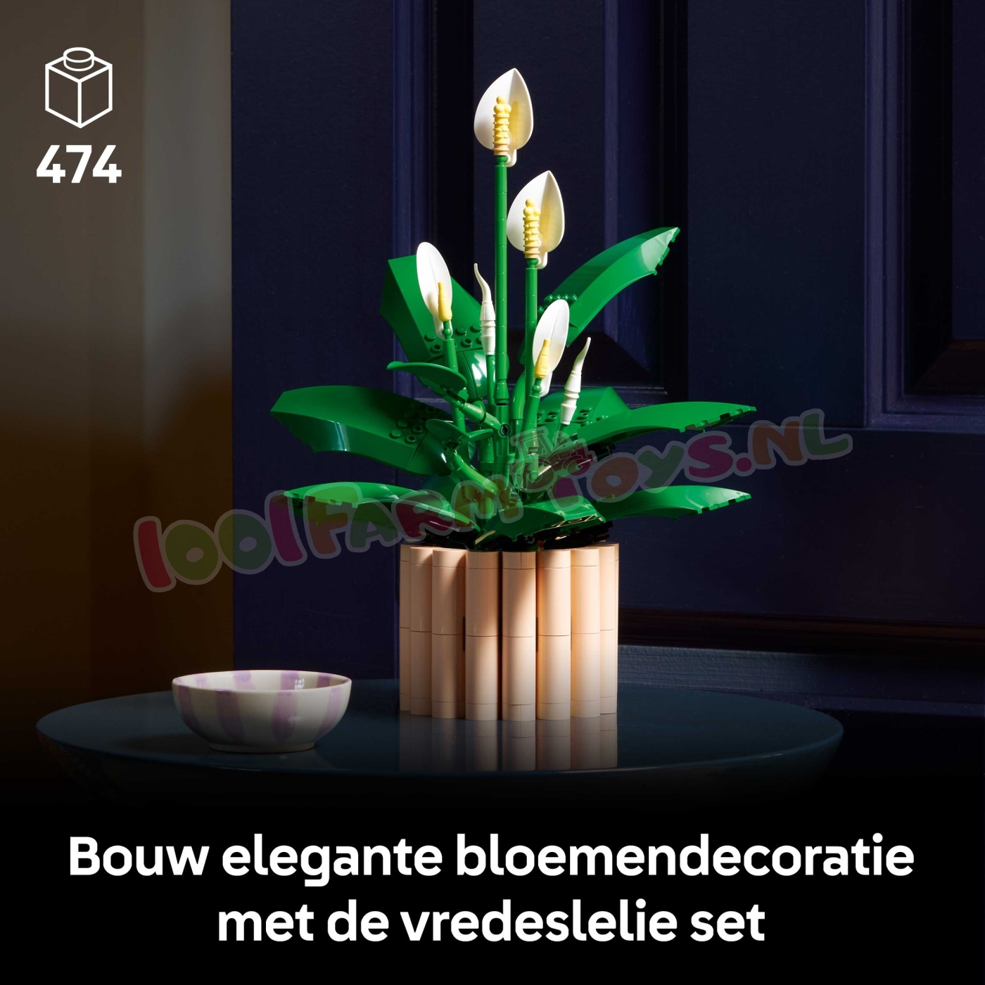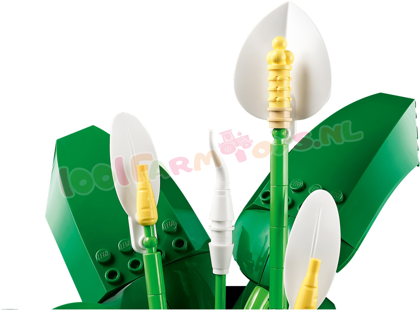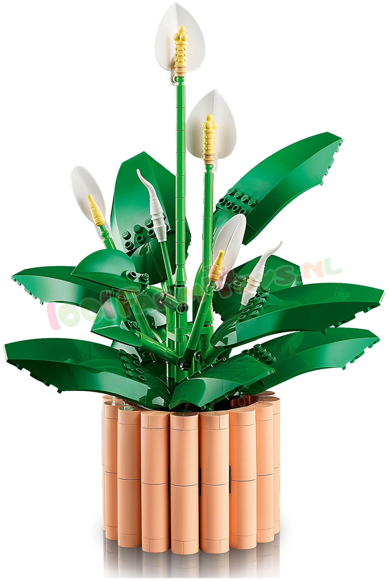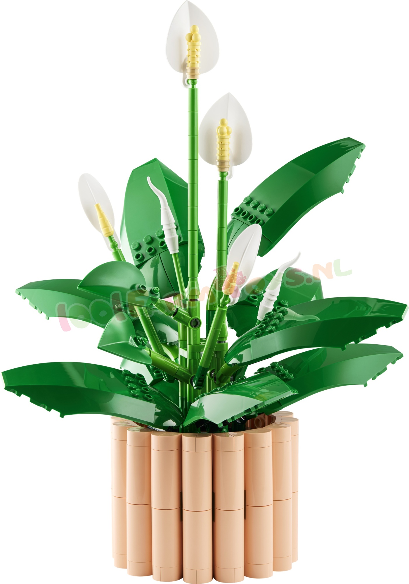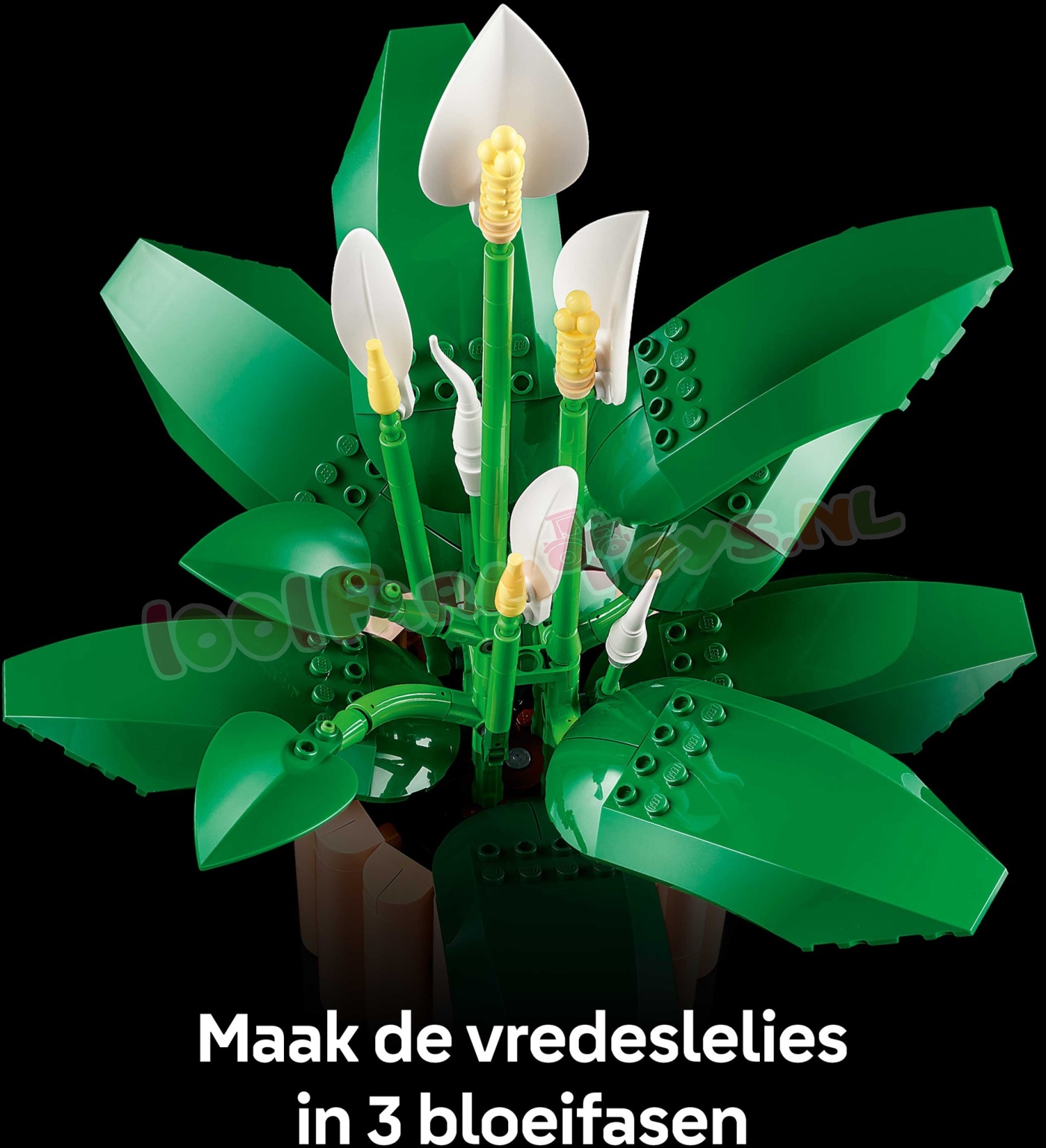 LEGO® BLOEMEN – creëer een vredeslelie met bloemen in 3 groeistadia: er zijn 2 ontkiemende knoppen. 2 gedeeltelijk geopende bloemen en 2 bloemen in volle bloei