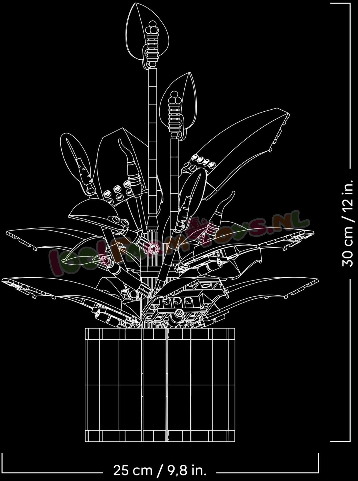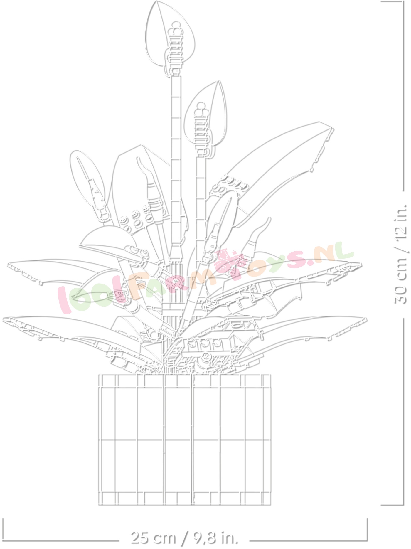AFMETINGEN – deze 474-delige lepelplant is ca. 30 cm hoog. 25 cm breed en 22 cm diep