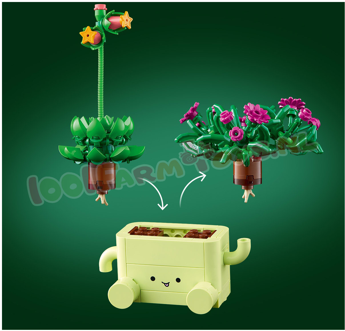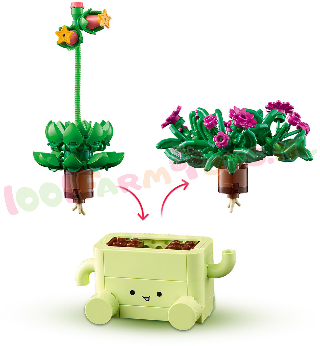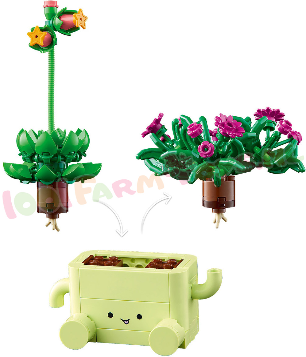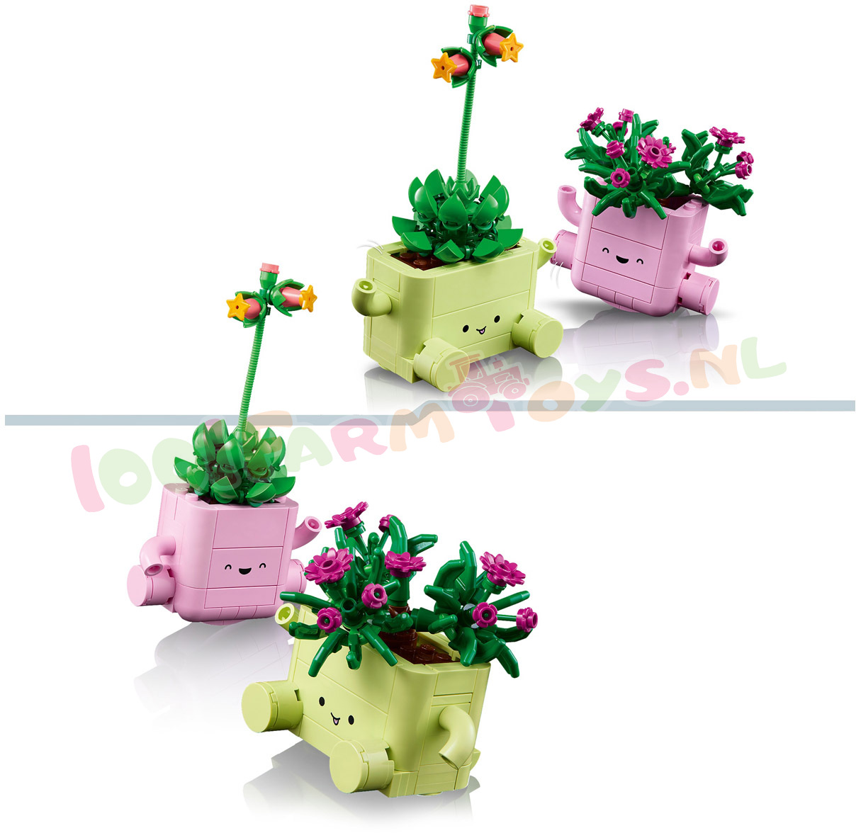MIX EN MATCH – deze planten en potten zijn compatibel met de LEGO® Botanicals Vrolijke plantjes (10349) set. apart verkrijgbaar. zodat kinderen hun eigen plantendisplay kunnen samenstellen