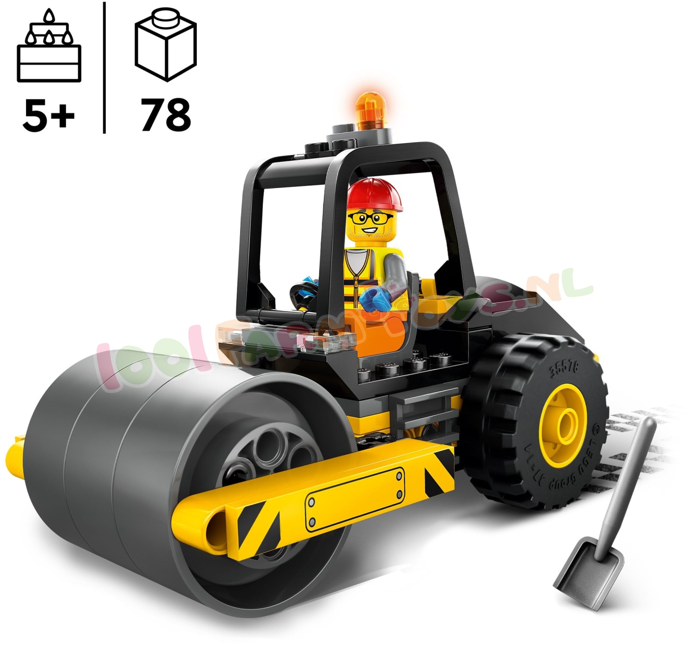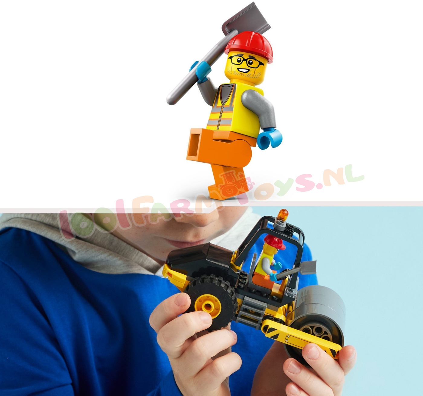 Stoomwals voor kinderen vanaf 5 jaar – LEGO® City Stoomwals met enorme. dikke banden en een grote rollende trommel voor fans van machtige bouwvoertuigen