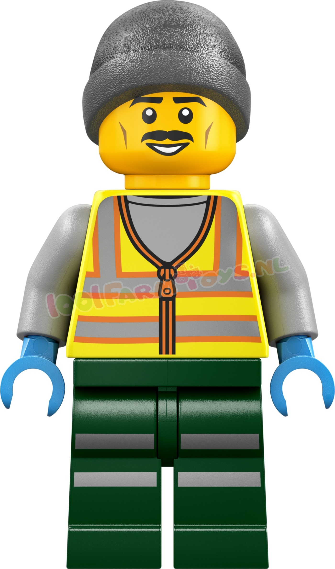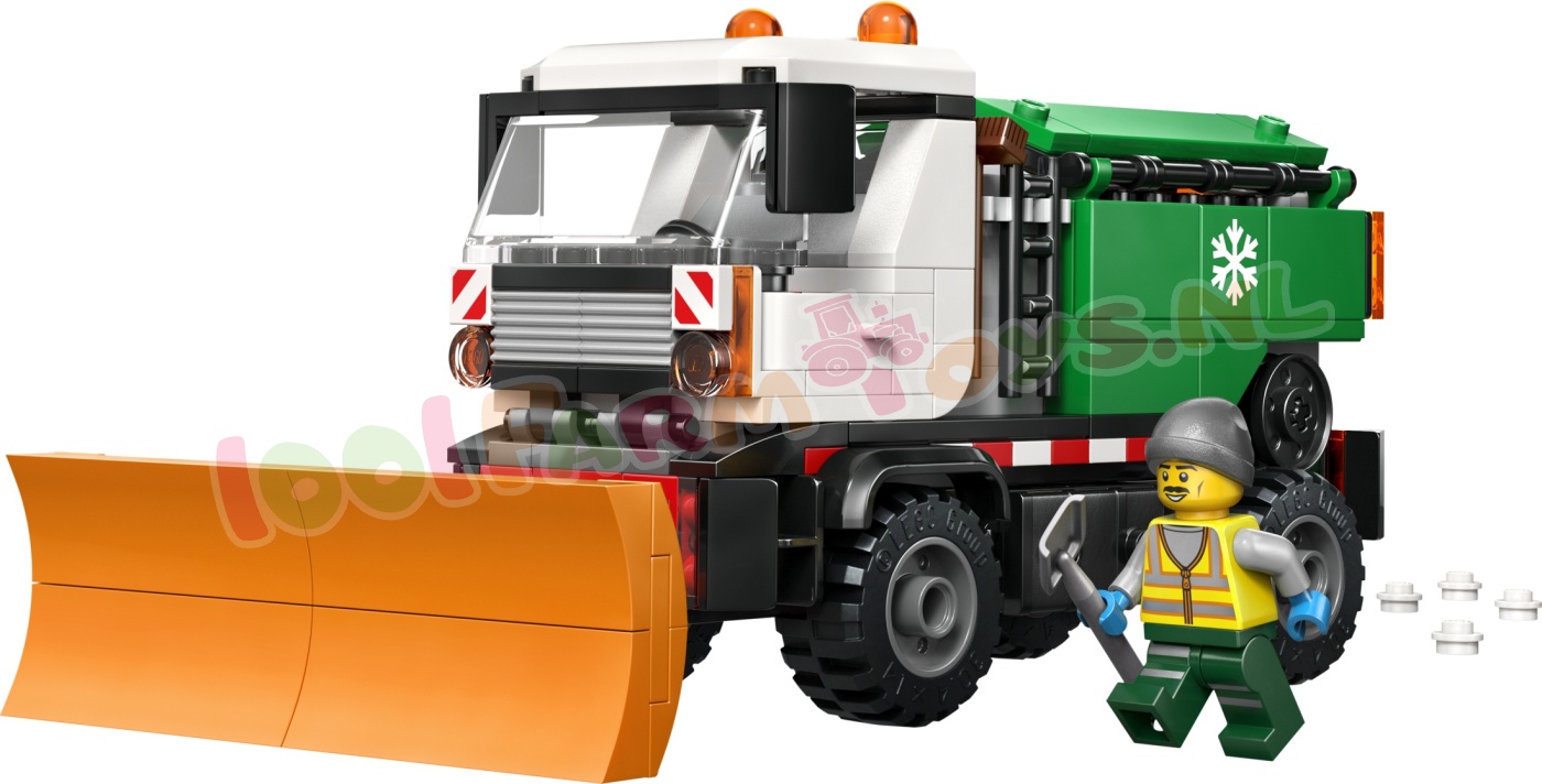 WAT ZIT ER IN DE DOOS –bevat alles wat kinderen nodig hebben om een realistische sneeuwploeg met rubberen banden. schuiver en strooifunctie te bouwen. plus een minifiguur van een chauffeur