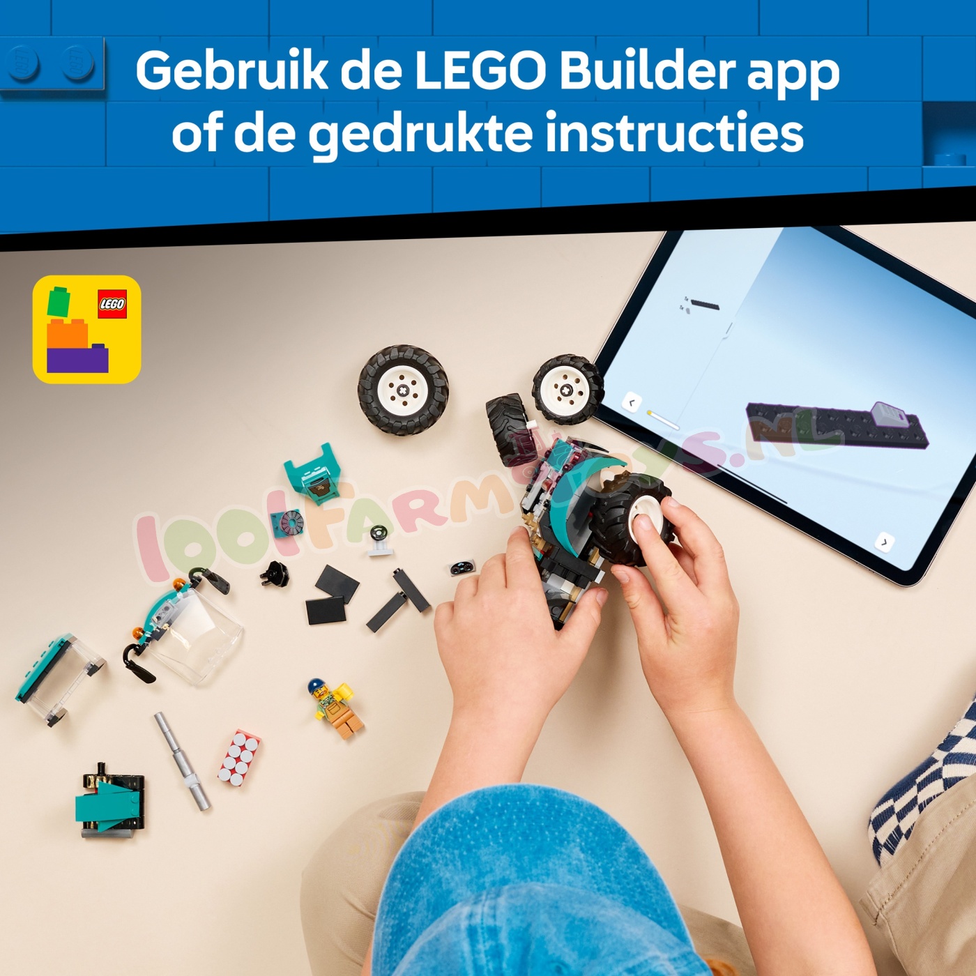 Stimuleer de fantasie met deze LEGO® City Tractor (60498) bouwset voor kinderen vanaf 6 jaar. Dit gedetailleerde landbouwvoertuig heeft een fris blauwgroen kleurenschema en 4 grote rubberen tractorbanden. Jonge bouwers kunnen het dak van de cabineverwijderen om de minifiguur van de boer erin te zetten en de motorkap openen om de motor te inspecteren. voordat ze op een spannend avontuur naar het platteland vertrekken. Deze bouwbare LEGO City Tractor is een geweldig cadeau voor een verjaardag of de feestdagen voor jongens. meisjes en kinderen van 6 jaar die dol zijn op landbouwvoertuigen en fantasierijk spelen. Combineer deze set met andere sets uit het LEGO City assortiment (apart verkrijgbaar) voor nog grotere boerderijavonturen. Met deze LEGO Tractor speelset genieten kinderen van intuïtief bouwplezier met de LEGO Builder app. Ze kunnen bouwen met 3D-instructies. inzoomen en het model draaien terwijl ze hun voortgang bijhouden. De set bevat 204 onderdelen.
