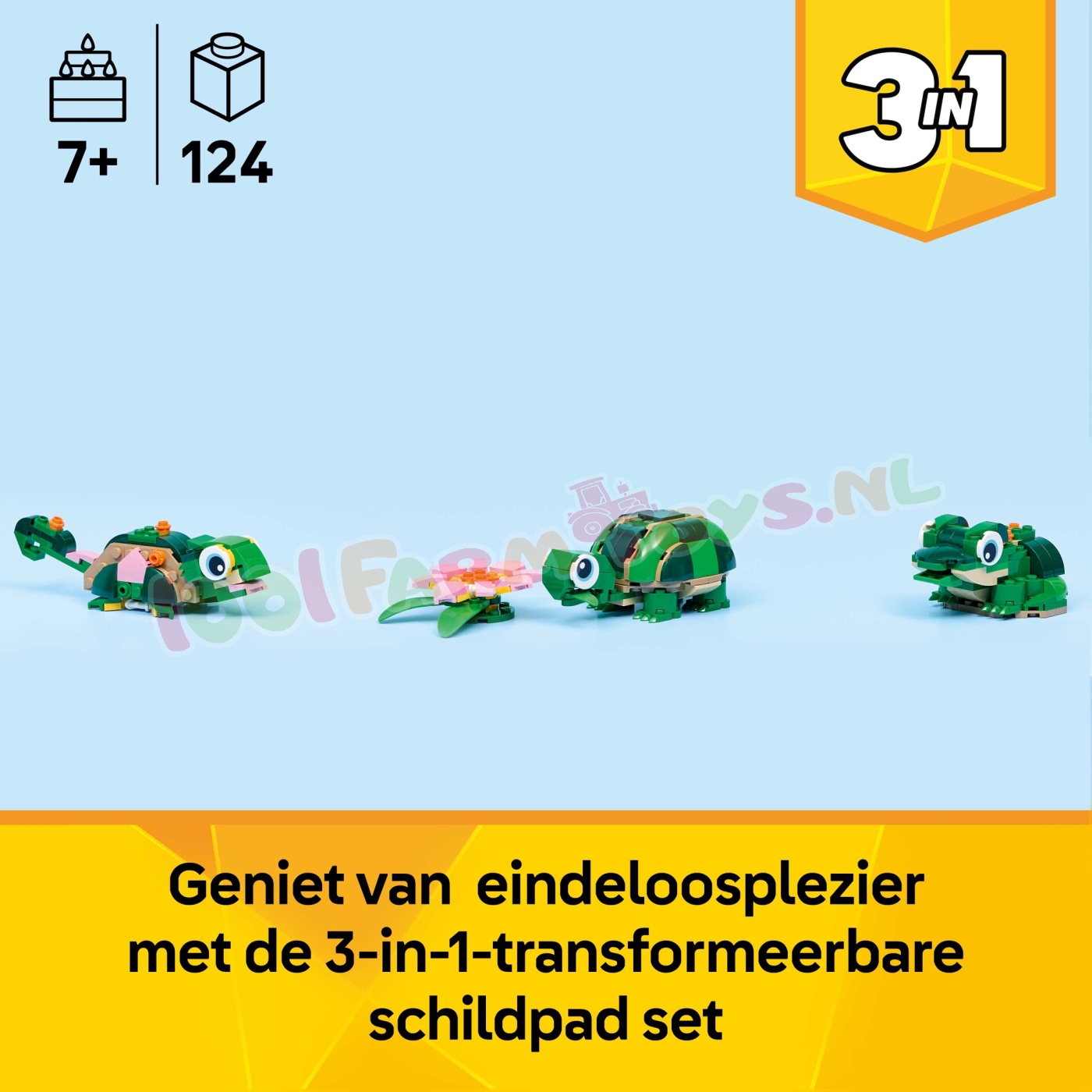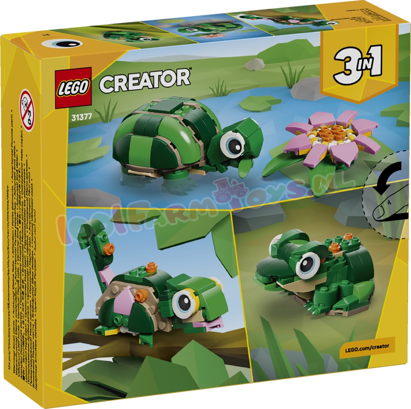 3-IN-1 DIERENSET VOOR KINDEREN – met het LEGO® Creator 3in1 Schildpad met waterlelie (31377) bouwspeelgoed kunnen meisjes en jongens vanaf 7 jaar 3 schattige dierenfiguren bouwen en herbouwen met dezelfde stenen