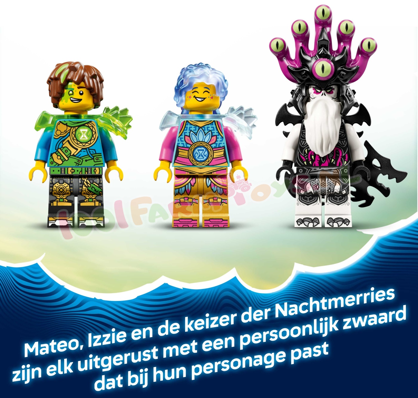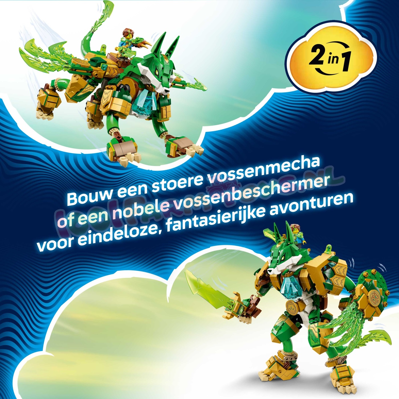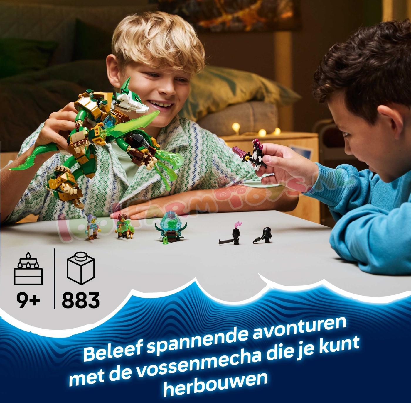 Stimuleer de fantasie van kinderen vanaf 9 jaar met de LEGO® DREAMZzz™ Vossenmecha bouwset (71508). een fantasierijke speelgoedmecha met 2 bouwmogelijkheden. Jonge dromers kunnen genieten van het bouwen van een krachtige vossenstrijder die op 2 poten staat en wordt geleverd met een zwaard en een schild. of een majestueuze vossenbeschermer op 4 poten met vleugels. De minifiguren van Mateo. Izzie en de Keizer der Nachtmerries stimuleren fantasierijke rollenspellen en elk figuur heeft een zwaard in een kleur die bij hun persoonlijkheid past. Kinderen zullen het geweldig vinden om 2 Grimgebroed figuren. een figuur van Z-Blob en een diamanten ei met daarin een groen Schattenwezen te ontdekken. Dit bouwspeelgoed is een fantastisch verjaardagscadeau voor kinderen en wordt geleverd met bouwinstructies op basis van verhalen. zodat dromers helemaal op kunnen gaan in de actie. De instructies zijn ook digitaal beschikbaar in de LEGO Builder app. waar kinderen kunnen inzoomen. draaien en hun voortgang kunnen bijhouden. De set bevat 883 onderdelen. FANTASIERIJKE VOSSENMECHA – stimuleer de fantasie van kinderen met de LEGO® DREAMZzz™ Vossenmecha (71508) bouwset voor jongens en meisjes vanaf 9 jaar 1 MYTHISCH SPEELGOEDDIER. 2 BOUWMOGELIJKHEDEN – kinderen kunnen ervoor kiezen om een verstelbare vossenstrijder met een zwaard en een schild te bouwen. of een vossenbeschermer op 4 poten met vleugels 3 LEGO® DREAMZZZ™ MINIFIGUREN – inclusief Mateo. Izzie en de Keizer der Nachtmerries. plus Z-Blob. 2 Grimgebroed figuren en een groen Schattenwezen om te verzamelen en mee te spelen FANTASIESET MET ACCESSOIRES – de 3 minifiguren worden geleverd met zwaarden in kleuren die bij hun persoonlijkheid passen en er is een diamanten ei waaruit het Schattenwezen tevoorschijn komt CADEAUTIP VOOR KINDEREN – dit bouwspeelgoed is een leuk verjaardagscadeau voor kinderen en LEGO® DREAMZzz™ fans en kan na het spelen in hun slaapkamer worden neergezet EEN MEESLEPEND AVONTUUR – de bouwinstructies op basis van verhalen laten kinderen helemaal opgaan in de actie en zijn ook digitaal beschikbaar in de LEGO® Builder app ONTDEK MEER CREATIEF SPEELGOED – breid je fantasierijke avontuur uit met andere bouwsets (apart verkrijgbaar) uit de LEGO® DREAMZzz™ collectie met verschillende dieren. mecha en voertuigen AFMETINGEN – de 883-delige dierenmecha is ca. 26 cm hoog. 25 cm breed en 20 cm diep als deze als vossenstrijder is gebouwd.