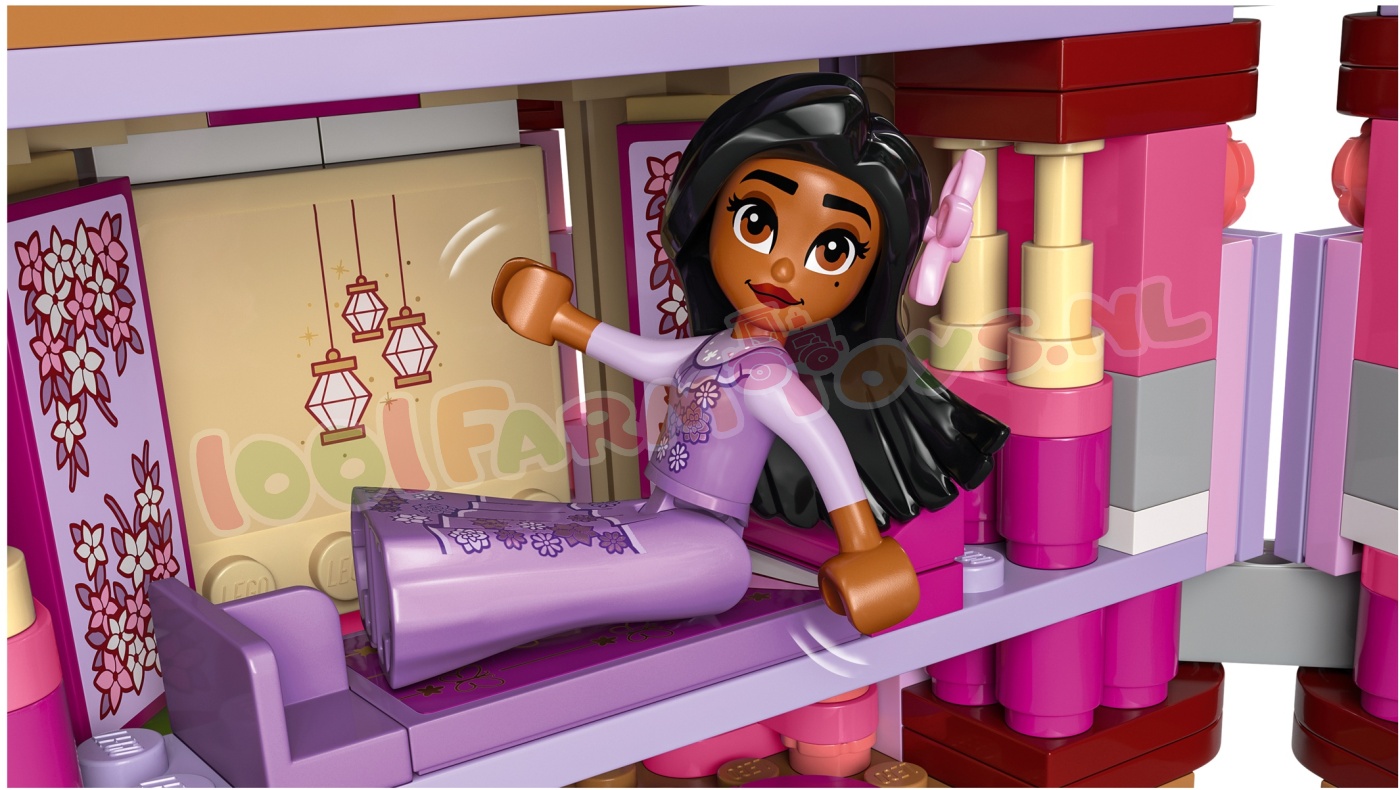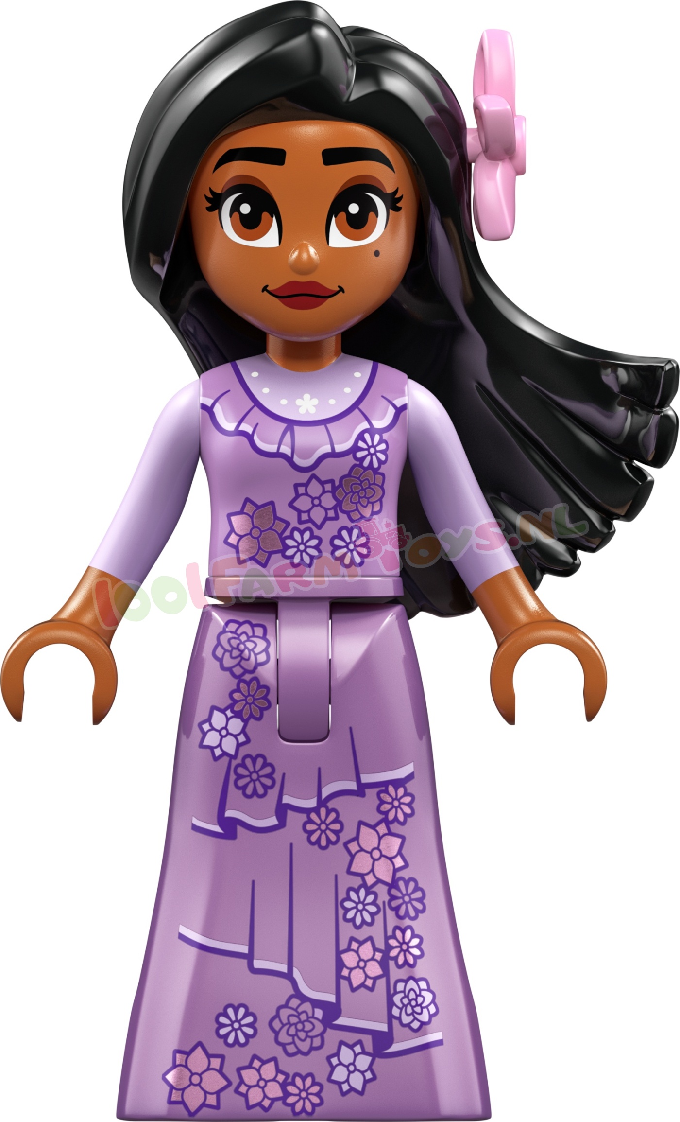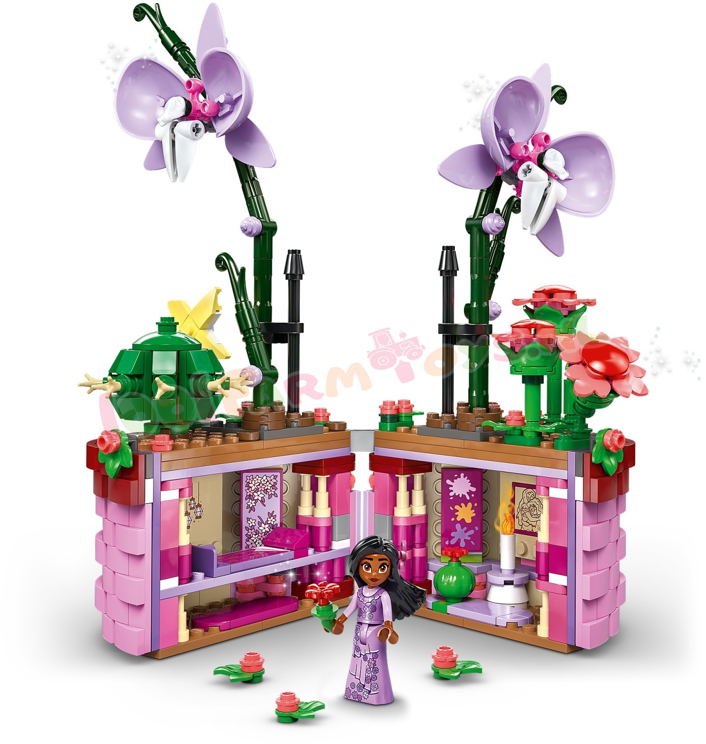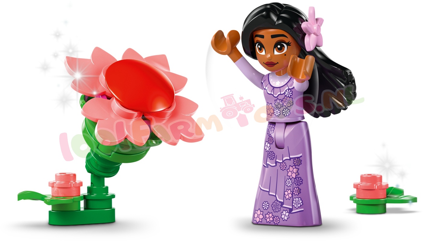Creatieve mogelijkheden – de bouwbare set bevat een bloemenmand die open kan met een design dat is geïnspireerd op de film. bloemen en een Isabela LEGO® | Disney Encanto minipoppetje