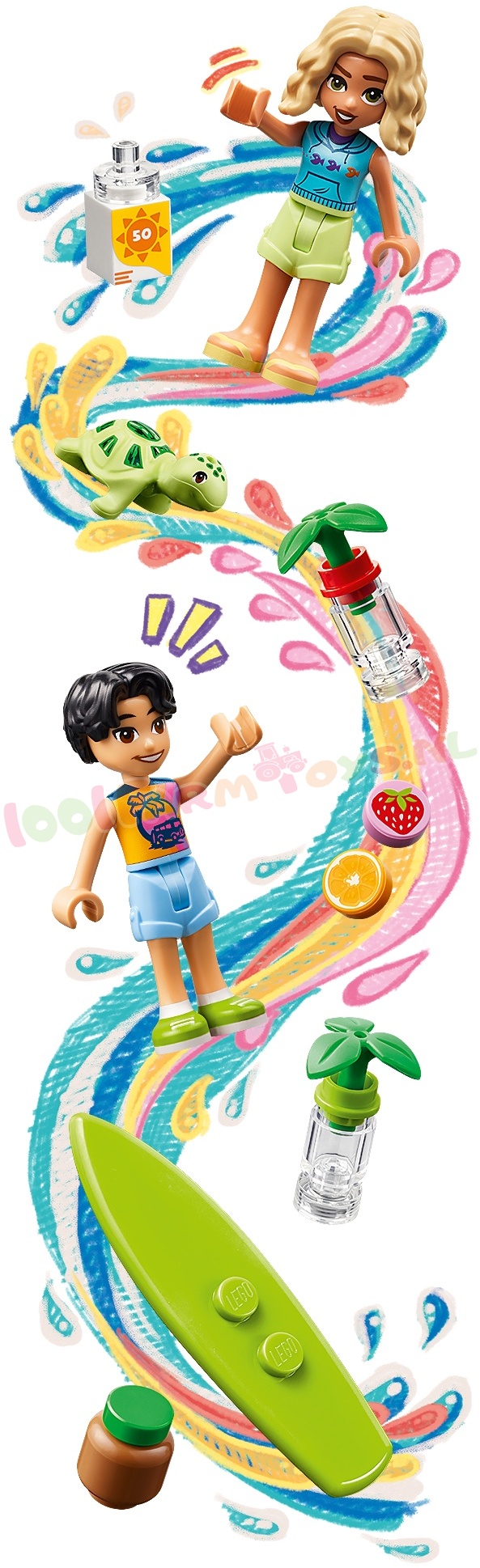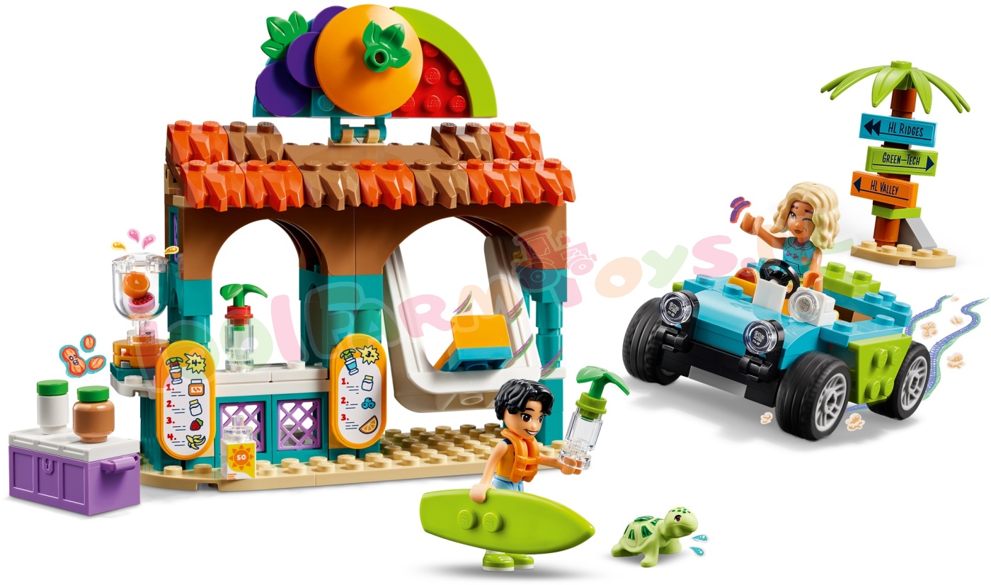 Speelset voor kinderen – meisjes en jongens vanaf 6 jaar kunnen smoothies maken op het strand met deze LEGO® Friends Strand smoothiekraam. inclusief 2 minipoppetjes en een schildpad