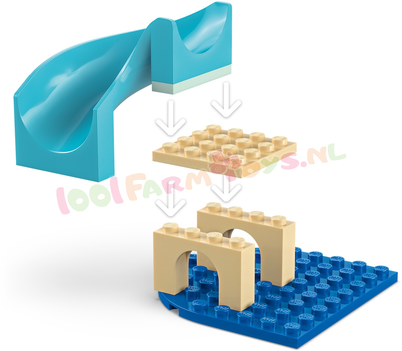 Bouwspeelgoed voor kinderen – er valt van alles te ontdekken. waaronder schelpen. planten. zeedieren. een glijbaan. een gigantische bubbel waar de personages in kunnen 'drijven' en koraal dat kan worden bewogen om een schatkist te onthullen