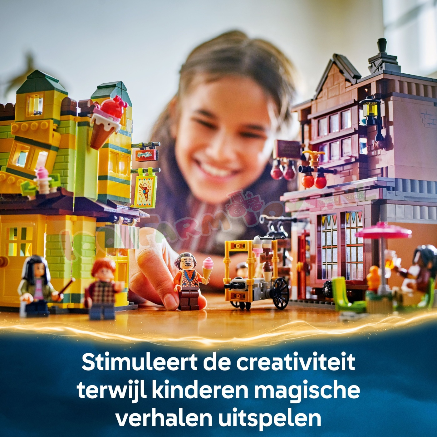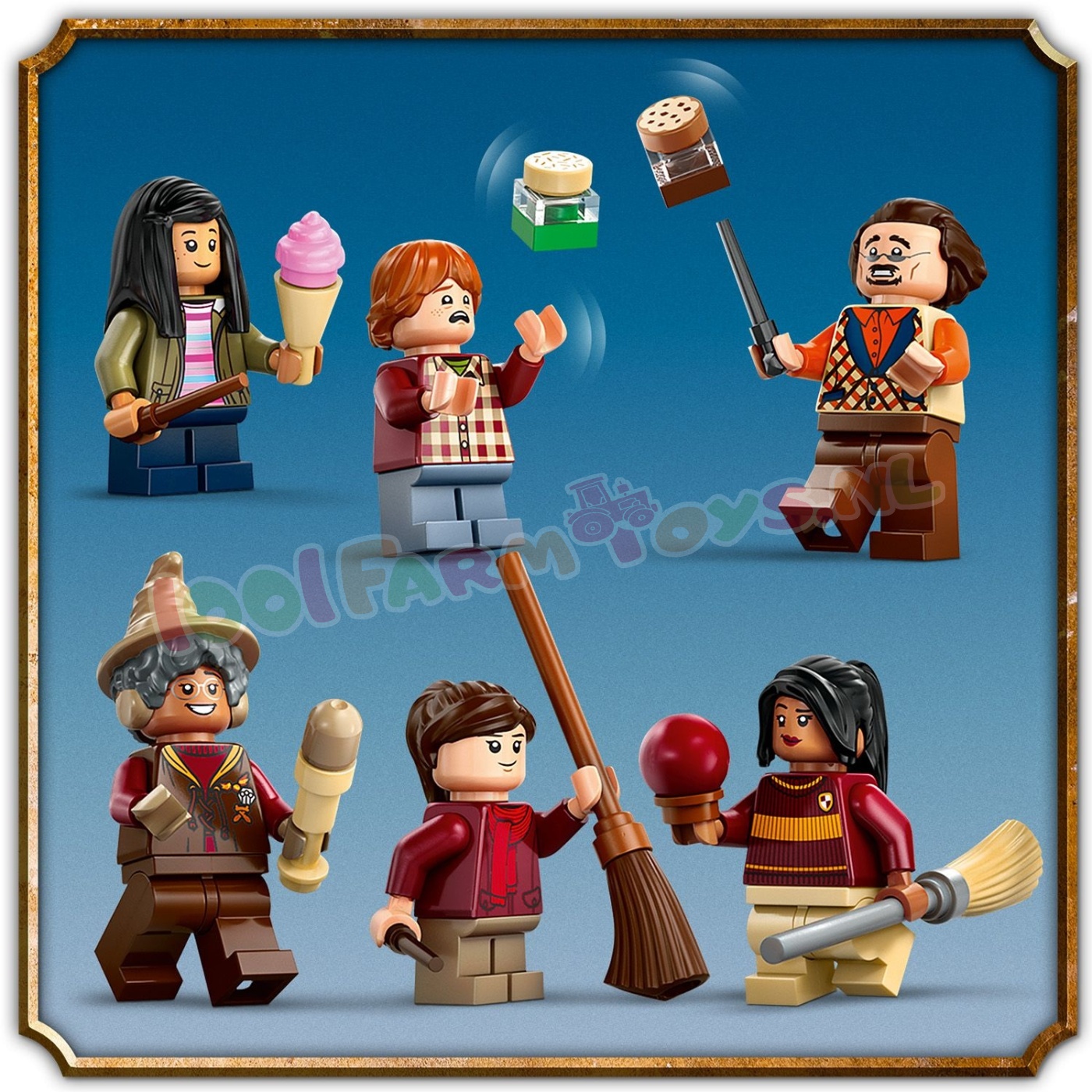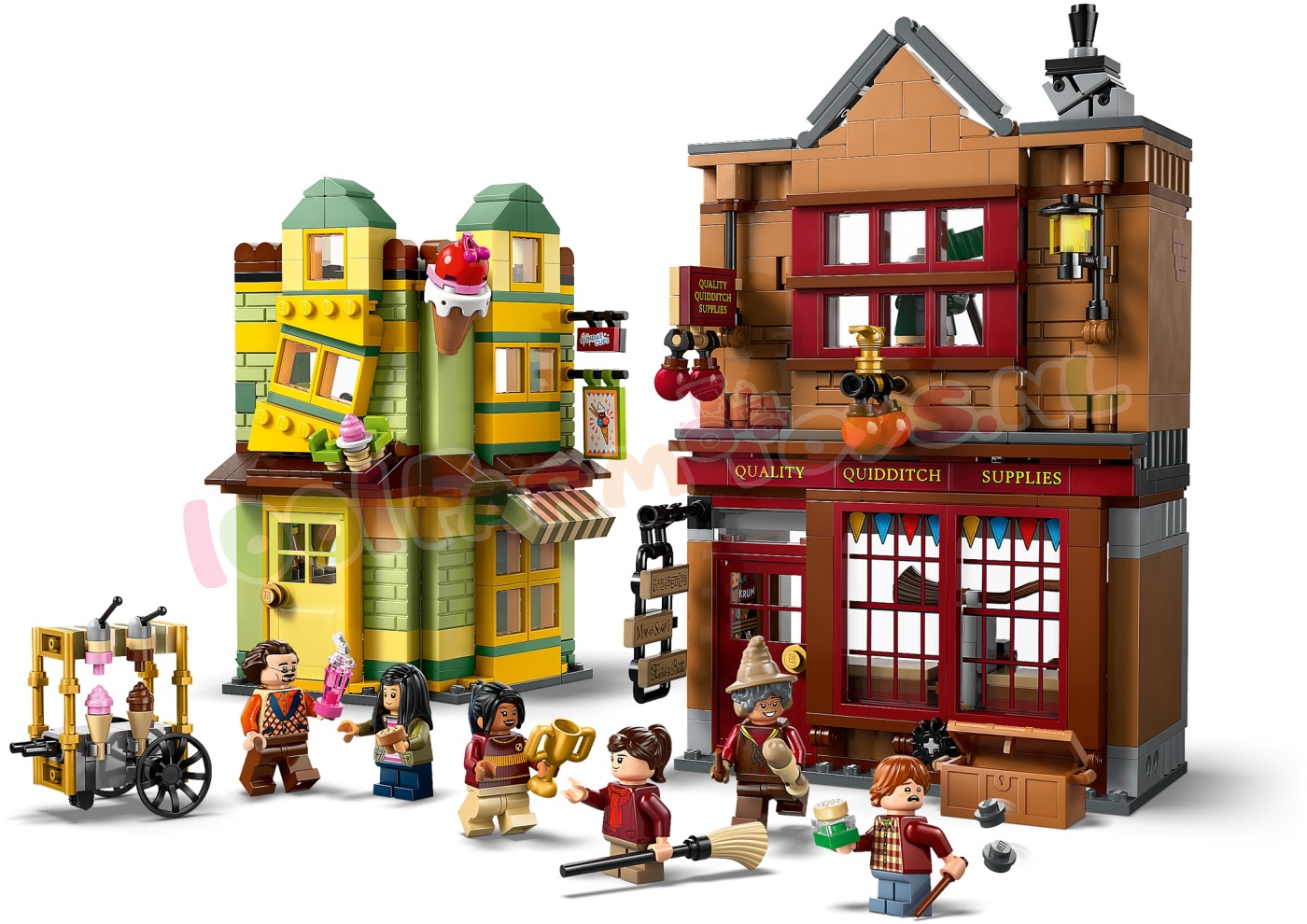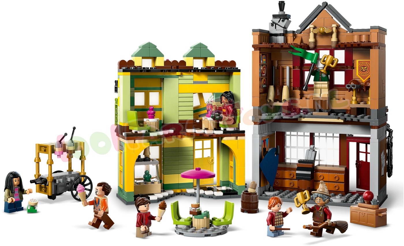 Wegisweg™ speelgoedwinkels voor kinderen – speel magische Harry Potter™ scènes na met authentiek gedetailleerde LEGO® modellen van Zwik & Zwachtels Zwerkbalpaleis en Florian Fanieljes IJssalon