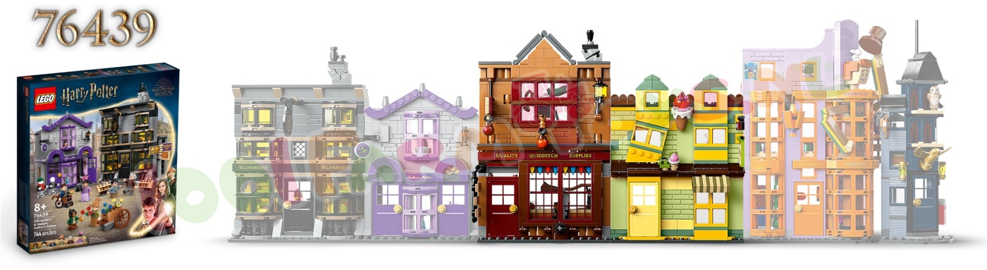 Zwik & Zwachtels Zwerkbalpaleis en Florian Fanieljes IJssalon kunnen met elkaar en met andere LEGO Harry Potter Wegisweg modellen (apart verkrijgbaar) worden verbonden om een betoverende winkelstraat te creëren.