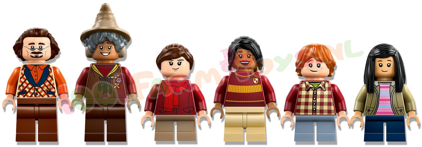 6 LEGO® Harry Potter™ minifiguren – deze fantasysetis inclusief Florian Fanielje. Katja Bell. Alicia Spinet. Ron Wemel™. Cho Chang™ en een winkelier