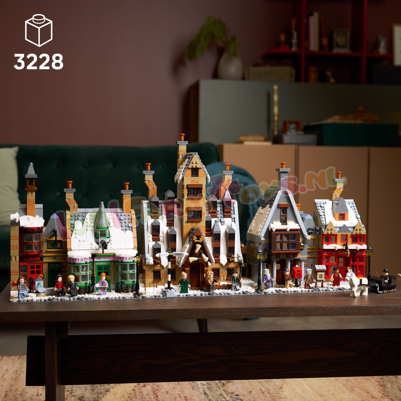 Advies Reserveer voor Afhalen.Creëer magische wintertaferelen in Zweinsveld met deze schitterende LEGO® Harry Potter™ verzamelset (76457). Dit is het ultieme Harry Potter cadeau voor volwassen fans met maar liefst 7 gebouwen met authentieke details om een hele straat mee te creëren. Bezoek beroemde winkels zoals de snoepwinkel Zacharinus' Zoetwarenhuis. het postkantoor. herberg De Drie Bezemstelen. Bernsteen & Sulferblom en Pluimplukkers Verenwinkel en de allereerste LEGO modellen van Zonko's Fopmagazijn en café De Zwijnskop. Verken de kamers van elk gebouw en ontdek allerlei authentieke details en accessoires.Breng je van stenen gebouwde creatie tot leven met 12 LEGO Harry Potter minifiguren. waaronder Harry Potter. Ron Wemel™. Hermelien Griffel™. Hildebrand Slakhoorn. Madame Rosmerta. mevrouw Flier en Desiderius Perkamentus. plus een paard en wagen.De modellen in deze set hebben dezelfde schaal als set 76417 Goudgrijp™ Tovenaarsbank – Verzameleditie (apart verkrijgbaar). Deze set bevat 3228 onderdelen. Het dorp Zweinsveld modelbouwset voor volwassenen – creëer winterse taferelen op een bekende Harry Potter™ locatie met deze gedetailleerde LEGO® Harry Potter bouw- en displayset voor verzamelaars 12 LEGO® Harry Potter™ minifiguren – inclusief Harry Potter. Ron Wemel™. Hermelien Griffel™. Katja Bell. Draco Malfidus™. professor Anderling™ en Cornelis Droebel. plus een paard en wagen 3 koppelbare modules. 7 gebouwen – bouw de allereerste LEGO® modellen van Zonko's Fopmagazijn en café De Zwijnskop. plus Zacharinus' Zoetwarenhuis. Pluimplukkers Verenwinkel. Bernsteen & Sulferblom en meer Authentieke details en accessoires – ontdek Gluiposcopen. een Geheugensteen. knalbonbons. boterbier. een portret van Ariana Perkamentus met een geheime doorgang en meer Het ultieme LEGO® Harry Potter™ cadeau voor volwassenen – verwen jezelf of geef deze magische LEGO winterdorpset cadeau aan echte Harry Potter™ fans en verzamelaars 3D-bouwinstructies – geniet van elke stap van het bouwproces met de LEGO® Builder app. waarmee je kunt inzoomen en je model in 3D kunt draaien. je voortgang kunt bijhouden en al je sets op één plek kunt opslaan LEGO® sets voor volwassenen – deze LEGO Harry Potter™ modelset maakt deel uit van een collectie hoogwaardige bouwsets voor volwassenen die van boeiende creatieve projecten houden Afmetingen – de volledige straat met gebouwen in deze 3228-delige LEGO® Harry Potter™ set is ca. 33 cm hoog. 76 cm breed en 14 cm diep