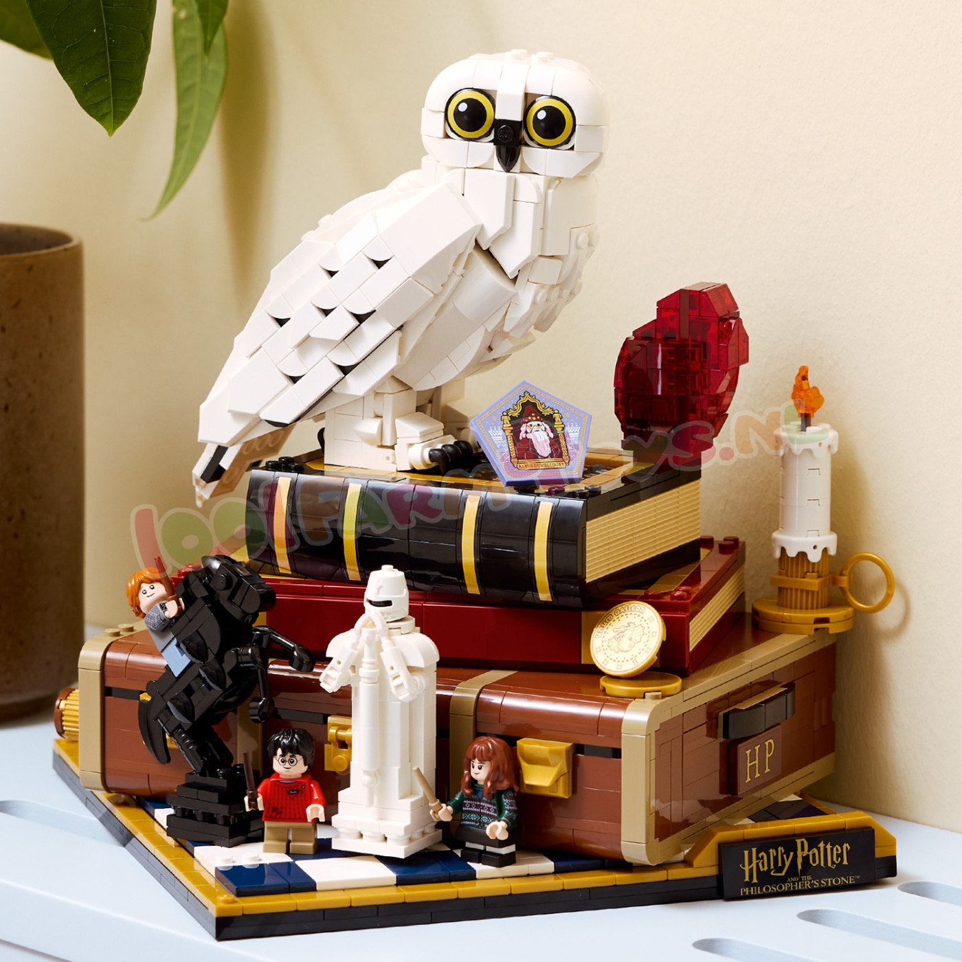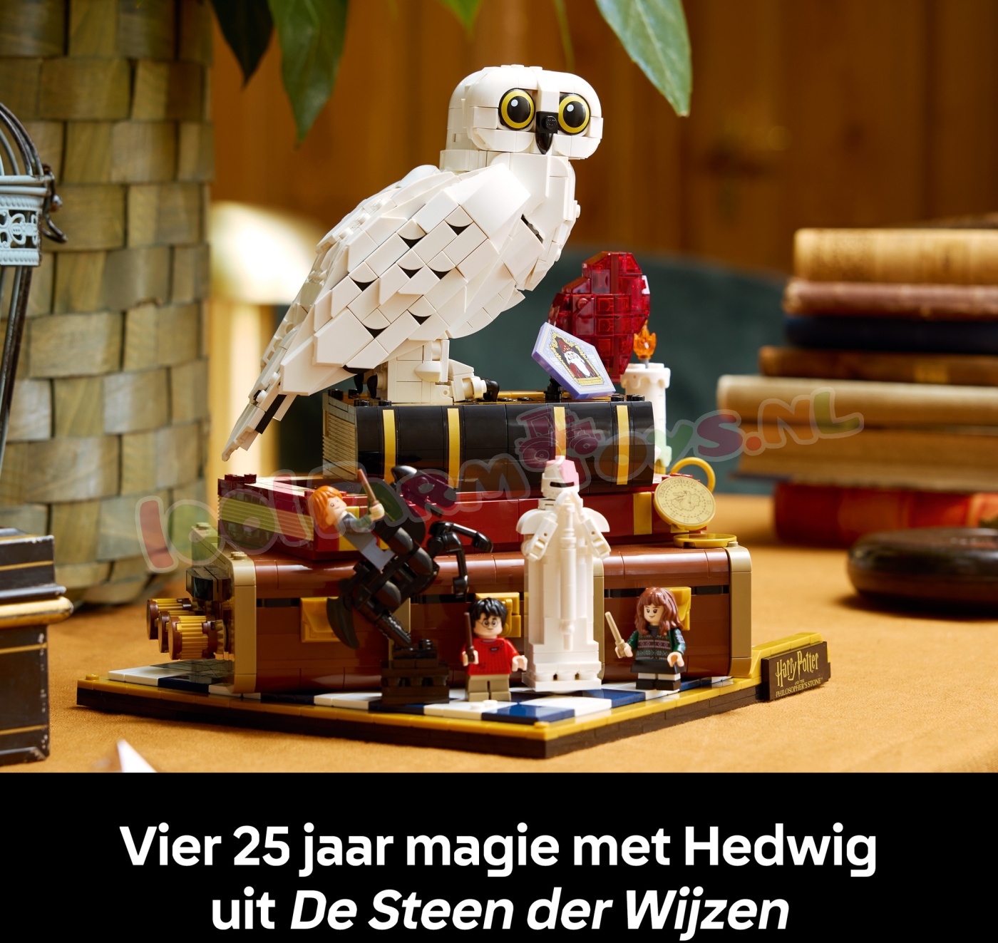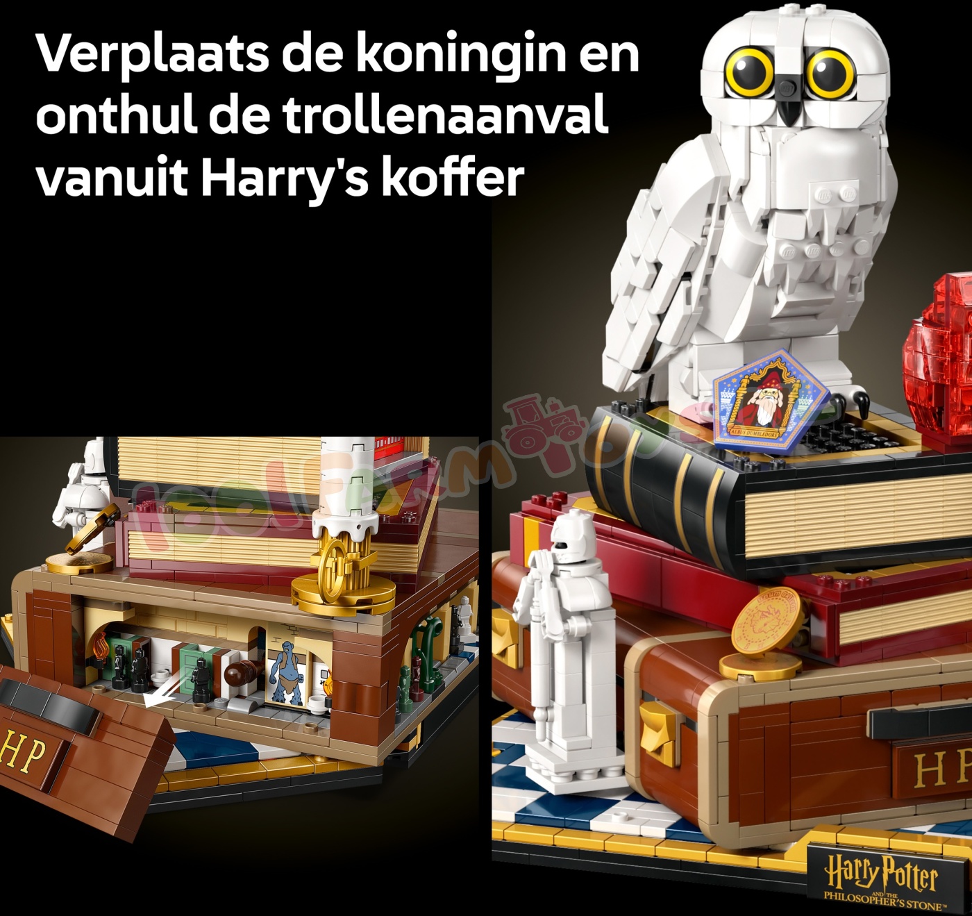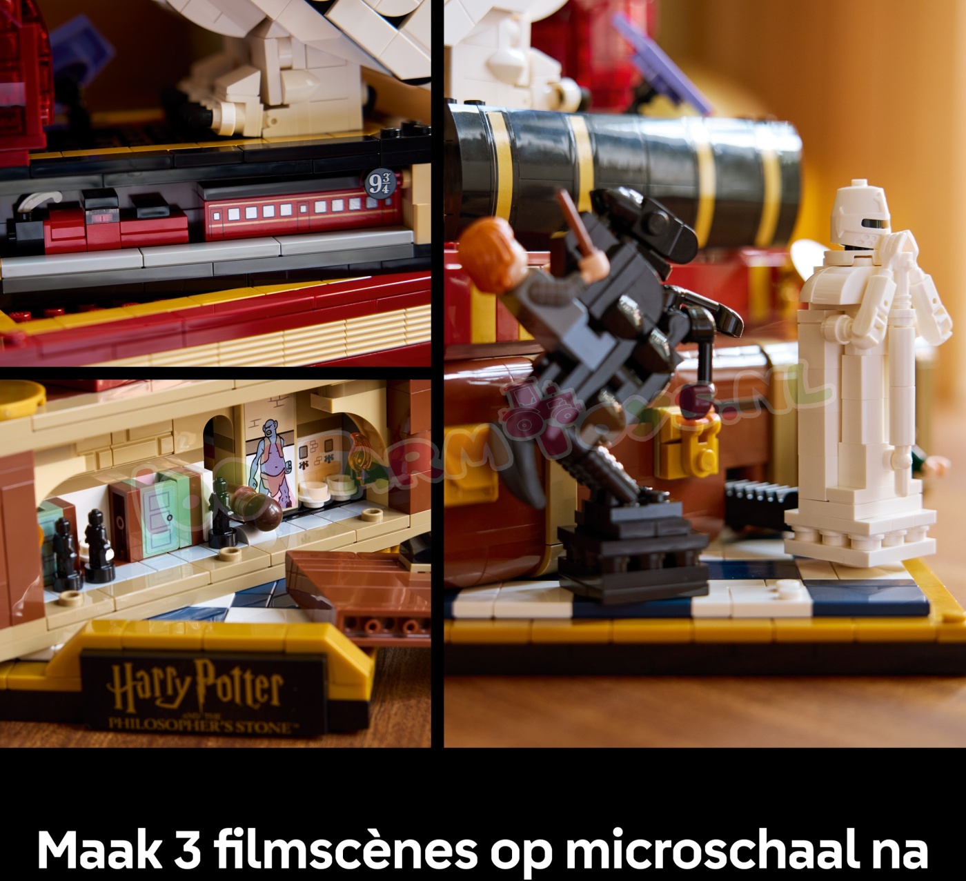 Creëer een tastbare herinnering aan de film Harry Potter en de Steen der Wijzen™ met de LEGO® Harry Potter™ Steen der Wijzen – Verzameleditie (76466) ter ere van het 25-jarig jubileum. Deze verzamelset is een creatief cadeau voor volwassen Harry Potter fans en bevat leuke functies. iconische personages en voorwerpen. plus microversies van klassieke scènes om magische herinneringen op te halen. Maak de eerste LEGO figuur van Hedwig™ de sneeuwuil met gesloten vleugels en zet haar naast de Steen der Wijzen neer op Harry Potters koffer. Voeg de 3 LEGO Harry Potter minifiguren toe van Harry Potter. Hermelien Griffel™ en Ron Wemel™ en details zoals een Chocokikkerplaatje en een Toverschaakbord. Draai aan de 3 knoppen om Hedwigs hoofd te draaien. de koningin op het Toverschaakbord te verplaatsen en de zijkant van Harry Potters koffer op te blazen om de scène met de aanval van de Bergtrol op het toilet te onthullen. De andere scènes op microschaal tonen de Zweinstein™ Express en de 5 tests waar Harry mee te maken krijgt om de Steen der Wijzen te bereiken. De set bevat 1571 onderdelen. LEGO® HARRY POTTER™ VERZAMELSET – vier het 25-jarig jubileum van Harry Potter en de Steen der Wijzen™ met deze Verzameleditie (76466) met beroemde scènes en personages HEDWIG™ EN 3 MINIFIGUREN – bouw een figuur van de sneeuwuil Hedwig als middelpunt van deze LEGO® Harry Potter™ set en voeg minifiguren van Harry Potter. Hermelien Griffel™ en Ron Wemel™ toe LEUKE FUNCTIES – draai aan de 3 knoppen om de zijkant van Harry Potters koffer weg te blazen en een filmscène op microschaal te onthullen. om Hedwigs hoofd te draaien of om de koningin op het Toverschaakbord te verplaatsen ONVERGETELIJKE SCENES EN MEER – bouw scènes uit Harry Potter en de Steen der Wijzen™ op microschaal na en ontdek een Chocokikkerplaatje van Albus Perkamentus™. de Steen der Wijzen. 2 galjoenen en meer CADEAU VOOR VOLWASSENEN – trakteer jezelf of geef dit speciale LEGO® Harry Potter™ displaymodel ter ere van het 25-jarig jubileum cadeau aan mannen. vrouwen. Harry Potter fans en verzamelaars 3D-BOUWINSTRUCTIES– bereid je voor om te bouwen als nooit tevoren met de LEGO® Builder app. waarin je sets kunt opslaan. je voortgang kunt bijhouden. kunt inzoomen en je model kunt draaien met 3D-instructies LEGO® SETS VOOR VOLWASSENEN – deze LEGO Harry Potter™ modelset maakt deel uit van een collectie hoogwaardige bouwsets voor volwassenen die van ontspannende. praktische en creatieve activiteiten houden AFMETINGEN – deze 1571-delige LEGO® Harry Potter™ set is ca. 24 cm hoog. 29 cm breed en 21 cm diep en is een fraai displaymodel met een uil voor Harry Potter fans.