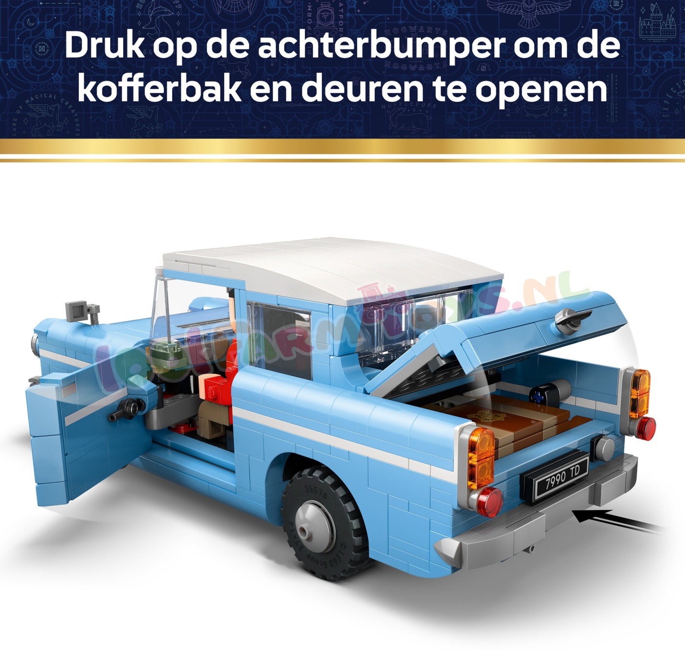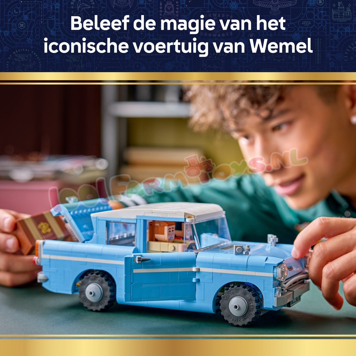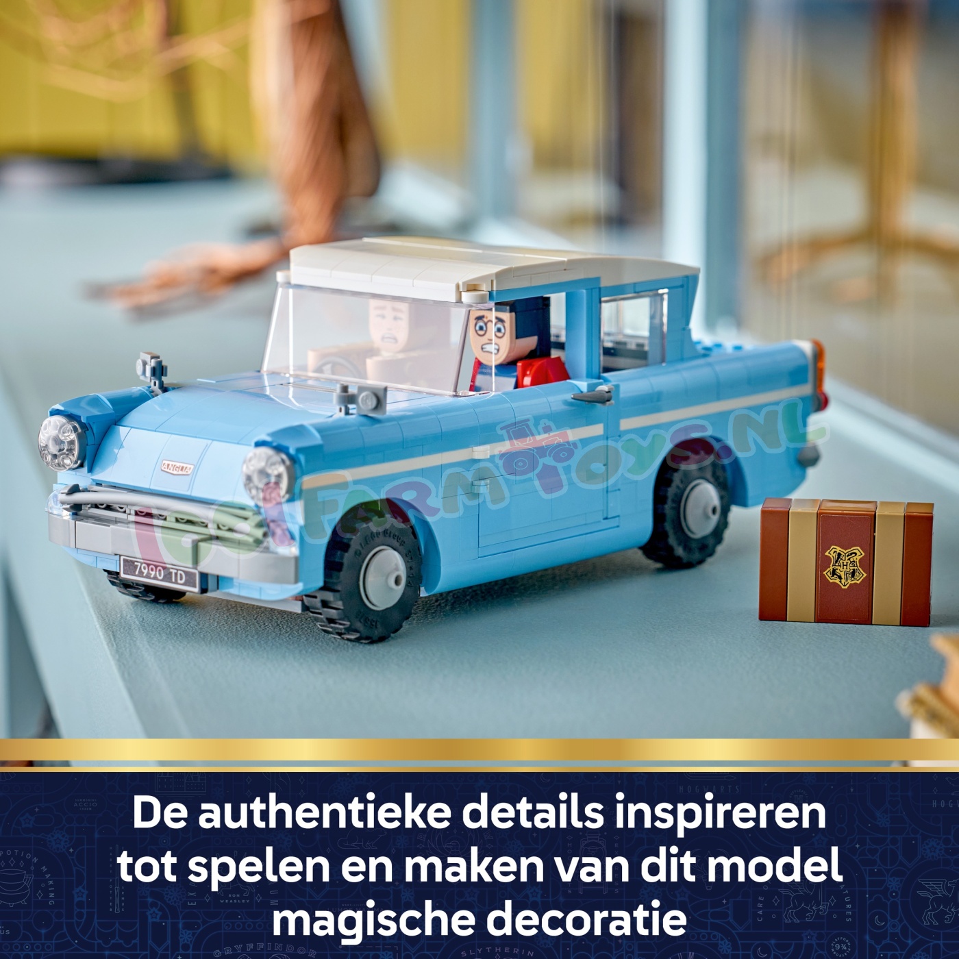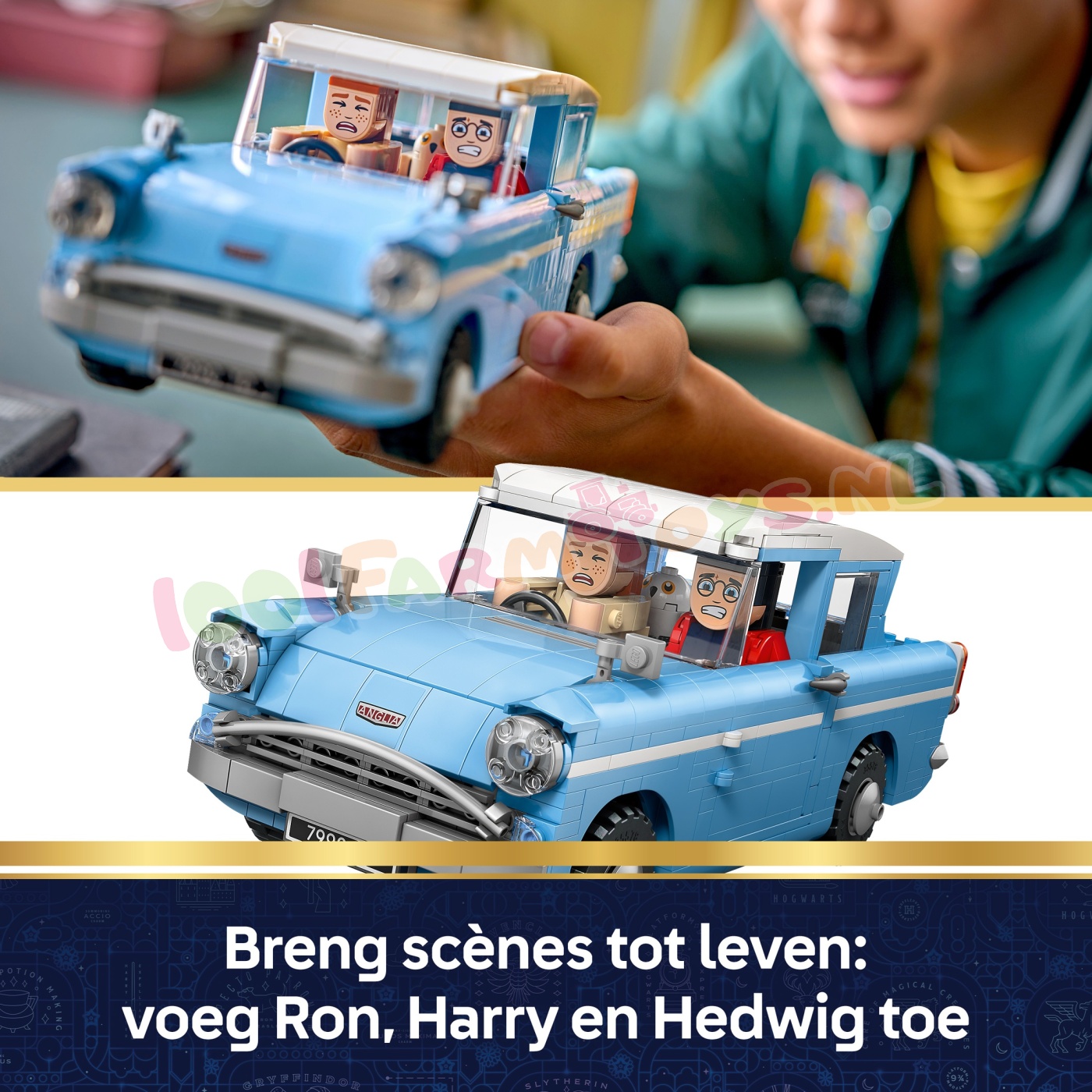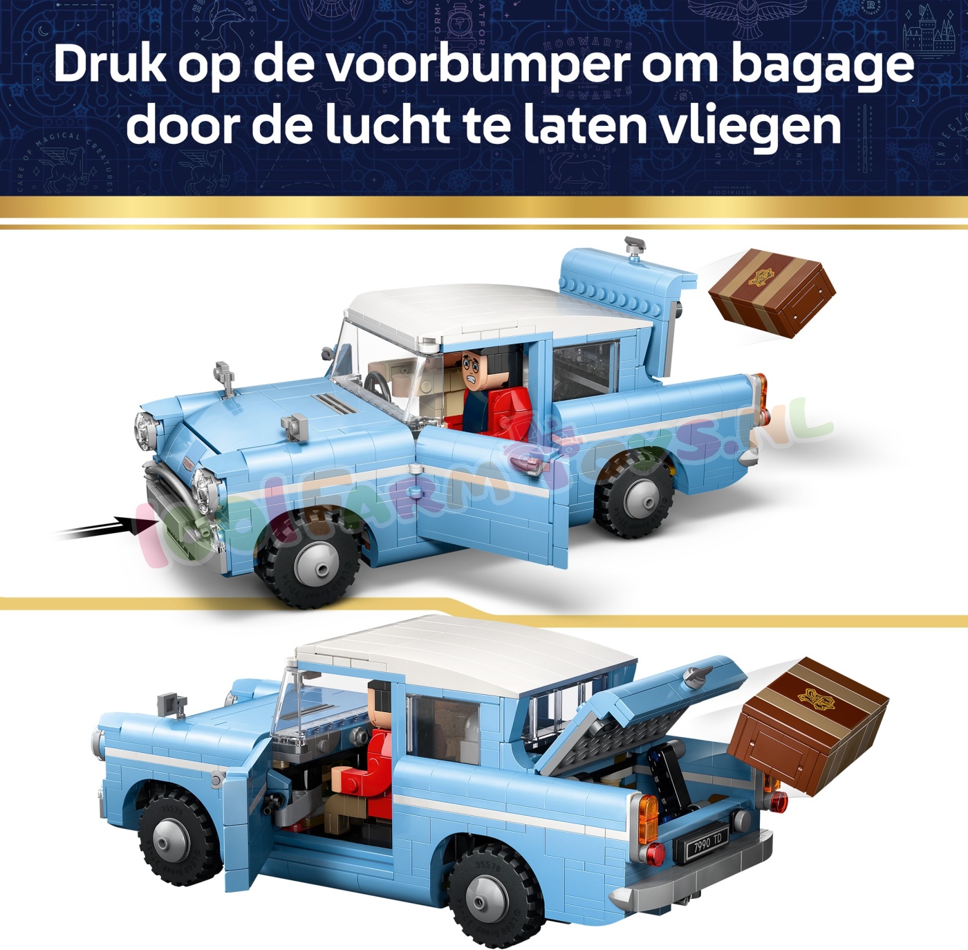 Geef jonge tovenaars. heksen en dreuzels de magie van de betoverde vliegende Ford Anglia™ van de familie Wemel in handen met deze autobouwset (76470) om mee te spelen of neer te zetten. Het meest gedetailleerde LEGO® model van het bekende voertuigtot nu toe is een geweldig Harry Potter™ cadeau voor jongens. meisjes en fans vanaf 14 jaar. Plaats de van stenen gebouwde figuren van Ron Wemel™ en Harry Potter in de auto met Harry's huisdier Hedwig™ om scènes uit Harry Potter en de Geheime Kamer™ to t leven te brengen. Activeer magische functies om de kofferbak en deuren te openen en de bagage van de helden uit de kofferbak te laten vliegen. net als in de film. Met de LEGO Builder app kunnen kinderen vol zelfvertrouwen bouwen. op modellen inzoomen. ze in 3D draaien en hun voortgang bijhouden met de eenvoudig te volgen digitale instructies. De set bevat 868 onderdelen. AUTOBOUWSET VOOR KINDEREN – bouw en speel met het meest gedetailleerde LEGO® Harry Potter™ model tot nu toe van de Betoverde vliegende Ford Anglia™ (76470) voordat je hem op een mooi plekje neerzet MAGISCHE FUNCTIES – duw op de achterbumper om de kofferbak en deuren te openen en duw op de bumper aan de voorkant om bagage uit de kofferbak te werpen. net zoals in Harry Potter en de Geheime Kamer™ INSPIREER DE CREATIVITEIT VAN KINDEREN – deze LEGO® autoset biedt Harry Potter™ fans een boeiendebouwervaring en heeft authentieke details die fantasierijk speelplezier stimuleren 3 LEGO® HARRY POTTER™ PERSONAGES – plaats de van stenen gebouwde figuren van Ron Wemel™ en Harry Potter in de auto met Harry's huisdier Hedwig™ om bekende scènes opnieuw te beleven CADEAU VOOR KINDEREN – deze bouwset is een leuk LEGO® cadeau voor jongens. meisjes en fans vanaf 14 jaar om hun liefde voor Harry Potter™ avonturen op te bouwen EEN HELPENDE HAND – ontdek digitale bouwinstructies in de LEGO® Builderapp waarmee kinderen kunnen inzoomen en hun model kunnen draaien in 3D. hun voortgang kunnen bijhouden en sets kunnen opslaan terwijl ze nieuwe vaardigheden ontwikkelen ONDERDEEL VAN EEN UITGEBREIDE COLLECTIE – met LEGO® Harry Potter™ sets (apartverkrijgbaar) kunnen fans en verzamelaars beroemde scènes naspelen. hun eigen verhalen verzinnen of de gedetailleerde modellen neerzetten en bewonderen AFMETINGEN – het speelgoedvoertuig in deze 868-delige set is ca. 9 cm hoog. 25 cm lang en 10 cm breed.