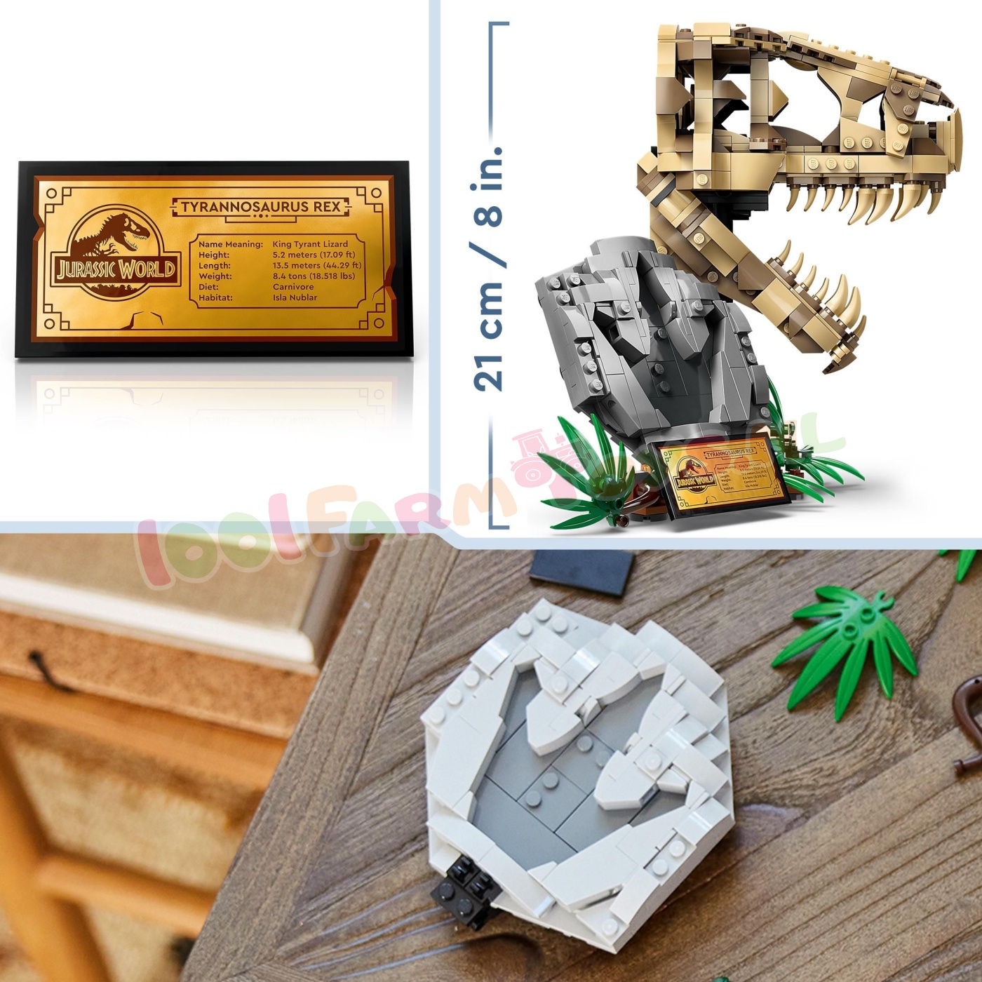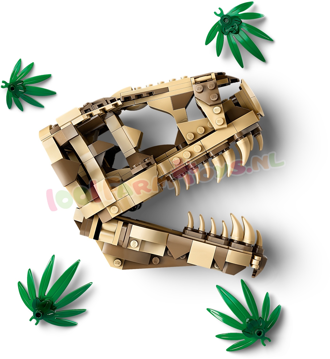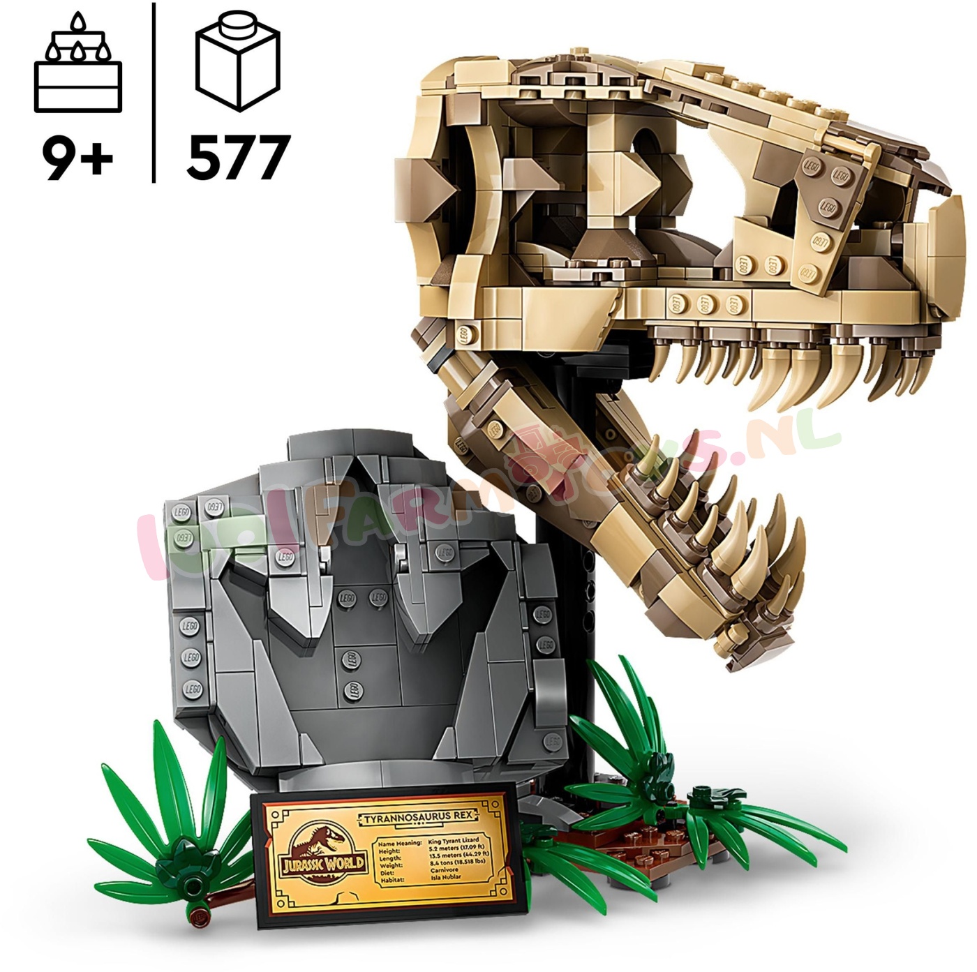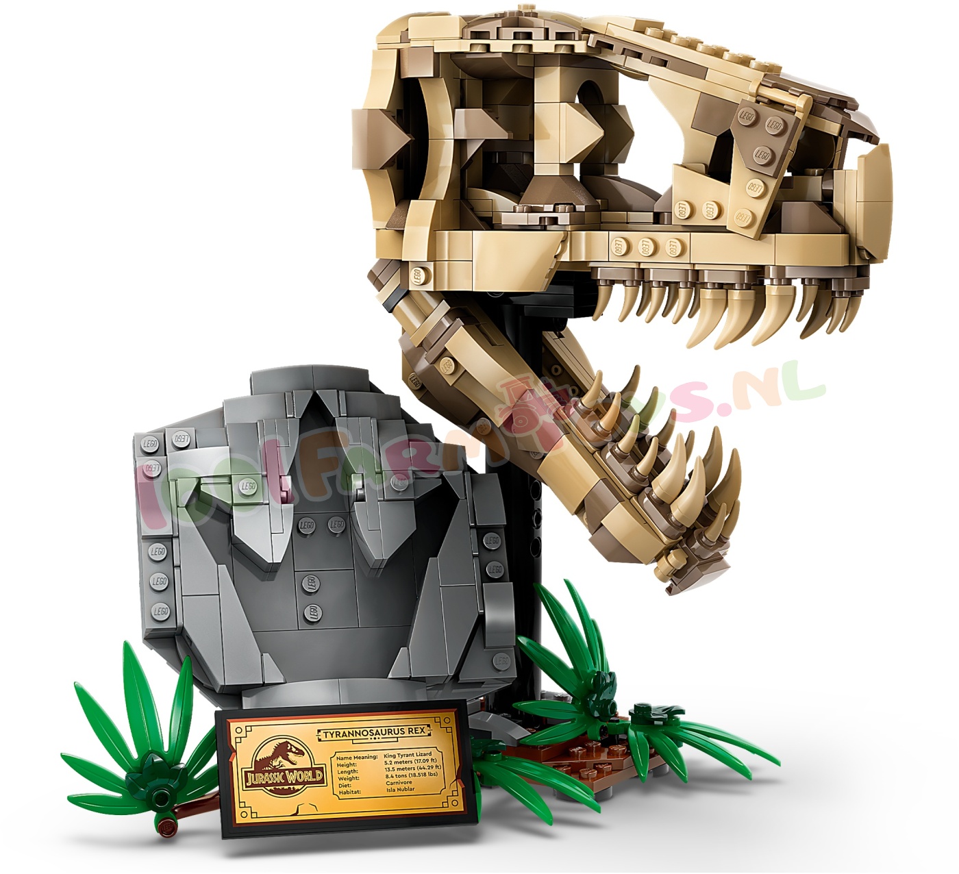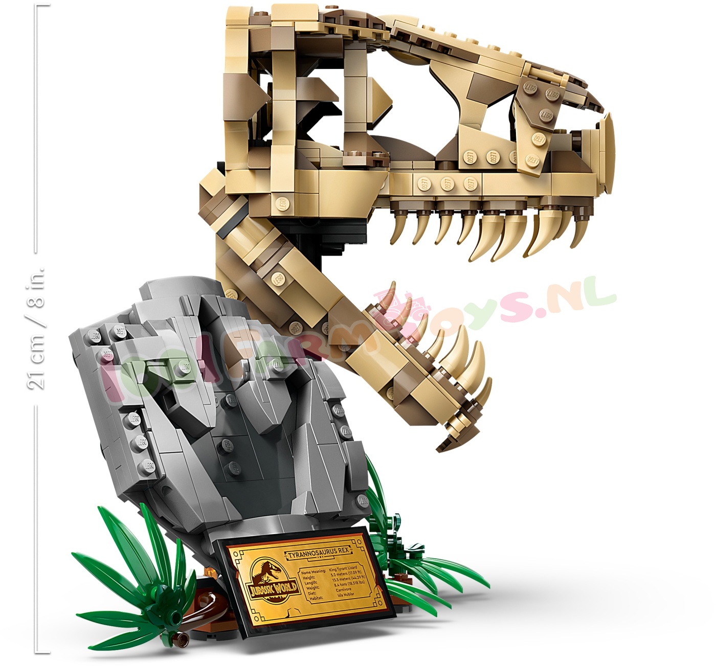 Inspireer jongens en meisjes of beginnende paleontologen vanaf 9 jaar met dit LEGO® Jurassic World Dinosaurusfossielen: T. rex schedel (76964) speelgoed voor kinderen. Dit is de eerste Jurassic World set die is gemaakt om neer te zetten: een schedel met kaak die open en dicht kan. een standaard met informatiebordje. een verborgen stuk 'amber' aan de achterkant van het model en een 'fossiele' voetafdruk.