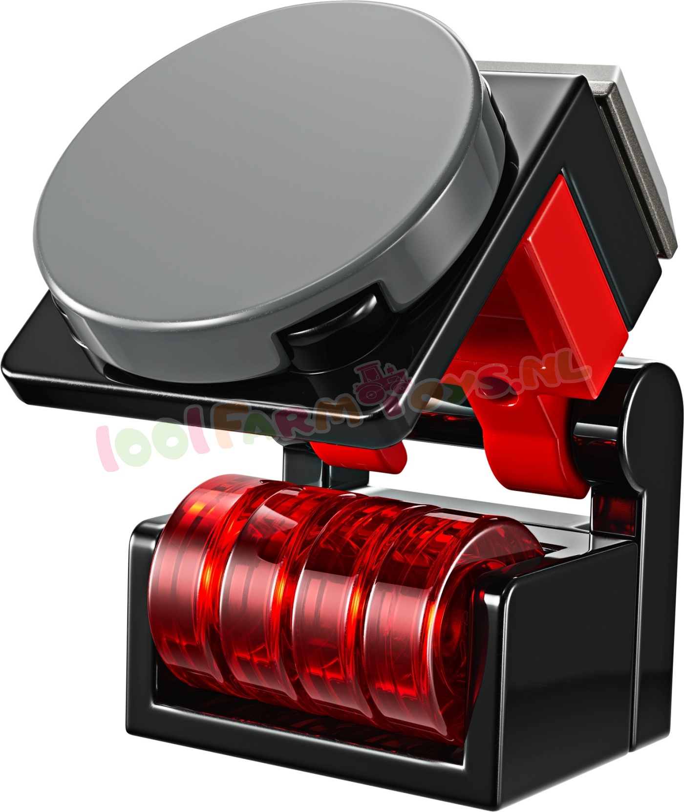 3 noppenschieters – kinderen plaatsen de minifiguur in de cockpit die open kan en sturen hem vervolgens de strijd in met 1 schieter op zijn schouder. 2 op zijn armen en een doos op zijn rug voor extra munitie