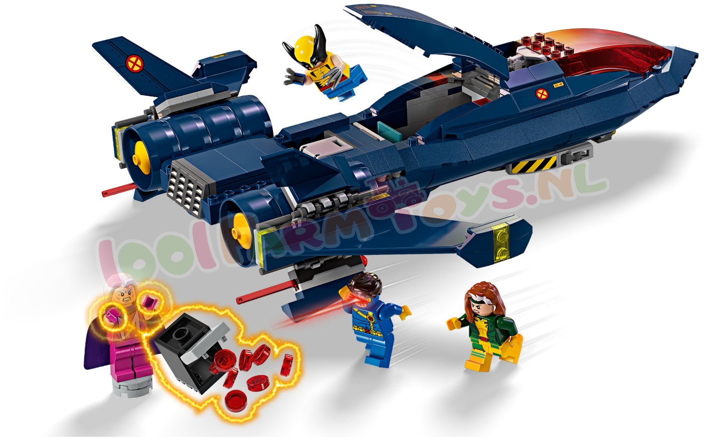 4 minifiguren – het bouwbare speelgoedvliegtuig biedt ruimte aan de bekende X-Men personages Wolverine. Cyclops. Rogue en Magneto