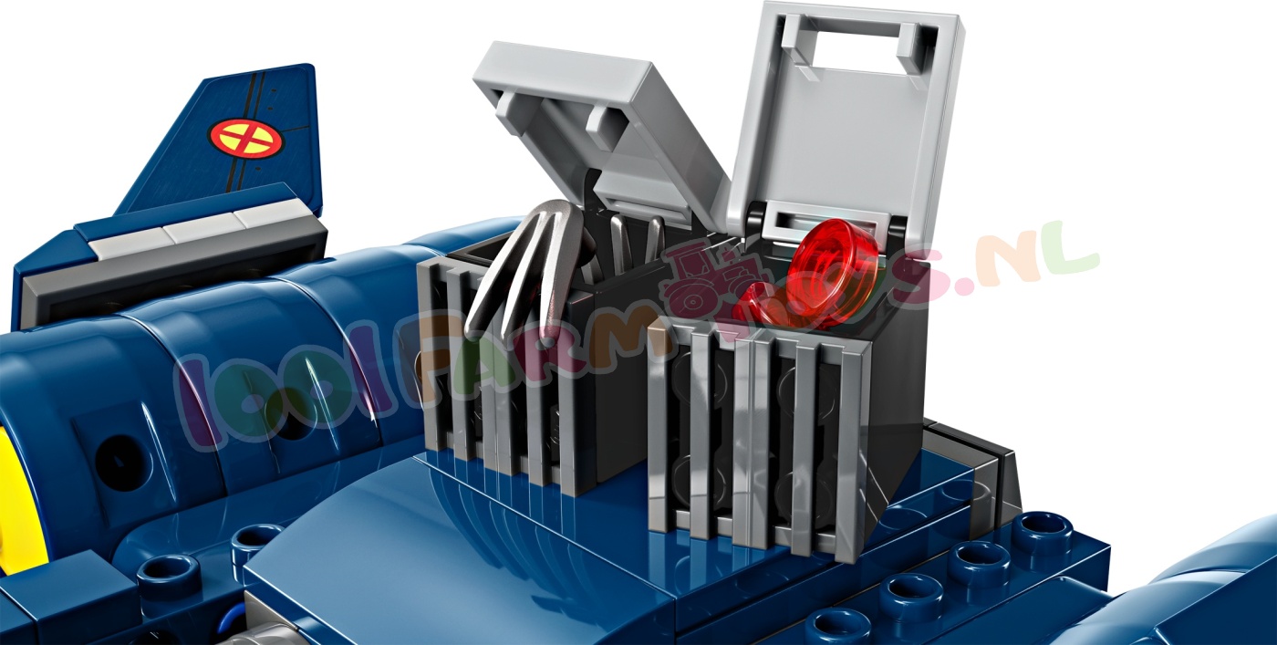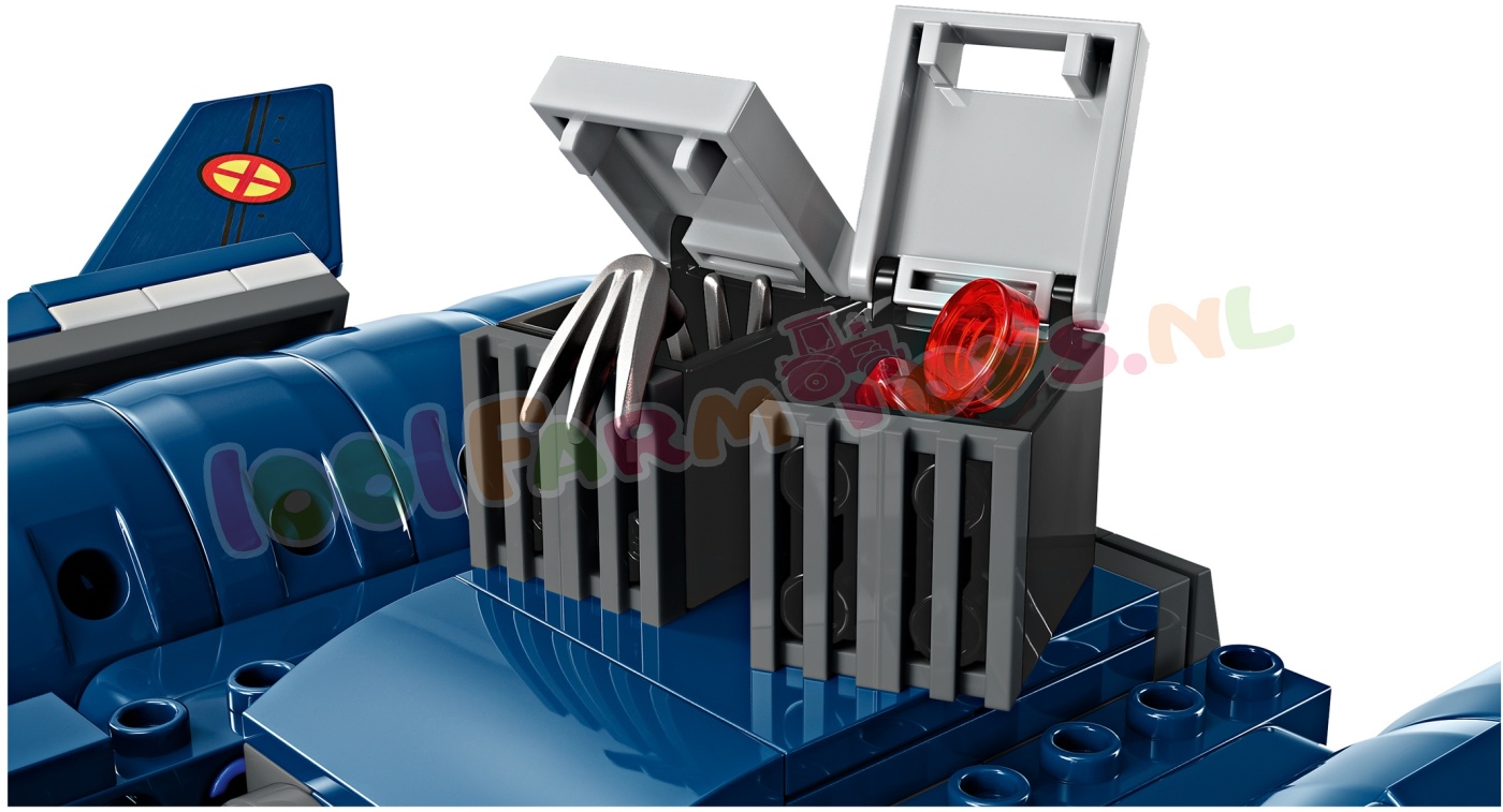 Deze spectaculaire bouwset van een modelvliegtuig is gebaseerd op de X-Jet uit X-Men '97. en zal eindeloze avonturen in de lucht inspireren met de minifiguren van Cyclops. Rogue. Magneto en Wolverine. Het actiespeelgoed beschikt over een dubbele cockpit met ruimte voor 4 minifiguren. 2 noppenschieters aan beide kanten en 2 schieters met veermechanisme onder de vleugels. Er zijn ook 2 afneembare opbergdozen waarin kinderen reservenoppen en Wolverine's lange klauwen kunnen opbergen als deze niet aan de minifiguur zijn bevestigd. Voor nog meer plezier kunnen bouwers inzoomen. modellen draaien in 3D en hun voortgang bijhouden met behulp van de leuke. intuïtieve LEGO Builder app.