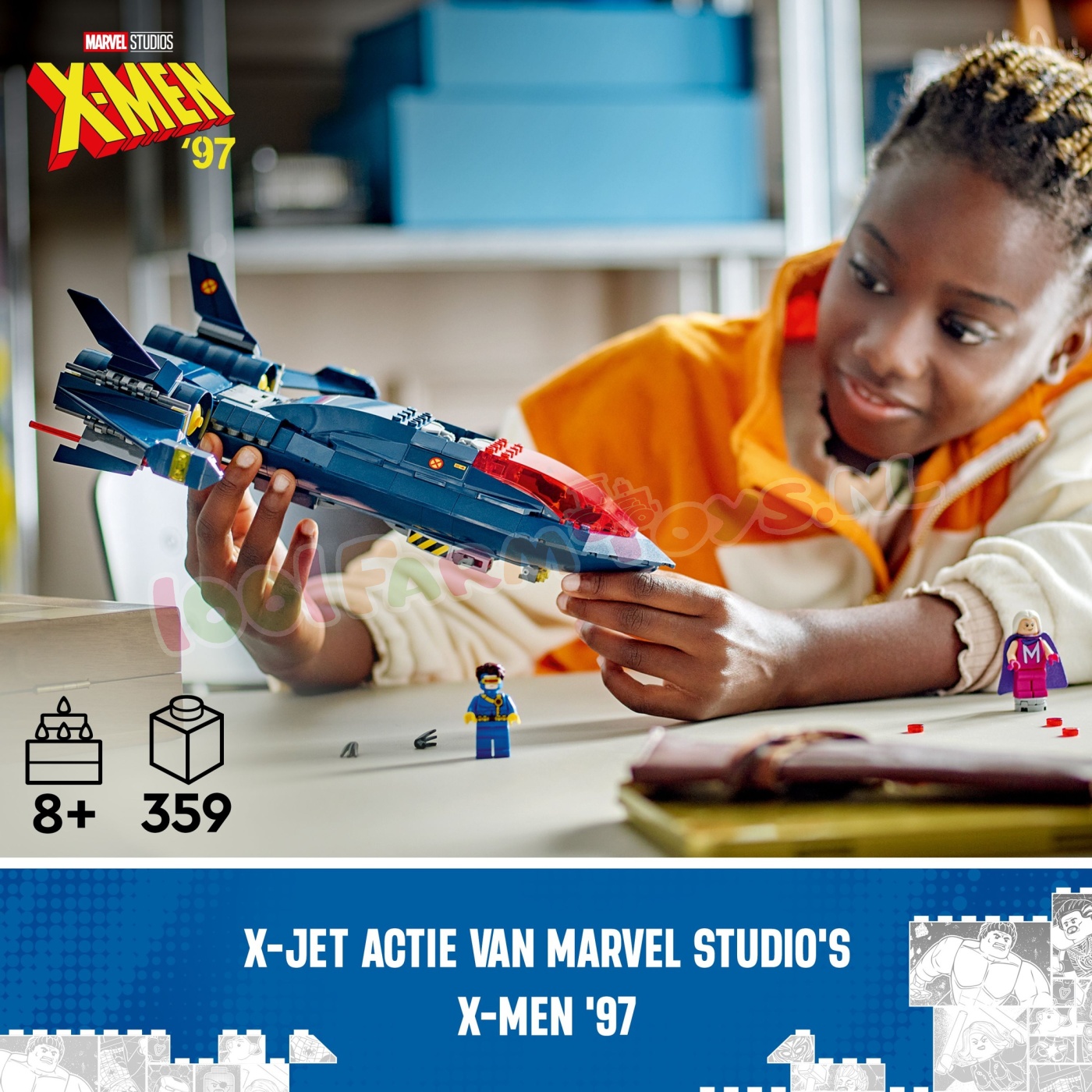 X-Men X-Jet – neem kinderen mee aan boord van de X-Jet uit de tv-serie X-Men '97 van Marvel Studios met deze X-Men bouwset van een modelvliegtuig om mee te spelen en neer te zetten