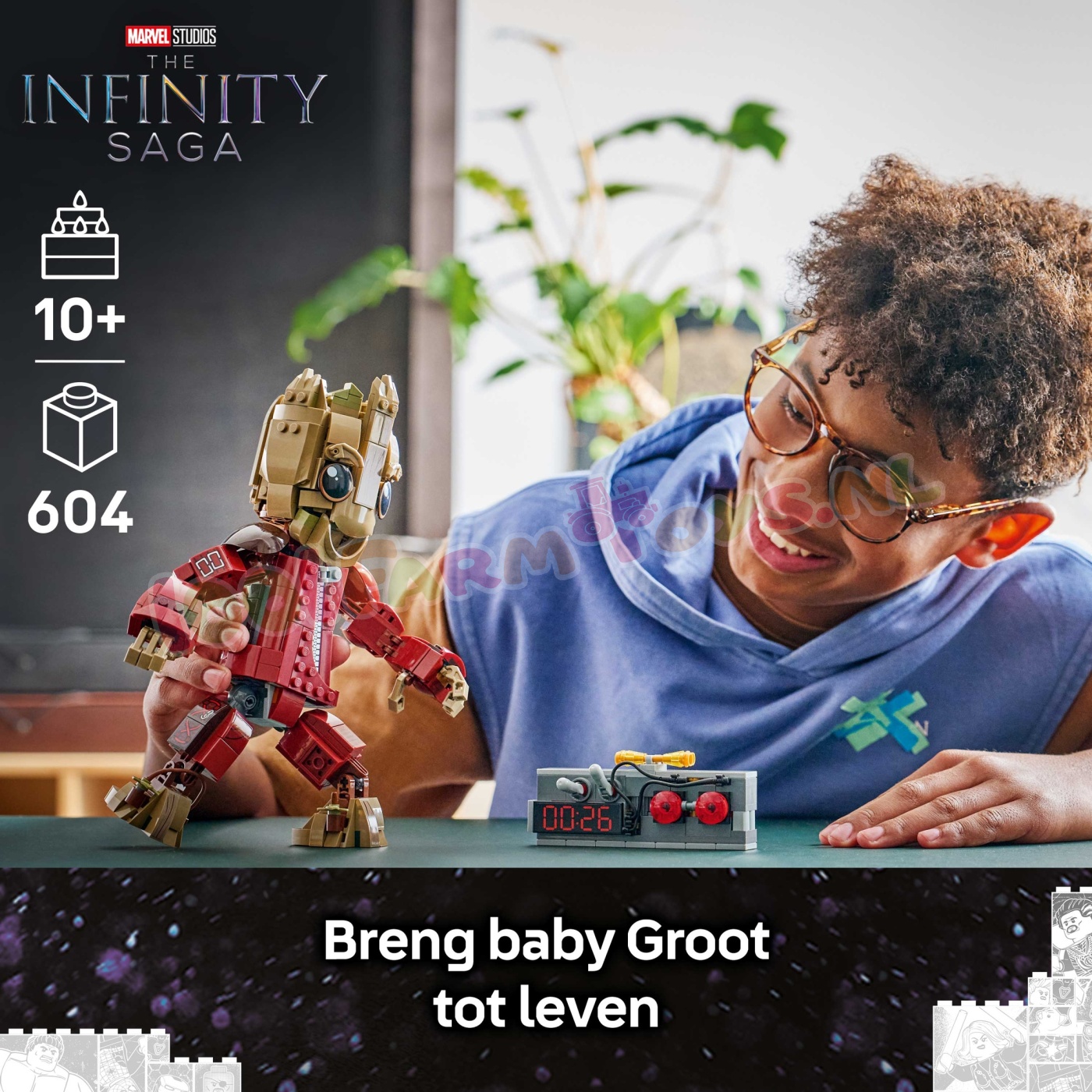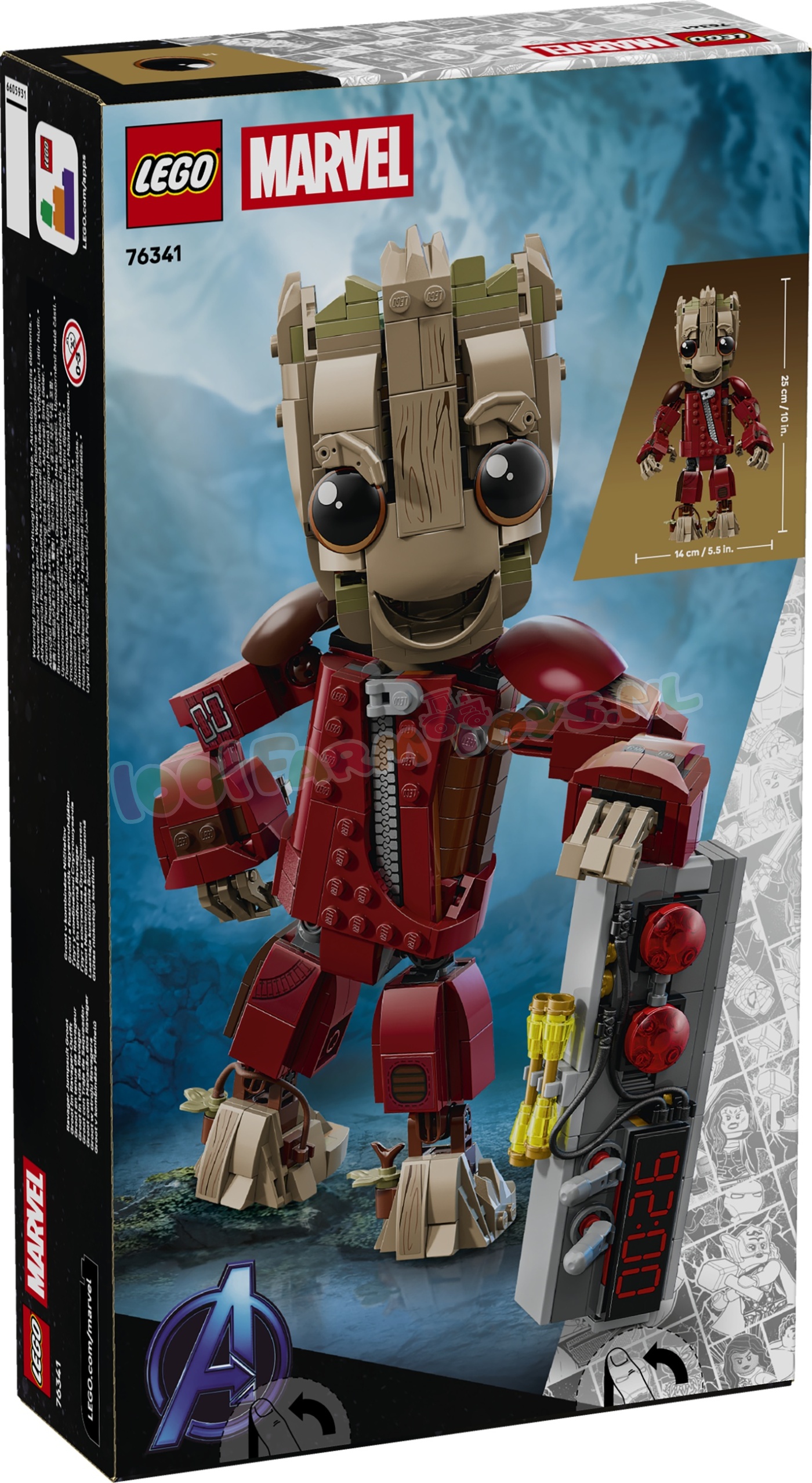 Breng de geweldige Baby Groot tot leven met de verstelbare Groot in Ravager jumpsuit (76341) figuur voor een dynamisch display en actiespel. Jongens. meisjes en kinderen vanaf 10 jaar kunnen het LEGO® | Marvel bouwspeelgoed gebruiken om hun favoriete Marvel filmscènes opnieuw te beleven en hun eigen avonturen te bedenken.In deze LEGO | Marvel verzamelset draagt Groot het Ravager pak uit de Marvel Studios film Guardians of the Galaxy Vol. 2. De bouwbare figuur wordt geleverd met een ontsteker met 2 knoppen en 2 beweegbare hendels die verwijzen naar een bekende scène uit de film. Het personage kan in allerlei houdingen worden neergezet met volledig verstelbare schouders. armen. vingers. heupen. voeten en nek. plus aanpasbare wenkbrauwen voor verschillende gezichtsuitdrukkingen. Deze LEGO | Marvel bouwset is een geweldig verjaardagscadeau. En met de LEGO Builder app kunnen kinderen vol vertrouwen bouwen: inzoomen. draaien in 3D en hun voortgang bijhouden met de eenvoudig te volgen digitale instructies. De bouwset bevat 604 onderdelen. BOUW- EN SPEELSET – breng de schattige superheld Groot tot leven met de in allerlei standen verstelbare LEGO® | Marvel Groot in Ravager jumpsuit (76341) figuur voor kinderen vanaf 10 jaar BABY GROOT MARVEL VERZAMELFIGUUR – deze figuur met authentieke details draagt het Ravager pak dat door Rocket werd gemaakt in de Marvel Studios film Guardians of the Galaxy Vol. 2 SPELEN EN NEERZETTEN – geef kinderen dynamisch plezier in handen met deze figuur met volledig verstelbare schouders. armen. vingers. benen. voeten en nek. plus aanpasbare wenkbrauwen voor verschillende gezichtsuitdrukkingen MARVEL STUDIOS GUARDIANS OF THE GALAXY – de LEGO® | Marvel figuur heeft een ontsteker met 2 knoppen en 2 hendels. zodat kinderen filmscènes opnieuw kunnen beleven en hun eigen fantasierijke avonturen kunnen bedenken LEUKE CADEAUTIP – dit veelzijdige LEGO® | Marvel Baby Groot bouwspeelgoed is een geweldig cadeau voor een verjaardag. de feestdagen of een andere gelegenheid voor jongens. meisjes en kinderen vanaf 10 jaar EEN LEUKE BOUWERVARING – de LEGO® Builder app begeleidt kinderen op een intuïtief bouwavontuur. Ze kunnen sets opslaan. hun voortgang bijhouden. op modellen inzoomen en ze draaien met 3D-instructies tijdens het bouwen BOUWSETS VOOR MARVEL FANS – neem kinderen mee op fantasierijke offline avonturen met bekende personages en scènes boordevol actie uit de Marvel films AFMETINGEN – de LEGO® | Marvel Groot in Ravager jumpsuit figuur in deze 604-delige bouwset is ca. 25 cm hoog.
