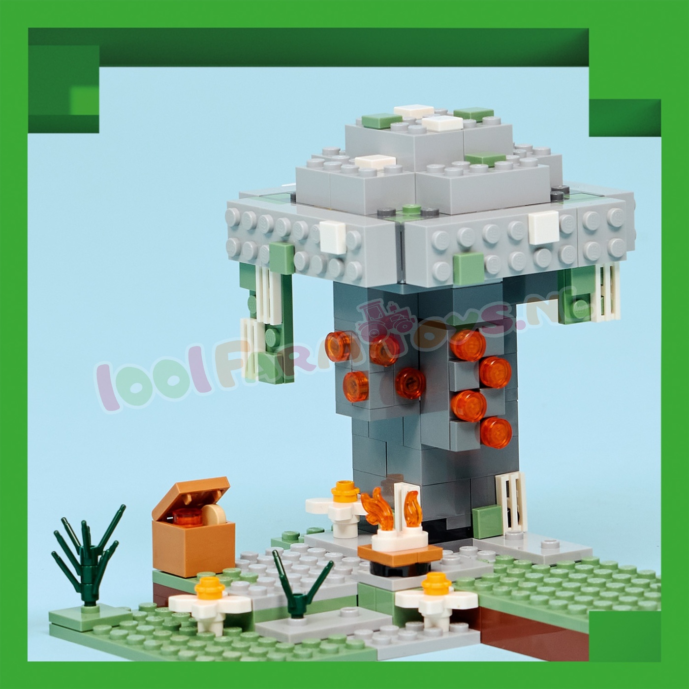 AFMETINGEN – de 243-delige LEGO® Minecraft® De bleke tuin bouwset is ca. 12 cm hoog. 16 cm breed en 15 cm diep
