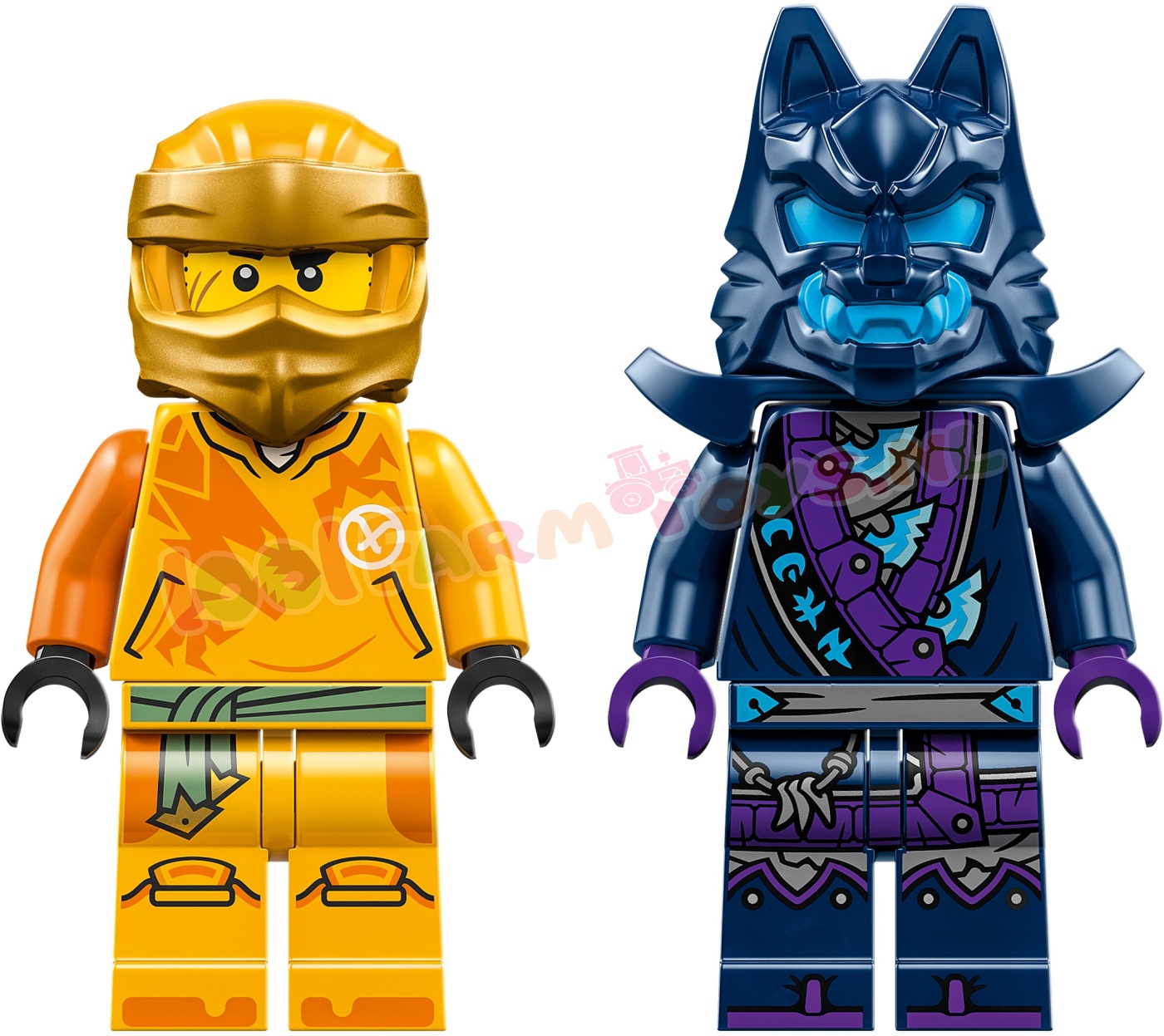 2 LEGO® NINJAGO® minifiguren – de ninjaspeelset bevat een minifiguur van Arin. gewapend met een katana. zodat kinderen actiescènes kunnen naspelen tegen de Wolvenmasker strijder met zijn zwaard
