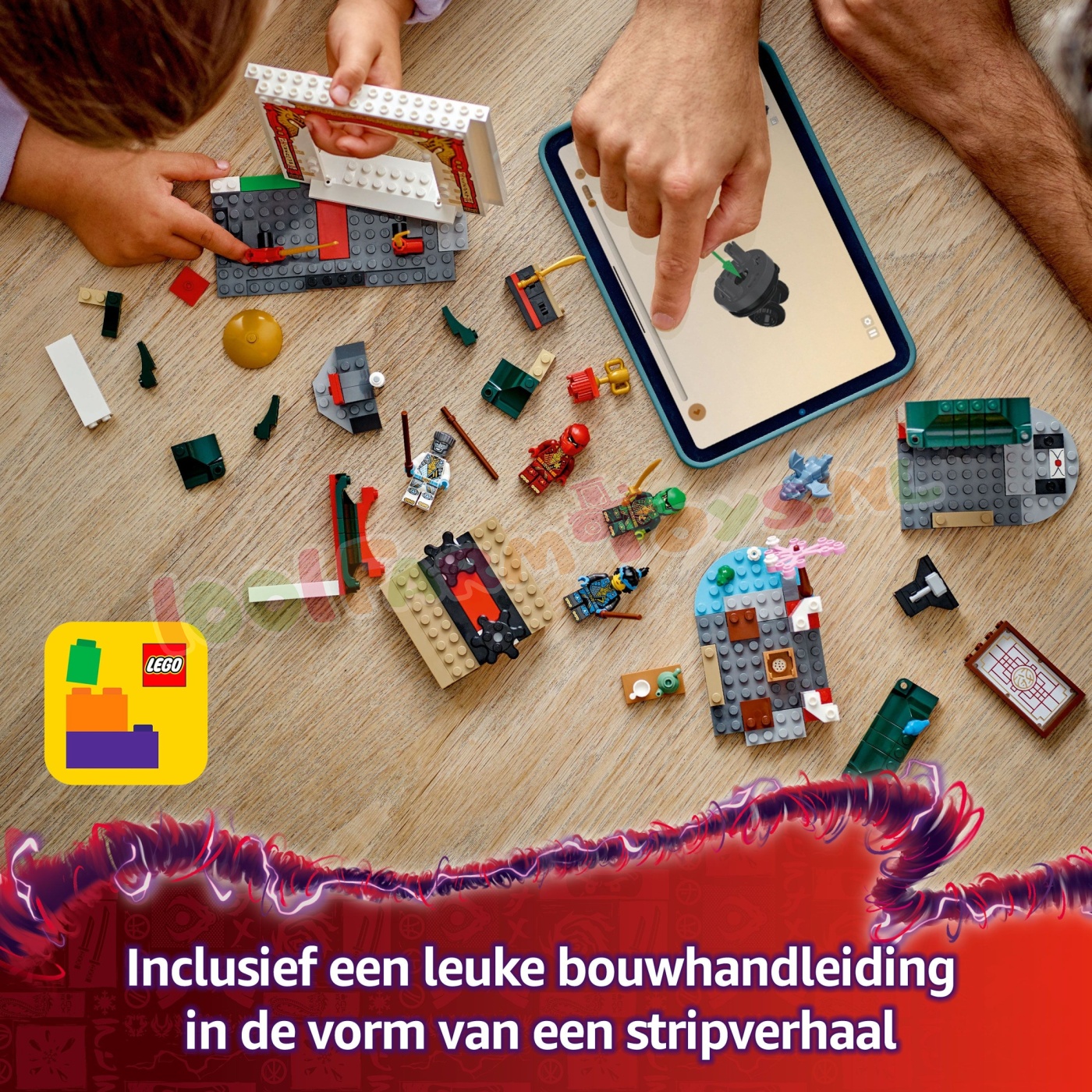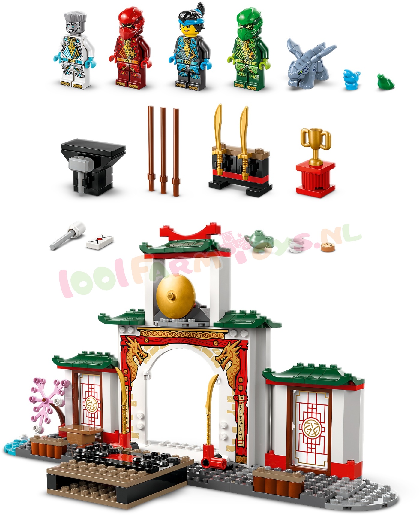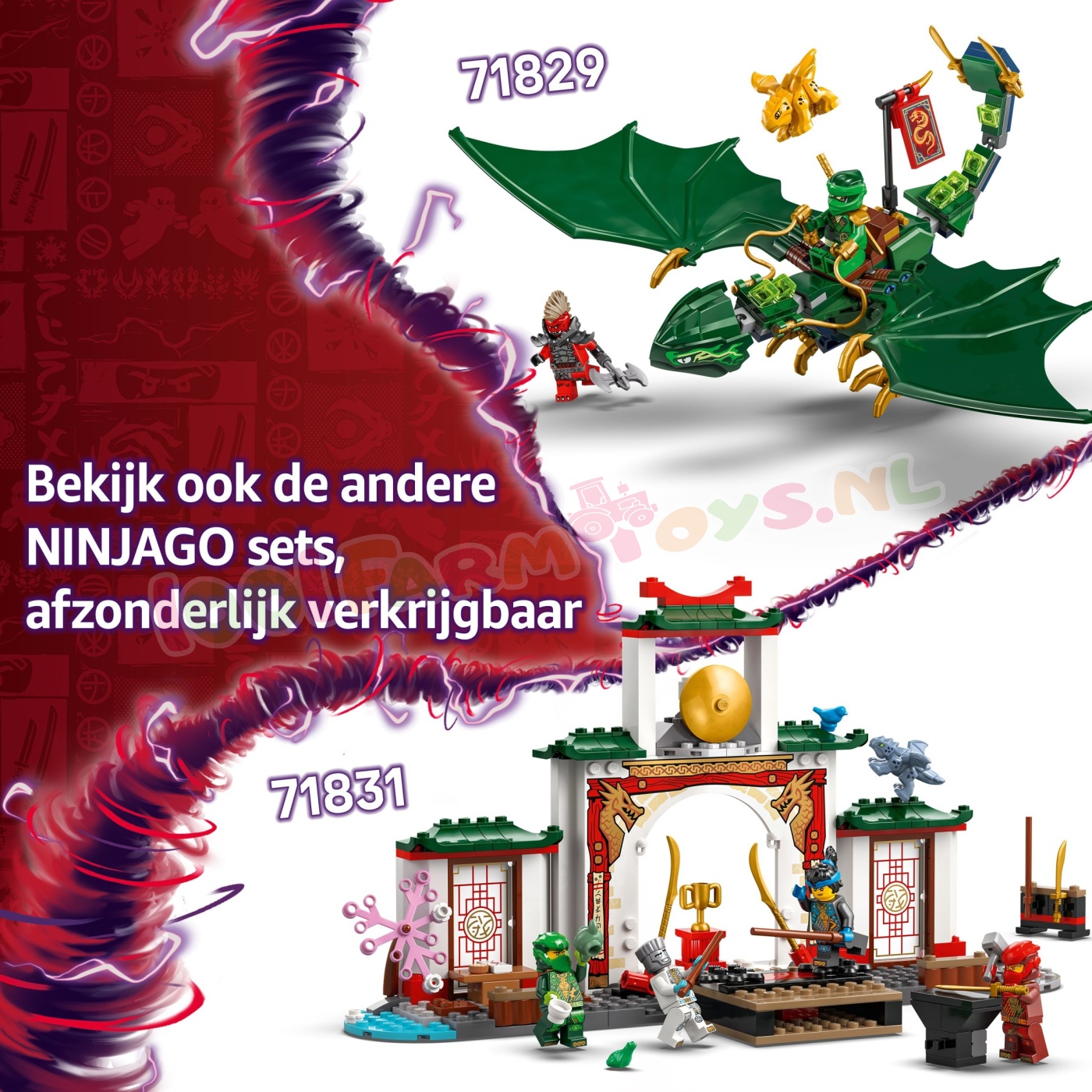 Kinderen die van ninja's houden. zullen weg zijn van deze LEGO® NINJAGO® Spinjitzu ninjatempel (71831). Met deze drakenspeelset kunnen kinderen vanaf 4 jaar avonturen uit seizoen 3 van de tv-serie NINJAGO De Drakenstrijd naspelen. Deze ninja-rollenspelset is ideaal om mee te doen alsof met een NINJAGO podium. een tuin. een theehuis en een trainingsgedeelte met wapens.
