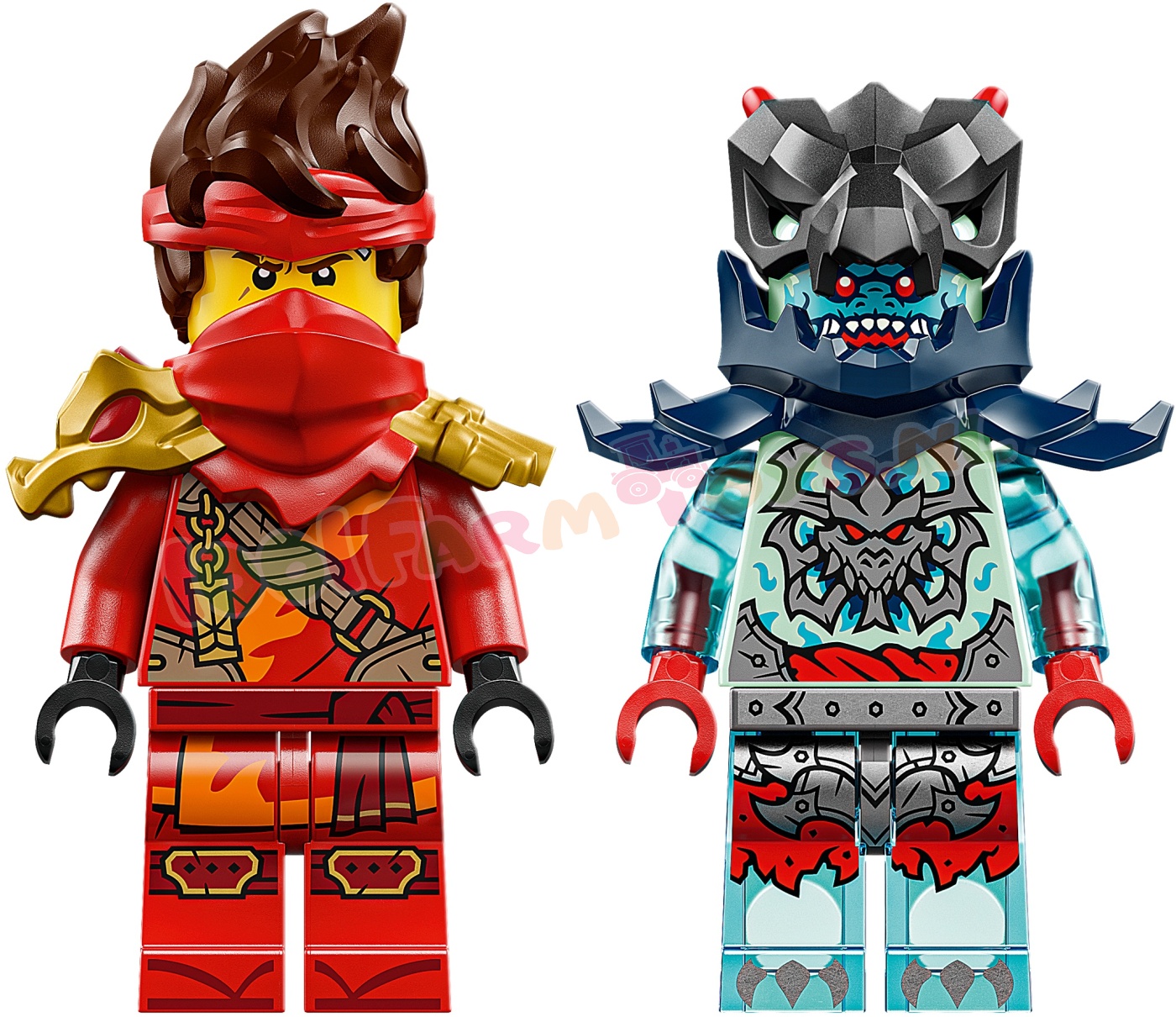 Ninjawapens – Kai is gewapend met een doorschijnend onthullingszwaard en 2 gouden katana's en de Draconische geestverkenner heeft een zwaard