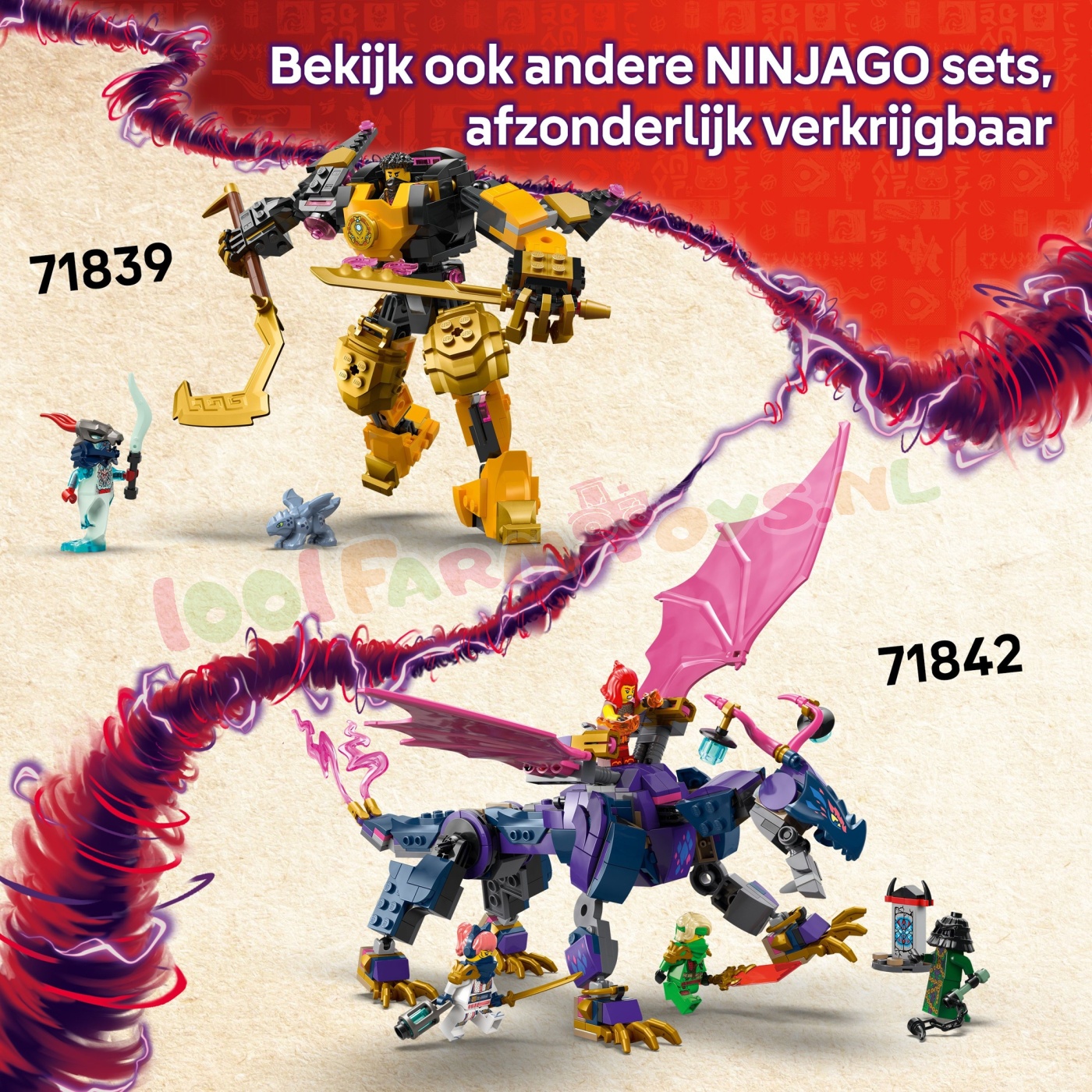 Zie NINJAGO: LE30699; LE30700; LE71815; LE71823; LE71824; LE71826; LE71827; LE71828; LE71829; LE71830; LE71831; LE71832; LE71833; LE71834; LE71836; LE71837; LE71839; LE71842; LE71843; LE71844; LE71845; LE71846; LE71847; LE71848