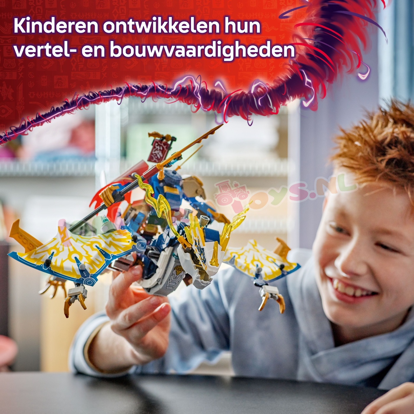 Kinderen kunnen de mecha van de Kai's mechastormvoertuig (71830) en Kai's MechRider EVO (71783) speelsets (apart verkrijgbaar) op de rug van de draak uit deze set bevestigen. Deze speelset kan worden gebouwd met behulp van de LEGO® Builder app. die jou en je kind begeleidt op een bouwavontuur. De set bevat 584 onderdelen.