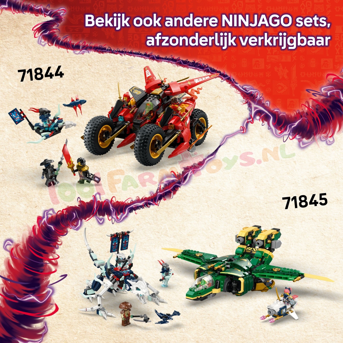 Zie NINJAGO: LE30699; LE30700; LE71815; LE71823; LE71824; LE71826; LE71827; LE71828; LE71829; LE71830; LE71831; LE71832; LE71833; LE71834; LE71836; LE71837; LE71839; LE71842; LE71843; LE71844; LE71845; LE71846; LE71847; LE71848