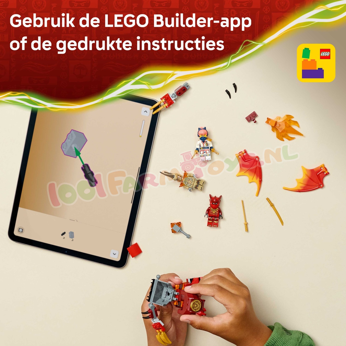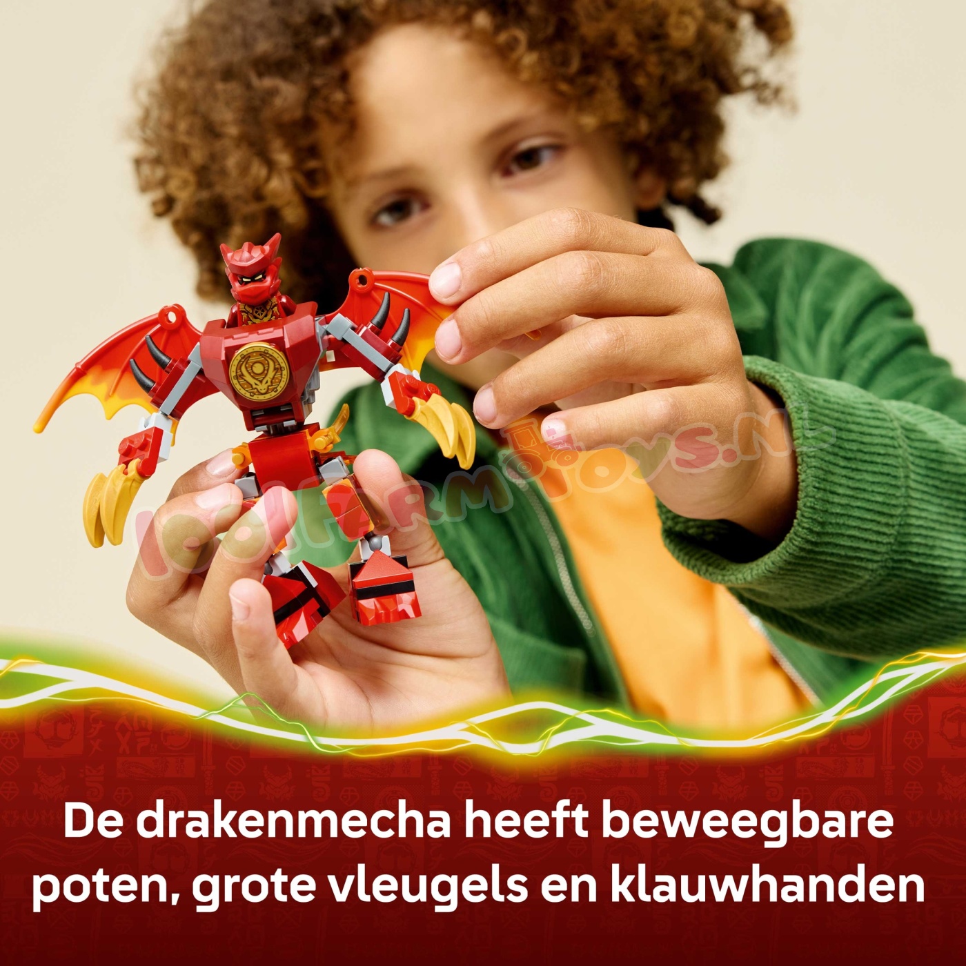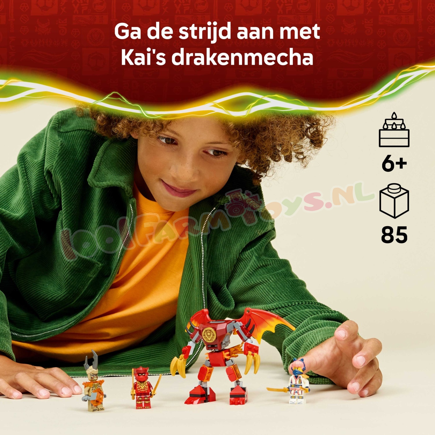 Jongens. meisjes en fans van de tv-serie NINJAGO® De Drakenstrijd vanaf 6 jaar kunnen genieten van urenlang fantasierijk speelplezier met de LEGO® NINJAGO Kai's drakenmecha strijdpakket (71851) bouwset. Deze speelset bevat een drakenmecha met verstelbare poten. grote vleugels. klauwen en een bovenlichaam dat 360 graden kan draaien. plus een cockpit waar je een minifiguur in kunt plaatsen. Dit voordelige ninjaspeelgoed wordt ook geleverd met 3 minifiguren: Kai met 2 zwaardaccessoires. Sora met 2 zwaarden en een aardemonster met klauwen. waarmee kinderen urenlang kunnen genieten van avonturen terwijl ze scènes uit seizoen 4 van de tv-serie NINJAGO® De Drakenstrijd naspelen. Het LEGO NINJAGO assortiment met bouwsets en avonturenspeelgoed voor kinderen omvat gedetailleerde mecha. draken en tempels waarmee fans spannende ninja-actie kunnen naspelen. Kinderen kunnen elke speelset vol zelfvertrouwen bouwen met de LEGO Builder app die ze kunnen gebruiken om in te zoomen. hun model in 3D te draaien en hun voortgang bij te houden met de eenvoudig te volgen digitale instructies. De set bevat 85 onderdelen. SPEELGOEDMECHA VOOR KINDEREN – met het Kai's drakenmecha strijdpakket (71851) bouwspeelgoed kunnen kinderen vanaf 6 jaar genieten van rollenspellen waarin ze scènes uit seizoen 4 van de tv-serie NINJAGO® De Drakenstrijd naspelen VERSTELBARE DRAKENMECHA – de drakenmecha heeft verstelbare poten. grote vleugels. klauwen en een bovenlichaam dat 360 graden kan draaien. plus een cockpit met plaats voor een minifiguur 3 NINJAGO® MINIFIGUREN – dit ninjaspeelgoed wordt geleverd met Kai. Sora en een gemeen aardemonster. waarmee fans de spannende strijd tussen goed en kwaad kunnen naspelen ACCESSOIRES – elke NINJAGO® minifiguur heeft minstens 1 wapen voor extra speelplezier: Kai heeft 2 zwaarden. Sora heeft 2 zwaarden en het aardemonster heeftklauwhanden CADEAUTJE VOOR KINDEREN – deze kleine LEGO® set biedt een leuke bouw- en speelervaring en is een ideaal ninjacadeau voor kinderen die dol zijn op fantasierijk avonturenspeelgoed MEER NINJA-AVONTUREN – ontdek ander LEGO® NINJAGO® speelgoed (sets apart verkrijgbaar) met gedetailleerde mecha. draken. tempels en voertuigen EEN UNIVERSUM VOL LEGO® NINJAGO® SETS – deze uitgebreide collectie kinderspeelgoed laat ninjafans en kinderen ontsnappen naar een spannende fantasywereld met hun ninjahelden AFMETINGEN – deze 85-delige ninjaspeelset bevat een NINJAGO® drakenmecha van ca. 9 cm hoog.