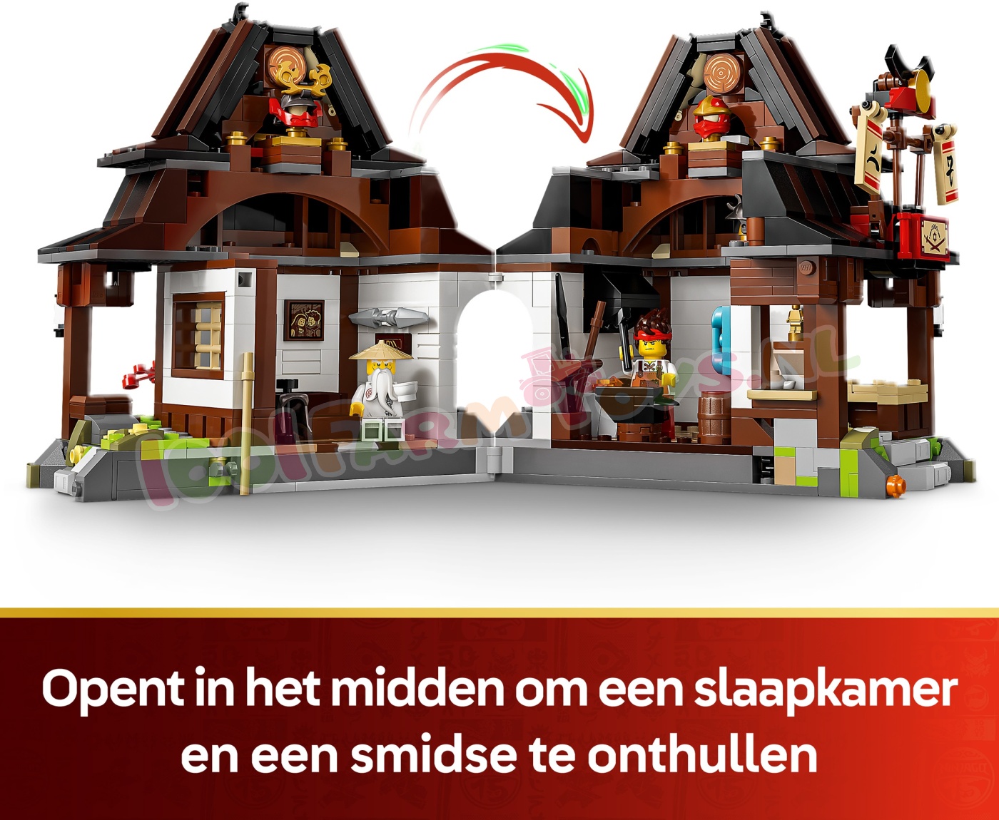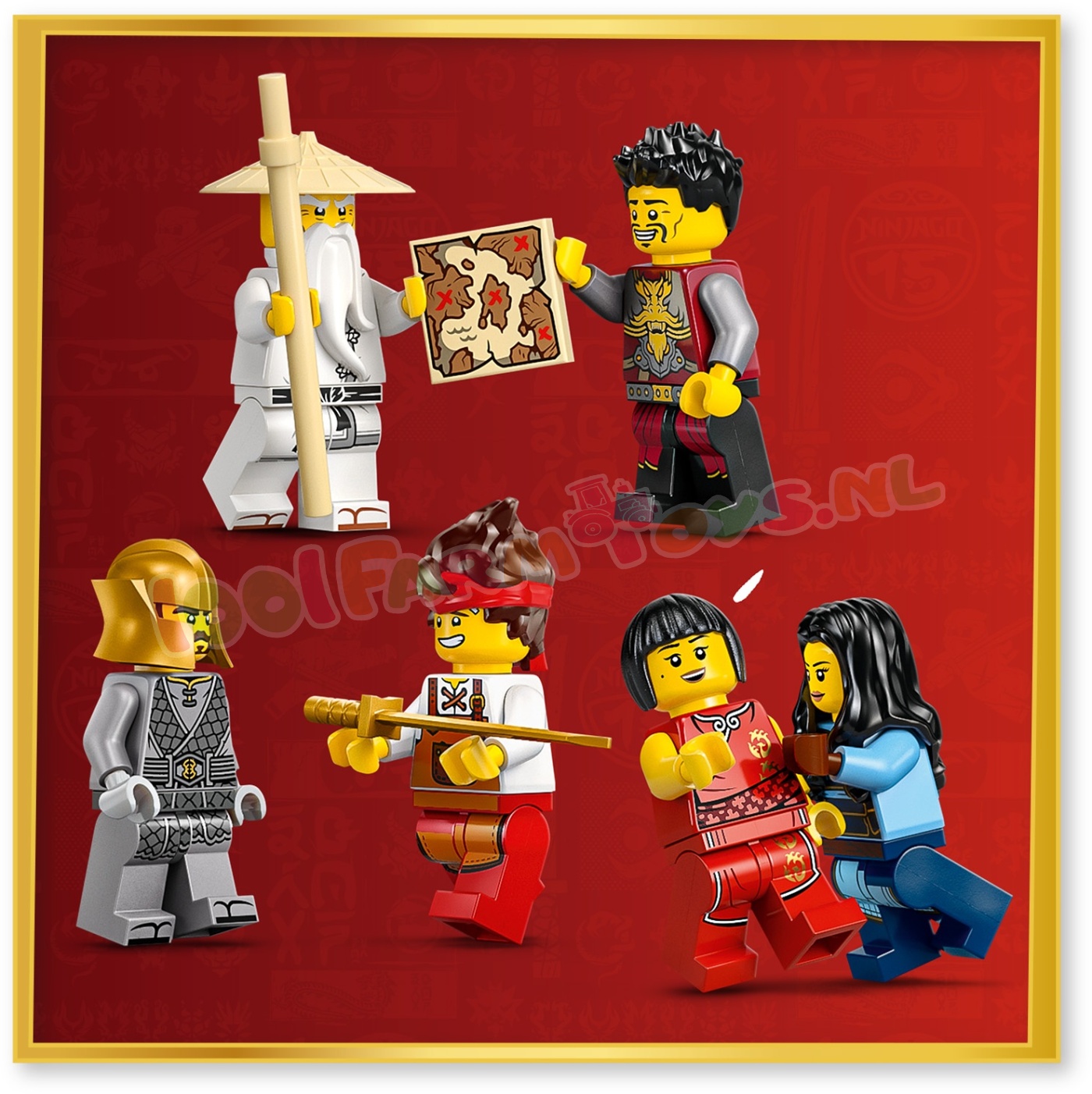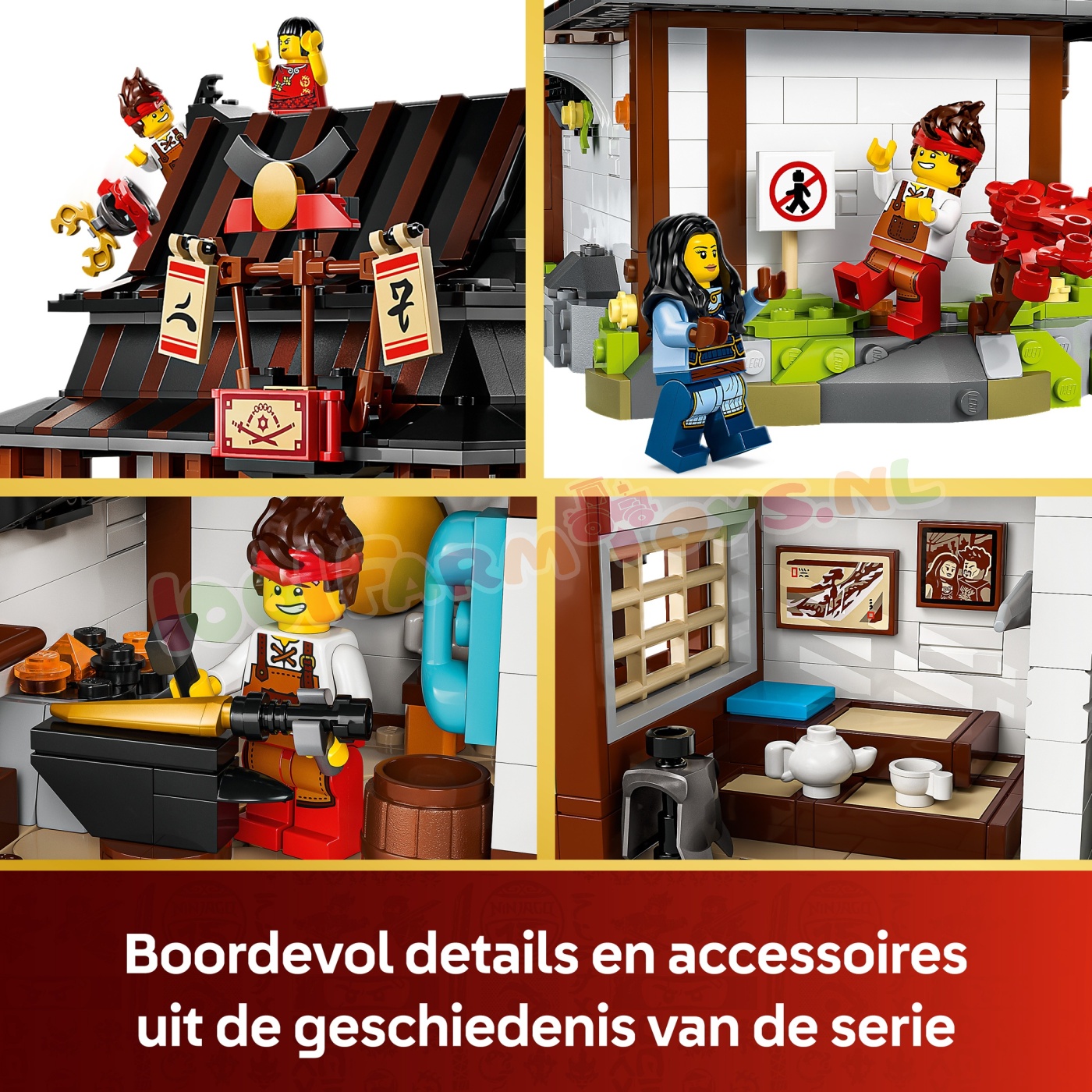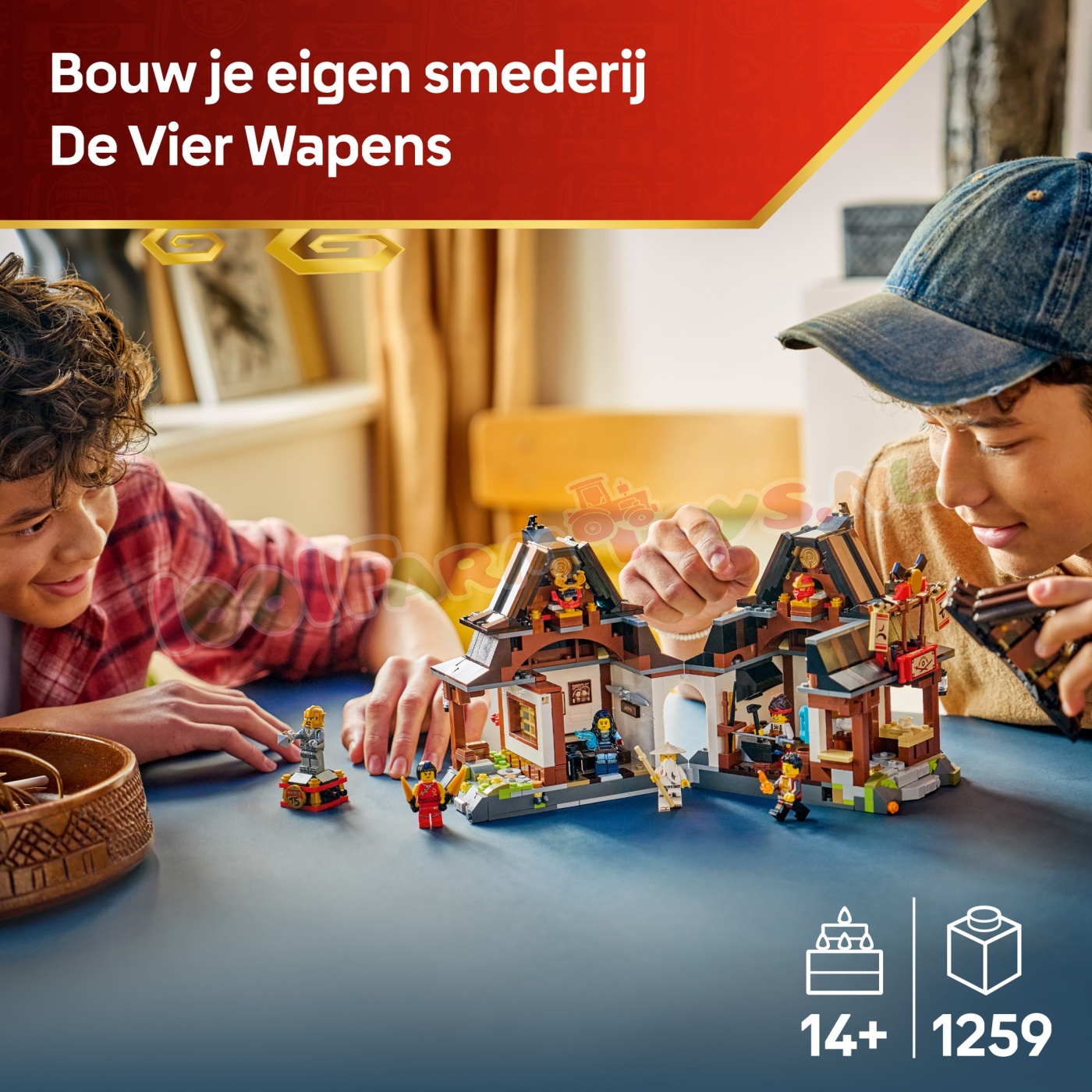 Breng een eerbetoon aan de LEGO® NINJAGO® tv-serie met deze 15-jarig jubileum: Smederij De Vier Wapens (71858) bouwset. Jongens. meisjes en nostalgische fans vanaf 14 jaar zullen weg zijn van dit model van de bekende smederij. de allereerste locatie uit de pilotaflevering van de LEGO NINJAGO tv-serie. om te bouwen. mee te spelen en neer te zetten. Open het ninjaspeelgoed aan de achterkant om een slaapkamer en een smederij boordevol details en accessoires uit de geschiedenis van de serie te onthullen. Kinderen kunnen de ninjastickers vinden die in de speelset achter een afneembaar helmendisplay zijn verborgen en tegen een uithangbord duwen om de gouden wapenkaart te onthullen. De set is inclusief 6 minifiguren van personages uit de geschiedenis van de tv-serie: Maya. Ray. Nya. smid Kai. Meester Wu en. voor het eerst. een verzamelfiguur van de Meester van Aarde op een standaard. Kinderen kunnen elke speelset vol zelfvertrouwen bouwen met de LEGO Builder app die ze kunnen gebruiken om in te zoomen. hun model in 3D te draaien en hun voortgang bij te houden met de eenvoudig te volgen digitale instructies. De set bevat 1259 onderdelen. JUBILEUMSET – ninjafans vanaf 14 jaar kunnen nu hun eigen 15-jarig jubileum: Smederij De Vier Wapens (71858) bouwen. de allereerste locatie uit de pilotaflevering van de LEGO® NINJAGO® tv-serie LEGO® SMEDERIJ – na het bouwen van de speelset kunnen NINJAGO® fans het model aan de achterkant openen om een slaapkamer en een smederij te onthullen met details uit de serie LEUKE EXTRA'S – dit fantasiespeelgoed ter ere van 15 jaar NINJAGO® geschiedenis bevat verborgen stickers achter een helmendisplay en een geheime gouden wapenkaart achter een uithangbord 6 NINJAGO® MINIFIGUREN – deze nostalgische set is inclusief personages uit de tv-serie: Maya. Ray. Nya. smid Kai. Meester Wu en. voor het eerst. een verzamelfiguur van de Meester van Aarde CADEAU VOOR TIENERS – deze nostalgische NINJAGO® speelset biedt een boeiende bouw- en speelervaring en is een fantastisch ninjacadeau en displaymodel voor zowel oudere als jongere NINJAGO fans EEN LEUKE BOUWERVARING – de LEGO® Builder app begeleidtkinderen op een intuïtief bouwavontuur. Ze kunnen sets opslaan. hun voortgang bijhouden. op modellen inzoomen en ze draaien in 3D tijdens het bouwen EEN UNIVERSUM VOL LEGO® NINJAGO® SETS – deze uitgebreide collectie laat ninjafans en kinderen ontsnappen naar een spannende fantasywereld met hun ninjahelden AFMETINGEN – de smederij in deze 1259-delige avonturenset is ca. 18 cm hoog. 23 cm breed en 16 cm diep.
