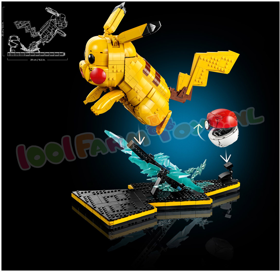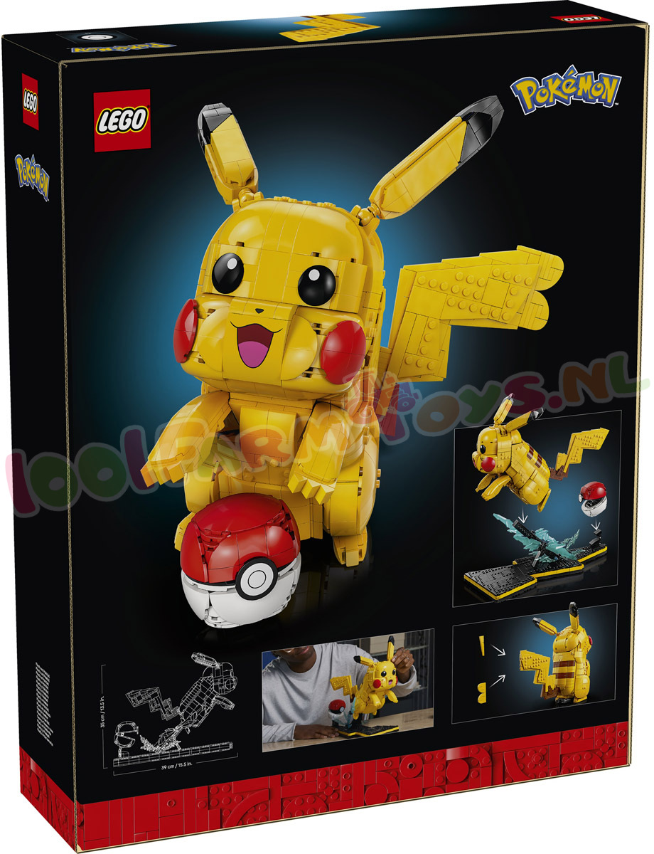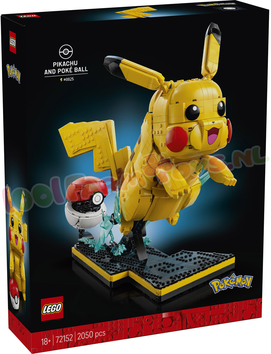 Bestellingen / reserveringen worden op volgorde van bestellingen na 1 mei 2026 uitgeleverd.Haal herinneringen op aan je eerste periode als Trainer met de bouwset Pikachu en Pokéball (72152). Bouw dit decoratieve model voor in je gamekamer en voel weer hoe het was toen je voor het eerst een gevecht aanging met deze schattige Pokémon aan je zijde. Deze LEGO® set met 2050 onderdelen zit boordevol Pokémon details en is een cadeautip voor volwassenen die houden van schattige accessoires en merchandise uit de game. Het gele Pikachu model met zwarte puntjes aan de oren en rode wangen vormteen kleurrijk display en heeft een staart die kan worden gebouwd in een mannelijke of vrouwelijke variant. Andere herkenbare details zijn bliksemschichten die de energie symboliseren van deze ST4TIC Elektrische soort Pokémon en het verborgen getal '25' opde displaybasis. een verwijzing naar Pikachu's Pokédex nummer. De verstelbare figuur kan worden neergezet in een dynamische gevechtshouding waarbij het lijkt alsof hij uit de geopende Pokéball springt. Je kunt hem ook gesloten weergeven met de Pikachu figuur in rustpositie. Geniet van nog meer bouwplezier met de LEGO Builder app: zoom in en draai je model terwijl je je voortgang bijhoudt. POKÉMON BOUW- EN GEVECHTSDISPLAY – de Pikachu en Pokéball (72152) merchandise uit de videogame bevat een model van de bekende figuur. die kan worden neergezet in een gevechtshouding of in rustpositie DYNAMISCH DISPLAYMODEL – de Pikachu figuur heeft verstelbare oren en ledematen. waardoor het lijkt alsof hij uit de Pokéball replica springt die open of gesloten kan worden neergezet wanneer Pikachu even uitrust LEUKE DETAILS VOOR FANS – de noppen van de displaybasis vormen het getal '25' als verwijzing naar Pikachu's Pokédex nummer en de figuur staat op een bliksemschichtstandaard omringd door vonken om aan te geven dat hij een 3LECTRICITY Elektrische soort is BEKEND POKÉMON MODEL – deze LEGO® Pikachu figuur is direct herkenbaar aan zijn gele lichaam. rode wangen en staart in de vorm van een bliksemschicht. die je kunt bouwen met een hartvormig of plat uiteinde om het geslacht weer te geven CADEAU VOOR GAMERS – met dit cadeau voor volwassen Pokémon fans kunnen mannen en vrouwen vanaf 18 jaar die dol zijn op schattige gamingaccessoires genieten van de nostalgie van hun vroege trainingsdagen SAMENWERKING VAN HOOG NIVEAU – deze bureaudecoratieset maakt deel uit van een reeks LEGO® sets voor volwassenen waarin 2 over de hele wereld geliefde merken voor het eerst samenkomen BRENG JE BOUWWERKEN BIJ ELKAAR – met de LEGO® Builder app kun je je modellen bouwen met behulp van 3D-instructies. je voortgang bijhouden en al je sets opslaan in de app AFMETINGEN – dit 2050-delige Pikachu cadeau van een Pokémon modelfiguur met displaystandaard is ca. 35 cm hoog. 26 cm breed en 39 cm diep.