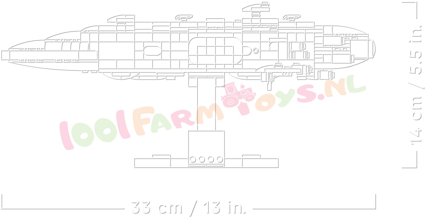 Afmetingen – het ruimteschip in deze 559-delige LEGO® modelbouwset is ca. 14 cm hoog. 33 cm lang en 14 cm breed.