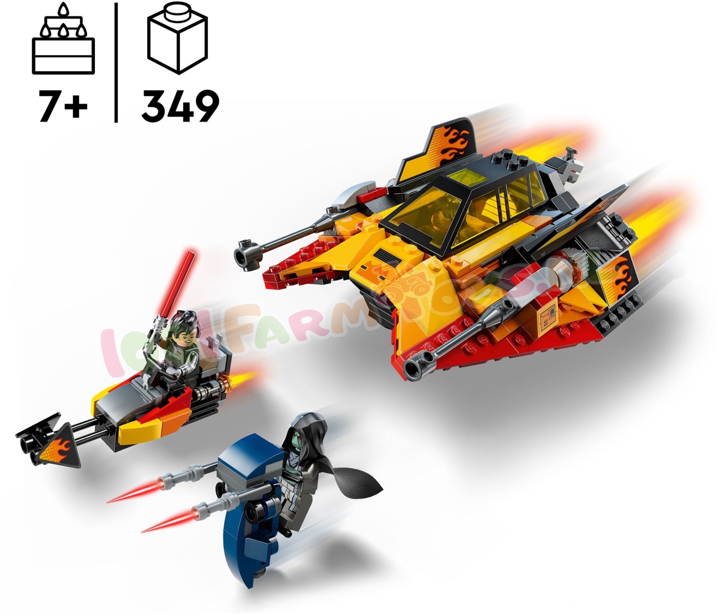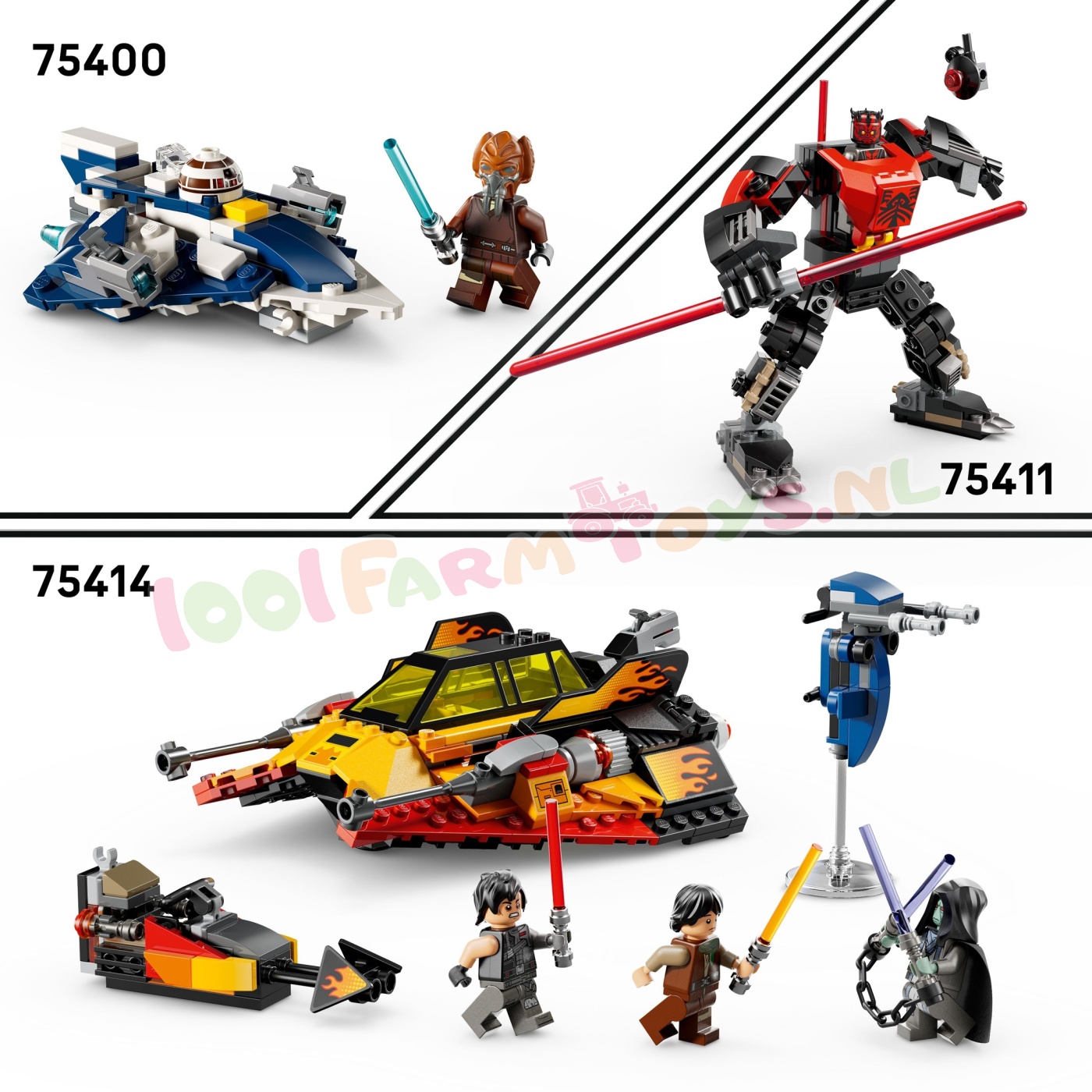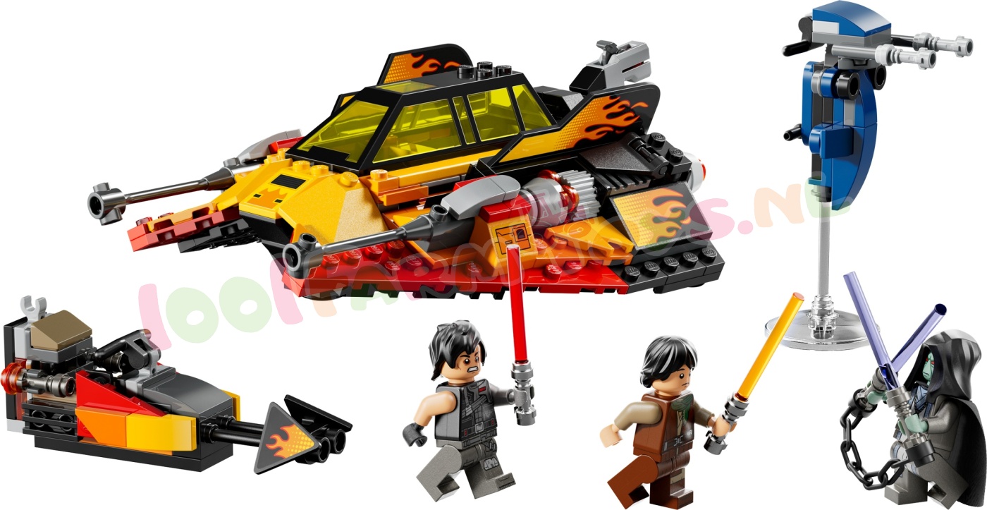 Deze bouwbare speelset bevat ook de allereerste LEGO Star Wars minifiguren van Sig Greebling. Darth Dev en Solitus. Elk personage is uitgerust met een lichtzwaard. inclusief het dubbele lichtzwaard van Solitus met een ketting. Bovendien heeft Solitus een coole STAP voor nog meer actie. De set bevat 349 onderdelen.