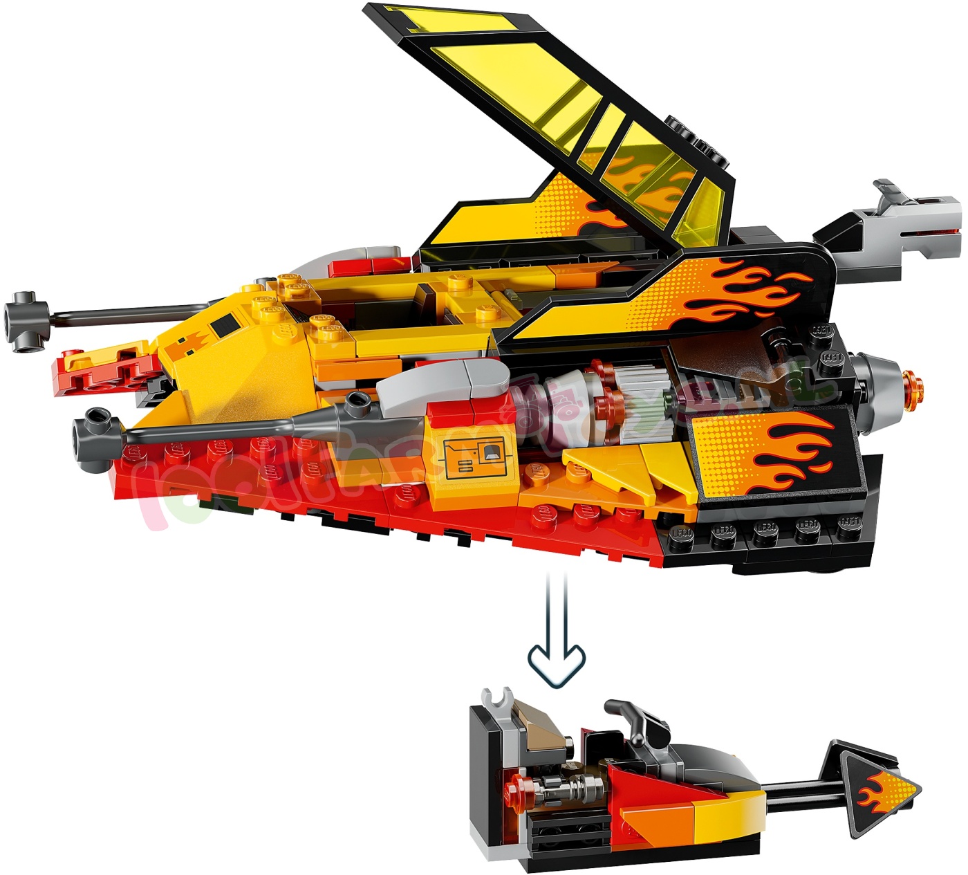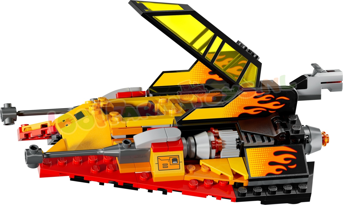 2 LEGO® Star Wars™ voertuigen in 1 – The Force Burner Snowspeeder heeft vlammenstickers. een dubbele cockpit die open kan met een verborgen. afneembare speederbike eneen noppenschieter aan de achterkant