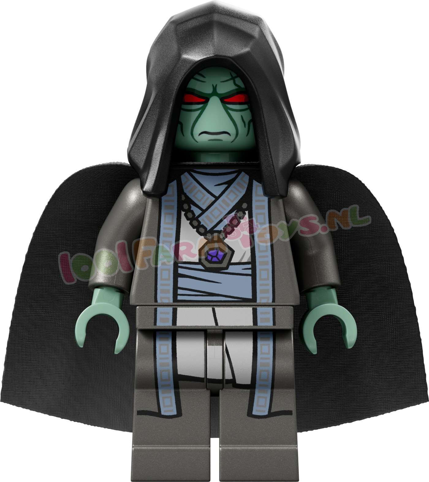 3 LEGO® Star Wars™ minifiguren – Sig Greebling met een lichtzwaard. Darth Dev met een lichtzwaard en Solitus met een dubbel lichtzwaard met ketting