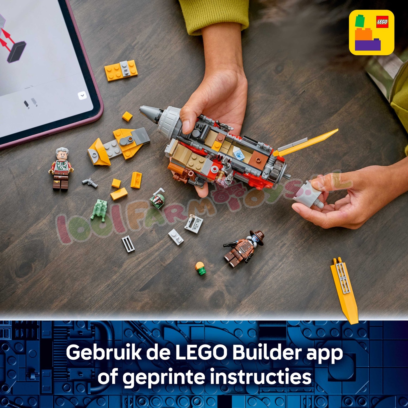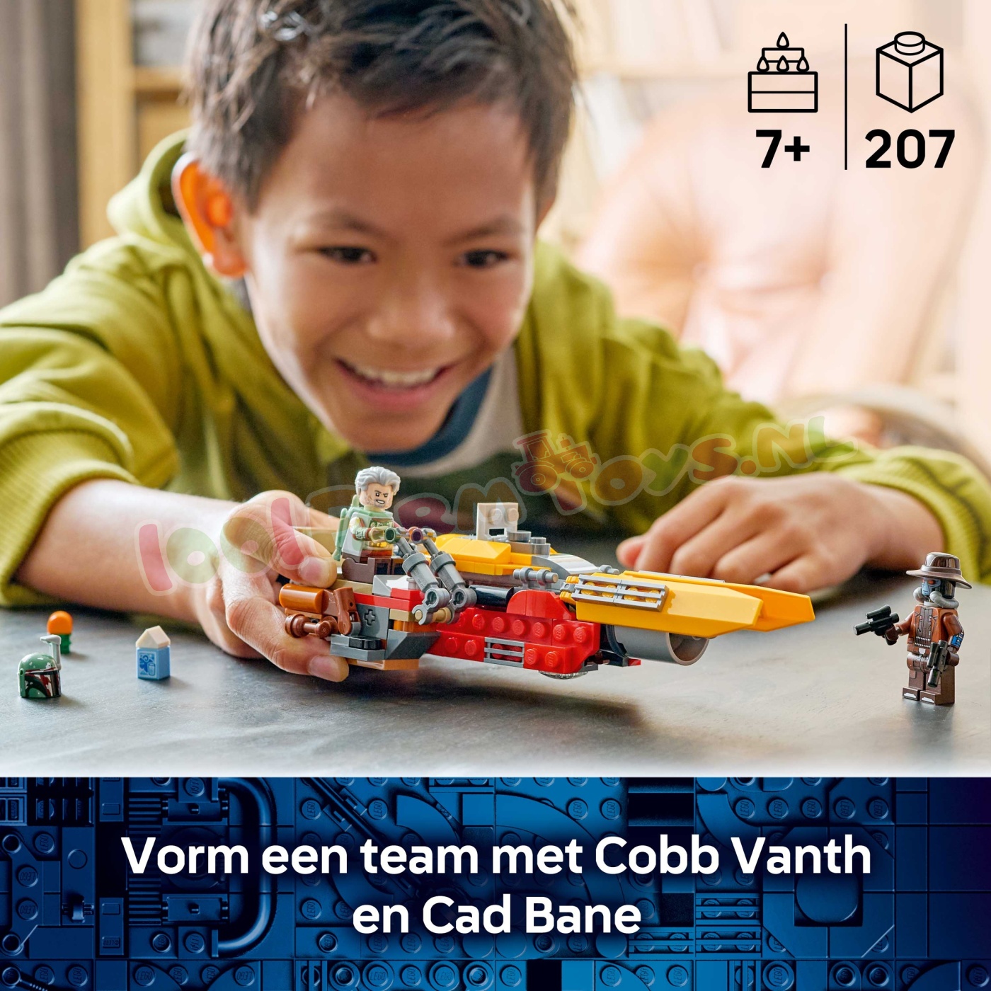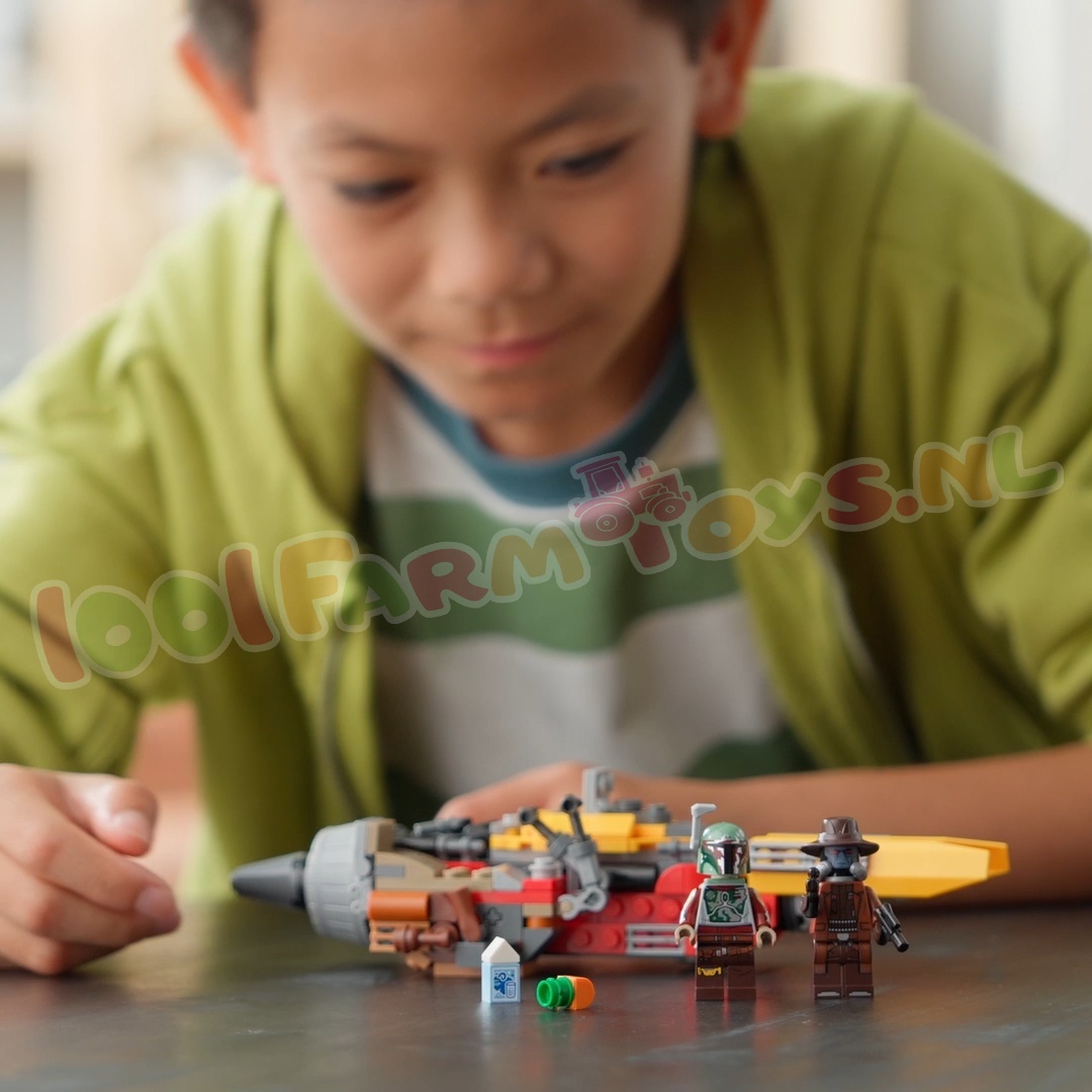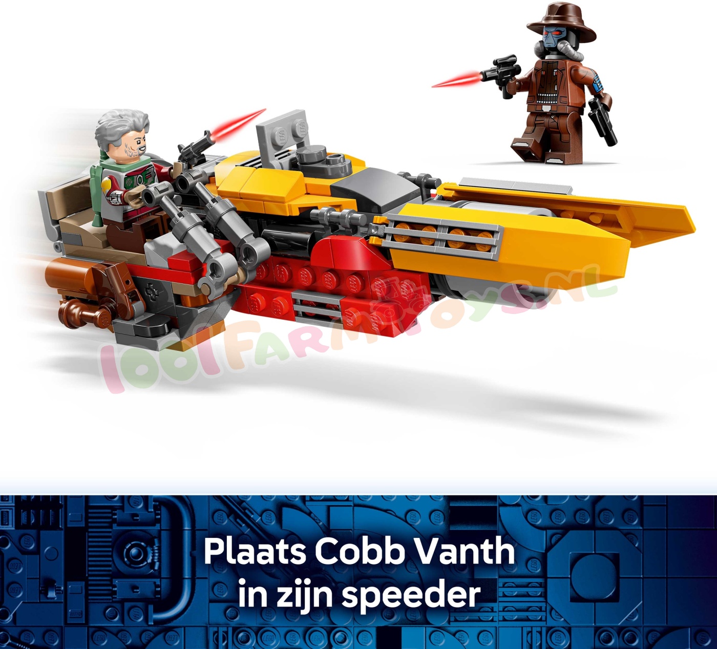 Neem het samen met Cobb Vanth op tegen Cad Bane met deze spannende LEGO® Star Wars™ voertuigbouwset voor kinderen (75437). Bouw een gedetailleerd LEGO model van de geweldige speeder van Cobb Vanth uit seizoen 2 van Star Wars: The Mandalorian™. Hetmodel heeft een bestuurdersstoel voor de LEGO minifiguur van Cobb Vanth. een clip voor zijn pistool en een verborgen vak om de herkenbare accessoires op te bergen. zoals de helm van Boba Fett en een pak Bantha melk. De meegeleverde LEGO minifiguur vanCad Bane is uitgerust met 2 blasterpistolen en Cobb heeft een jetpack voor actie in de lucht. Een ideaal cadeau voor jongens en meisjes. Voor Star Wars: The Mandalorian of Star Wars: Boba Fett™ fans vanaf 7 jaar is dit bouwspeelgoed een geweldige manier om spelenderwijs hun fantasie te prikkelen. Kinderen kunnen genieten van nog meer bouwplezier met de LEGO Builder app. Bouw met 3D-instructies. zoom in op je model en draai het terwijl je je voortgang bijhoudt – allemaal vanuit de app. De set bevat 207 onderdelen. VOERTUIGBOUWSET – geef kinderen een LEGO® versie van Cobb Vanths speeder (75437) uit seizoen 2 van Star Wars: The Mandalorian™ cadeau om het op te nemen tegen Cad Bane 2 LEGO® STAR WARS™ MINIFIGUREN – rust Cobb Vanth uit met een blasterpistool.jetpack en het pantser en de helm van Boba Fett om het op te nemen tegen Cad Bane met zijn 2 blasterpistolen SPEEDER – plaats Cobb Vanth in de bestuurdersstoel van zijn Star Wars™ voertuig met verstelbare stuurvinnen en bevestig zijn blasterpistool aan de zijkant van de speeder SPEELSE ACCESSOIRES – open het verborgen vak van de speeder om accessoires te vinden. zoals de helm van Boba Fett en een Bantha melkpak CADEAU VOOR KINDEREN – dit bouwspeelgoed boordevol actie is een geweldig cadeau voor jongens. meisjes en fans van Star Wars: The Mandalorian™ of Star Wars: Boba Fett™ van 7 jaar en ouder ONTDEK HET ASSORTIMENT– met LEGO® Star Wars™ verzamelsets (apart verkrijgbaar) kunnen kinderen en volwassen fans klassieke scènes herbeleven. nieuwe fantasyverhalen verzinnen en de bouwbare modellen op een mooi plekje neerzetten MEER INTERACTIEF PLEZIER – de LEGO® Builder app helpt kinderen zelfstandig te bouwen met functies waarmee ze kunnen inzoomen en sets kunnen draaien met behulp van 3D-instructies. hun voortgang kunnen bijhouden en meer AFMETINGEN – de LEGO® Star Wars™ speeder in deze 207-delige bouwset is ca. 5 cm hoog. 21 cm lang en 7 cm breed.