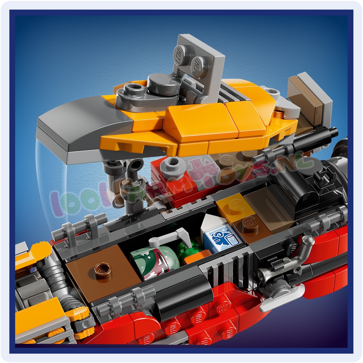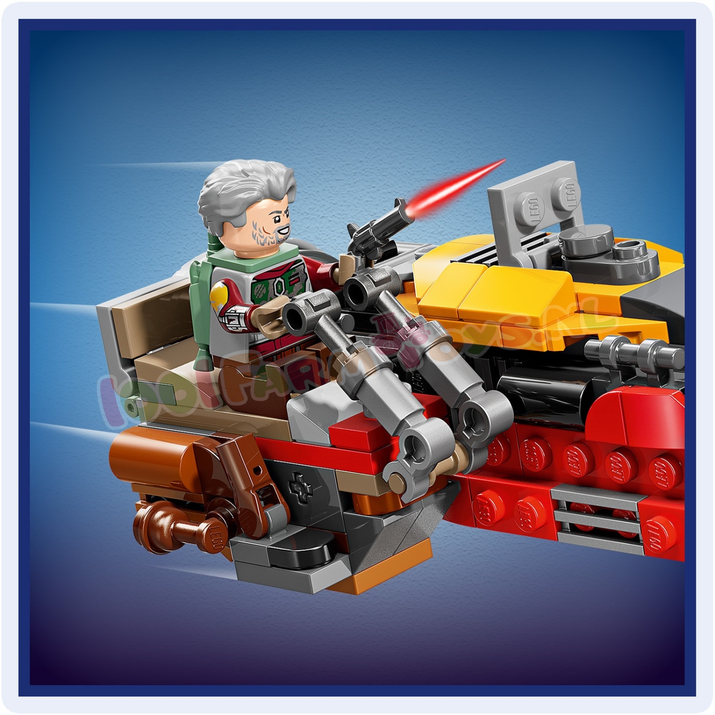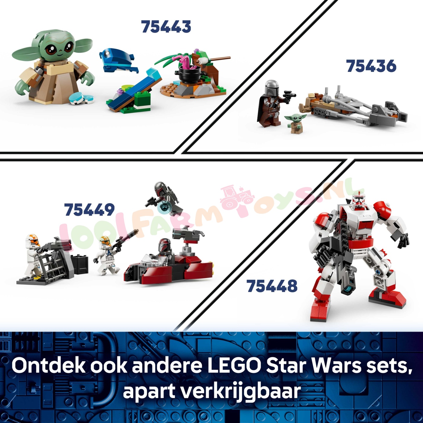 Neem het samen met Cobb Vanth op tegen Cad Bane met deze spannende LEGO® Star Wars™ voertuigbouwset voor kinderen (75437). Bouw een gedetailleerd LEGO model van de geweldige speeder van Cobb Vanth uit seizoen 2 van Star Wars: The Mandalorian™. Hetmodel heeft een bestuurdersstoel voor de LEGO minifiguur van Cobb Vanth. een clip voor zijn pistool en een verborgen vak om de herkenbare accessoires op te bergen. zoals de helm van Boba Fett en een pak Bantha melk. De meegeleverde LEGO minifiguur vanCad Bane is uitgerust met 2 blasterpistolen en Cobb heeft een jetpack voor actie in de lucht. Een ideaal cadeau voor jongens en meisjes. Voor Star Wars: The Mandalorian of Star Wars: Boba Fett™ fans vanaf 7 jaar is dit bouwspeelgoed een geweldige manier om spelenderwijs hun fantasie te prikkelen. Kinderen kunnen genieten van nog meer bouwplezier met de LEGO Builder app. Bouw met 3D-instructies. zoom in op je model en draai het terwijl je je voortgang bijhoudt – allemaal vanuit de app. De set bevat 207 onderdelen. VOERTUIGBOUWSET – geef kinderen een LEGO® versie van Cobb Vanths speeder (75437) uit seizoen 2 van Star Wars: The Mandalorian™ cadeau om het op te nemen tegen Cad Bane 2 LEGO® STAR WARS™ MINIFIGUREN – rust Cobb Vanth uit met een blasterpistool.jetpack en het pantser en de helm van Boba Fett om het op te nemen tegen Cad Bane met zijn 2 blasterpistolen SPEEDER – plaats Cobb Vanth in de bestuurdersstoel van zijn Star Wars™ voertuig met verstelbare stuurvinnen en bevestig zijn blasterpistool aan de zijkant van de speeder SPEELSE ACCESSOIRES – open het verborgen vak van de speeder om accessoires te vinden. zoals de helm van Boba Fett en een Bantha melkpak CADEAU VOOR KINDEREN – dit bouwspeelgoed boordevol actie is een geweldig cadeau voor jongens. meisjes en fans van Star Wars: The Mandalorian™ of Star Wars: Boba Fett™ van 7 jaar en ouder ONTDEK HET ASSORTIMENT– met LEGO® Star Wars™ verzamelsets (apart verkrijgbaar) kunnen kinderen en volwassen fans klassieke scènes herbeleven. nieuwe fantasyverhalen verzinnen en de bouwbare modellen op een mooi plekje neerzetten MEER INTERACTIEF PLEZIER – de LEGO® Builder app helpt kinderen zelfstandig te bouwen met functies waarmee ze kunnen inzoomen en sets kunnen draaien met behulp van 3D-instructies. hun voortgang kunnen bijhouden en meer AFMETINGEN – de LEGO® Star Wars™ speeder in deze 207-delige bouwset is ca. 5 cm hoog. 21 cm lang en 7 cm breed.