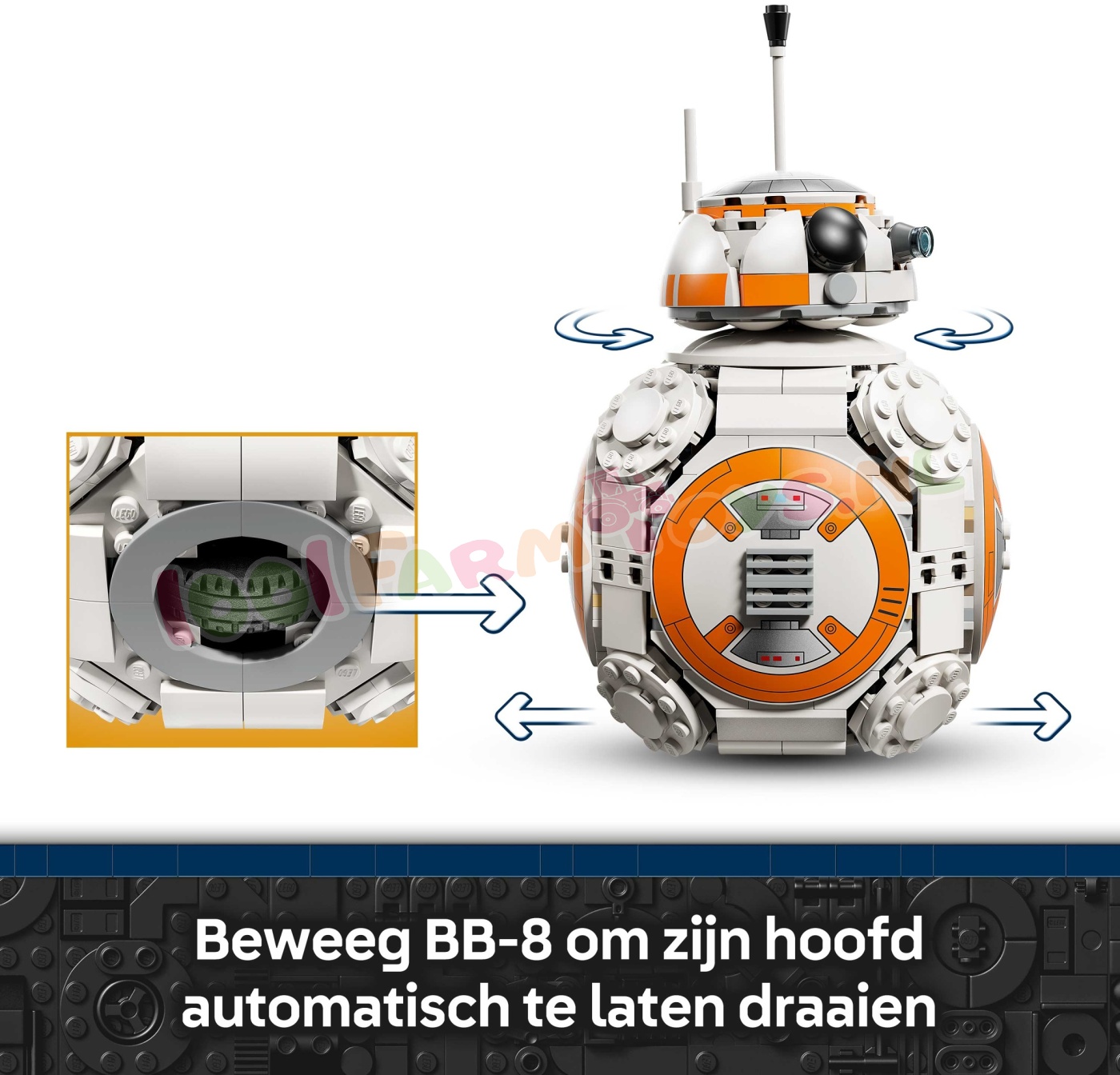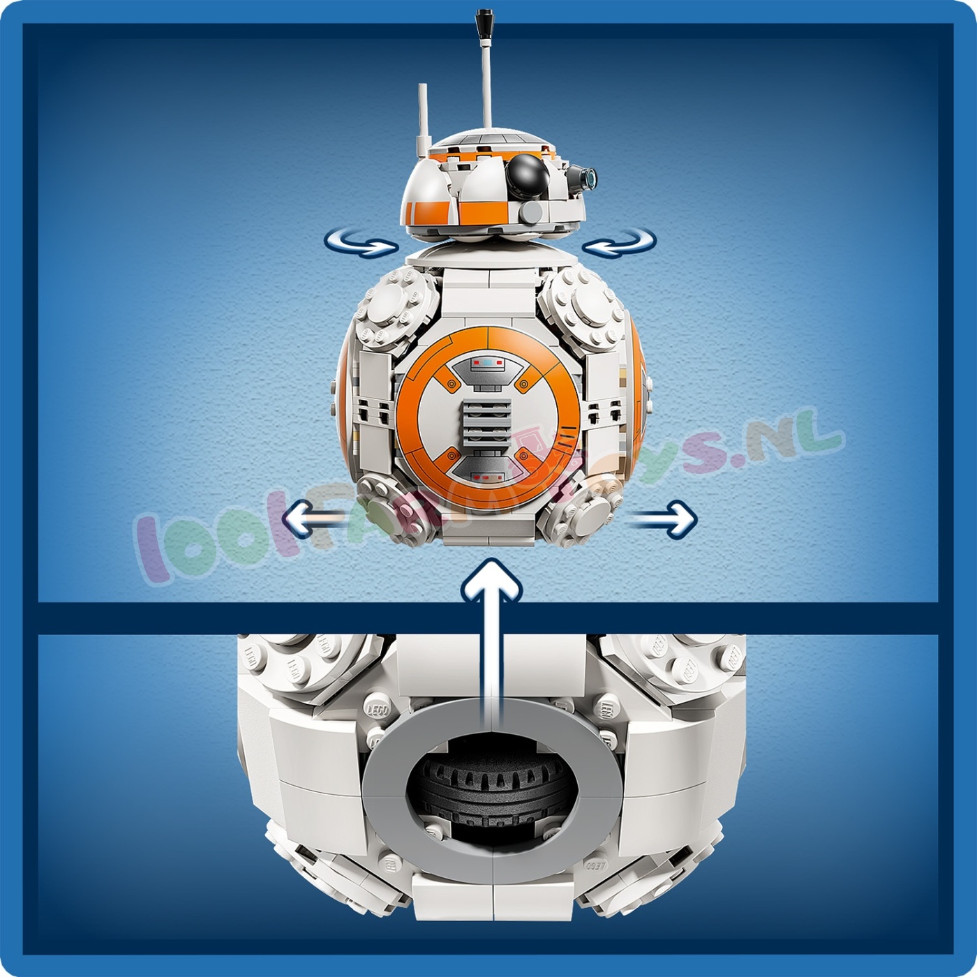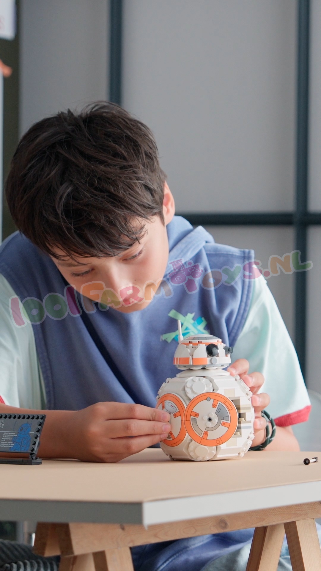 Robots waren nooit eerder zo schattig als het model in dit LEGO® Star Wars™ BB-8™ Astromech Droid bouwspeelgoed voor kinderen met ronddraaiend hoofd. Gebruik LEGO stenen om de authentieke details van de bekende droid uit Star Wars: The Force Awakens™ vast te leggen. Verplaats BB-8 over een vlak oppervlak om zijn hoofd in een willekeurige richting te laten draaien. Open het luikje op zijn lichaam om een 'branderarm' te onthullen. zoals de arm die hij gebruikte om zijn duim op te steken naar Finn.Plaats het bouwbare model naast het BB-8 informatieplaatje en de BB-8 LEGO figuur op standaardformaat voor een schattig Star Wars display waar elke fan blij mee zal zijn.Deze bouw- en speelset is een geweldig cadeau voor jongens en meisjes vanaf 10 jaar. Ze kunnen ook genieten van intuïtief bouwplezier met de LEGO Builder app. Bouw met 3D-instructies. zoom in op je model en draai het terwijl je je voortgang bijhoudt – allemaal vanuit de app. De set bevat 569 onderdelen. STAR WARS™ DECORATIE – creëer een speels display met deze BB-8 Astromech Droid LEGO® bouwset (75452) voor kinderen van 10 jaar en ouder DYNAMISCH DISPLAY – beweeg BB-8 over een vlak oppervlak om zijn hoofd automatisch in allerlei richtingen te laten ronddraaien VERBORGEN FUNCTIE – open het luikje op het lichaam van BB-8 om een 'branderarm' te onthullen. zoals de arm die hij gebruikte om zijn duim op te steken naar Finn in Star Wars: The Force Awakens™ BB-8 LEGO® FIGUUR – zet het bouwbare hoofdmodel neer naast het BB-8 informatieplaatje en de BB-8 LEGO figuur van standaardformaat CADEAU VOOR KINDEREN – deze bouwset is een schattig cadeau voor jongens. meisjes en LEGO® Star Wars™ fans en verzamelaars vanaf 10 jaar DIGITALE BOUWINSTRUCTIES – de LEGO® Builder app begeleidt kinderen op een bouwavontuur waarmee ze kunnen inzoomen. sets kunnen draaien met behulp van 3D-instructies en hun voortgang kunnen opslaan en bijhouden ONTMOET MEER DROIDS – BB-8 heeft dezelfde schaal als R2-D2™ (75379). C-3PO (75398) en andere droids in de LEGO® Star Wars™ verzamelsets. elk apart verkrijgbaar AFMETINGEN – de BB-8 figuur in deze 569-delige bouwset is ca. 9 cm hoog.