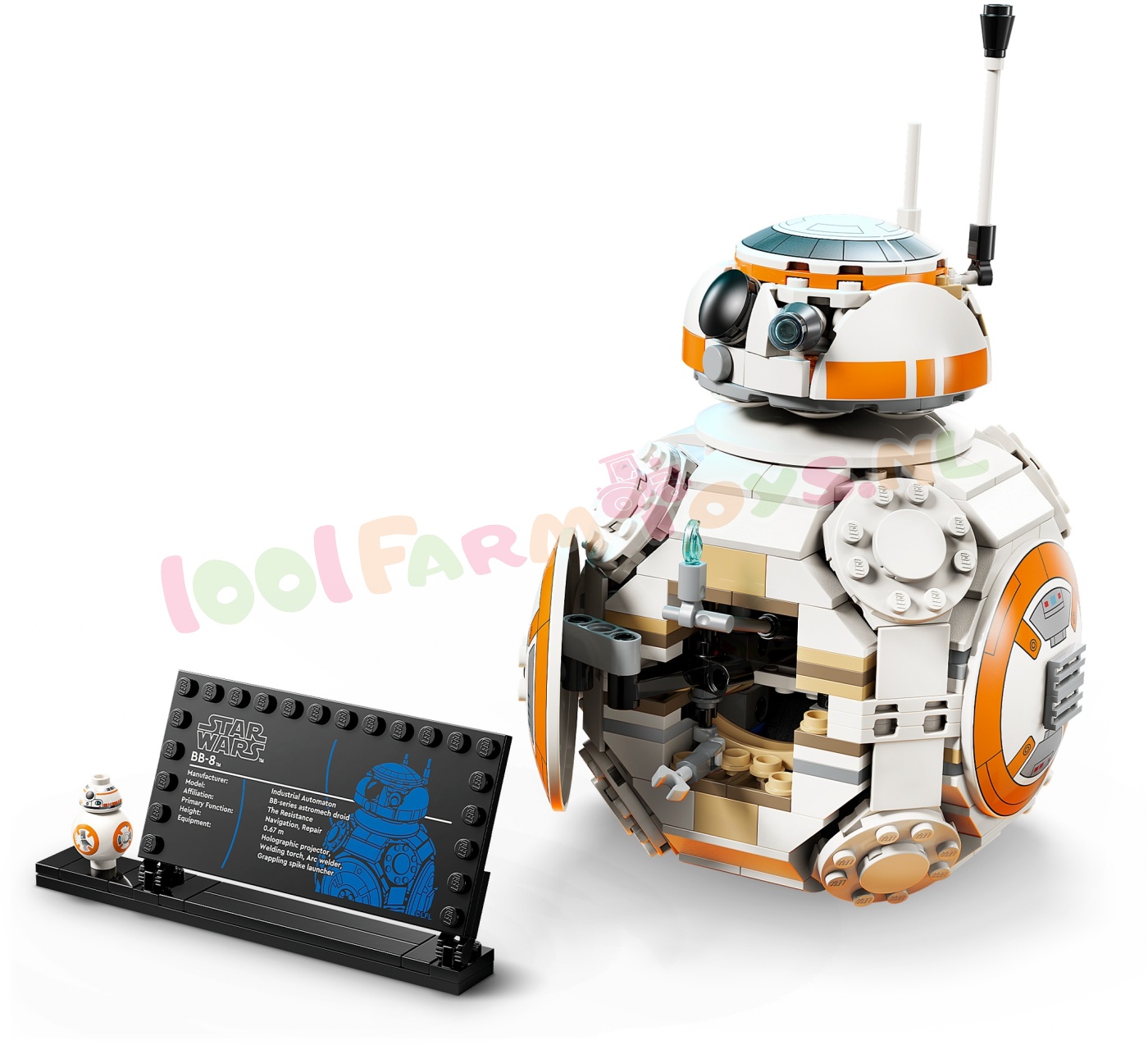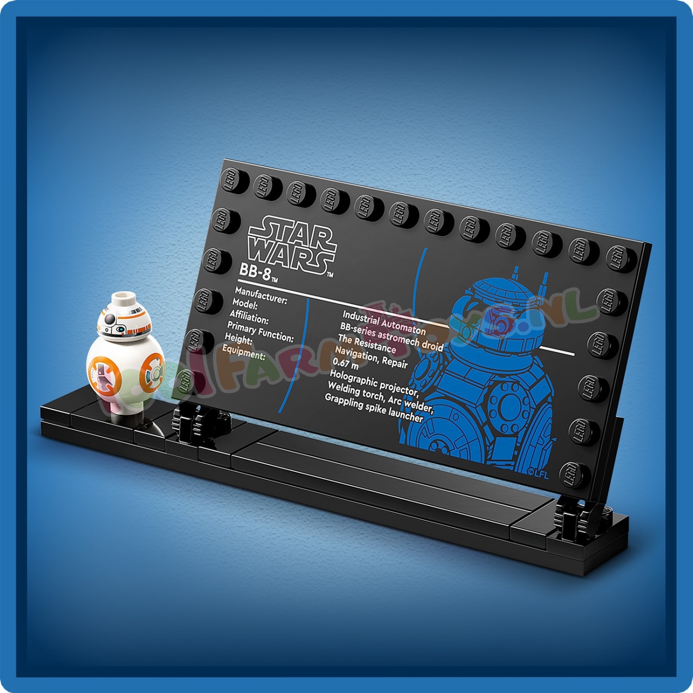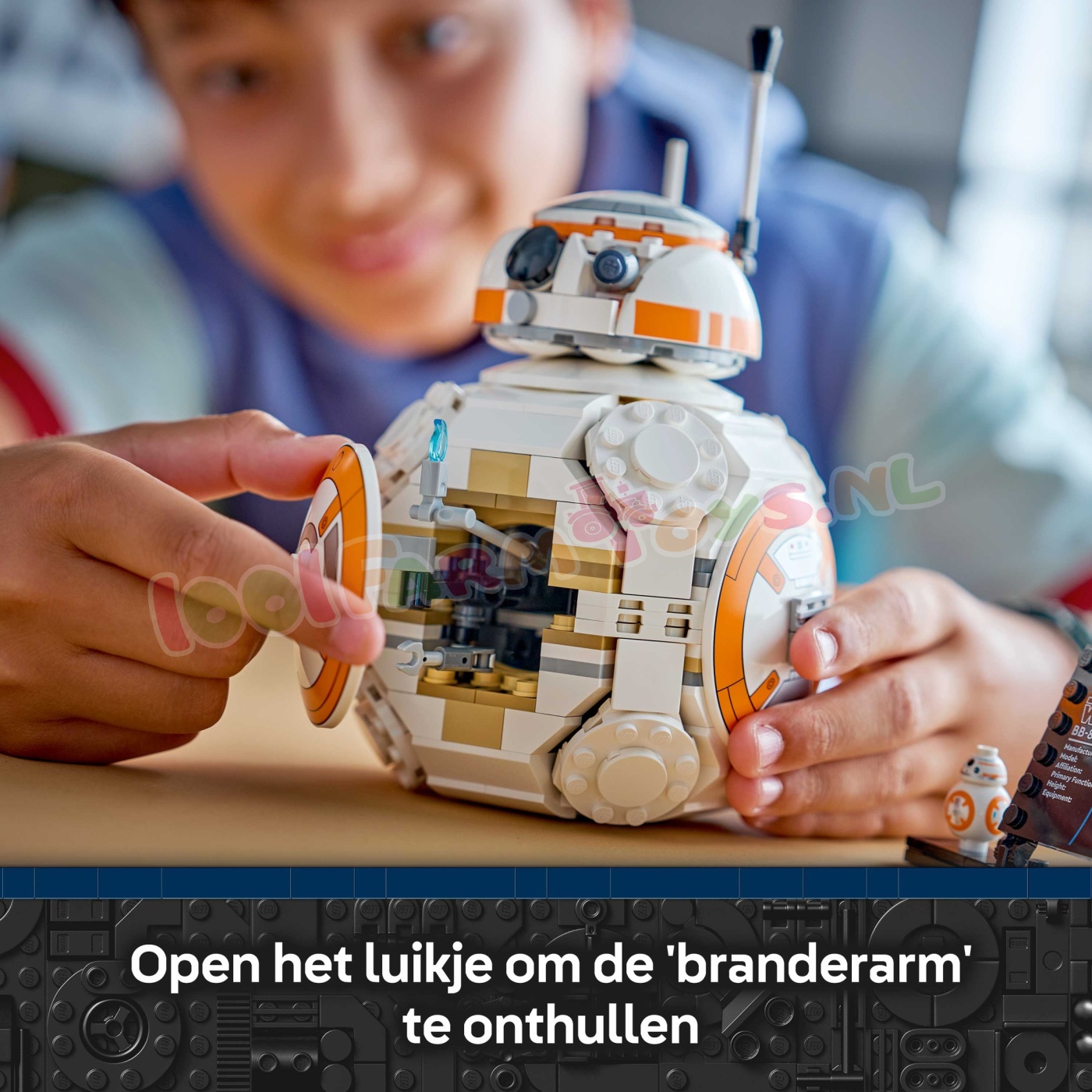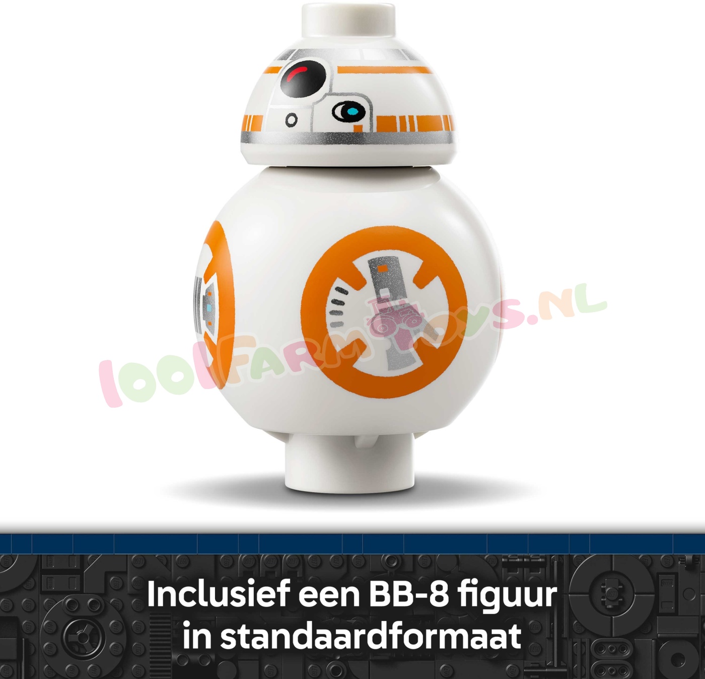 Robots waren nooit eerder zo schattig als het model in dit LEGO® Star Wars™ BB-8™ Astromech Droid bouwspeelgoed voor kinderen met ronddraaiend hoofd. Gebruik LEGO stenen om de authentieke details van de bekende droid uit Star Wars: The Force Awakens™ vast te leggen. Verplaats BB-8 over een vlak oppervlak om zijn hoofd in een willekeurige richting te laten draaien. Open het luikje op zijn lichaam om een 'branderarm' te onthullen. zoals de arm die hij gebruikte om zijn duim op te steken naar Finn.Plaats het bouwbare model naast het BB-8 informatieplaatje en de BB-8 LEGO figuur op standaardformaat voor een schattig Star Wars display waar elke fan blij mee zal zijn.Deze bouw- en speelset is een geweldig cadeau voor jongens en meisjes vanaf 10 jaar. Ze kunnen ook genieten van intuïtief bouwplezier met de LEGO Builder app. Bouw met 3D-instructies. zoom in op je model en draai het terwijl je je voortgang bijhoudt – allemaal vanuit de app. De set bevat 569 onderdelen. STAR WARS™ DECORATIE – creëer een speels display met deze BB-8 Astromech Droid LEGO® bouwset (75452) voor kinderen van 10 jaar en ouder DYNAMISCH DISPLAY – beweeg BB-8 over een vlak oppervlak om zijn hoofd automatisch in allerlei richtingen te laten ronddraaien VERBORGEN FUNCTIE – open het luikje op het lichaam van BB-8 om een 'branderarm' te onthullen. zoals de arm die hij gebruikte om zijn duim op te steken naar Finn in Star Wars: The Force Awakens™ BB-8 LEGO® FIGUUR – zet het bouwbare hoofdmodel neer naast het BB-8 informatieplaatje en de BB-8 LEGO figuur van standaardformaat CADEAU VOOR KINDEREN – deze bouwset is een schattig cadeau voor jongens. meisjes en LEGO® Star Wars™ fans en verzamelaars vanaf 10 jaar DIGITALE BOUWINSTRUCTIES – de LEGO® Builder app begeleidt kinderen op een bouwavontuur waarmee ze kunnen inzoomen. sets kunnen draaien met behulp van 3D-instructies en hun voortgang kunnen opslaan en bijhouden ONTMOET MEER DROIDS – BB-8 heeft dezelfde schaal als R2-D2™ (75379). C-3PO (75398) en andere droids in de LEGO® Star Wars™ verzamelsets. elk apart verkrijgbaar AFMETINGEN – de BB-8 figuur in deze 569-delige bouwset is ca. 9 cm hoog.