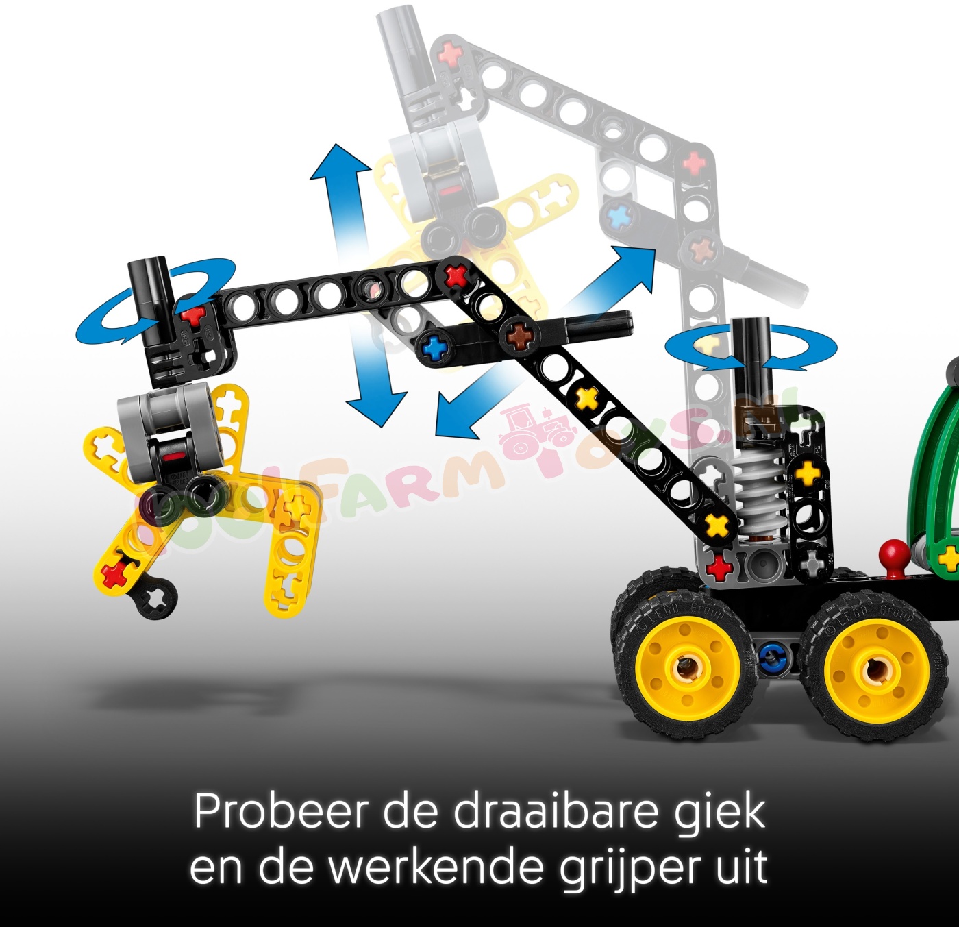 HOUTOOGSTMACHINE – LEGO® Technic John Deere 1470H houtoogstmachine (42218) met draaibare arm en werkende klauw voor kinderen vanaf 7 jaar die dol zijn op bouwvoertuigen