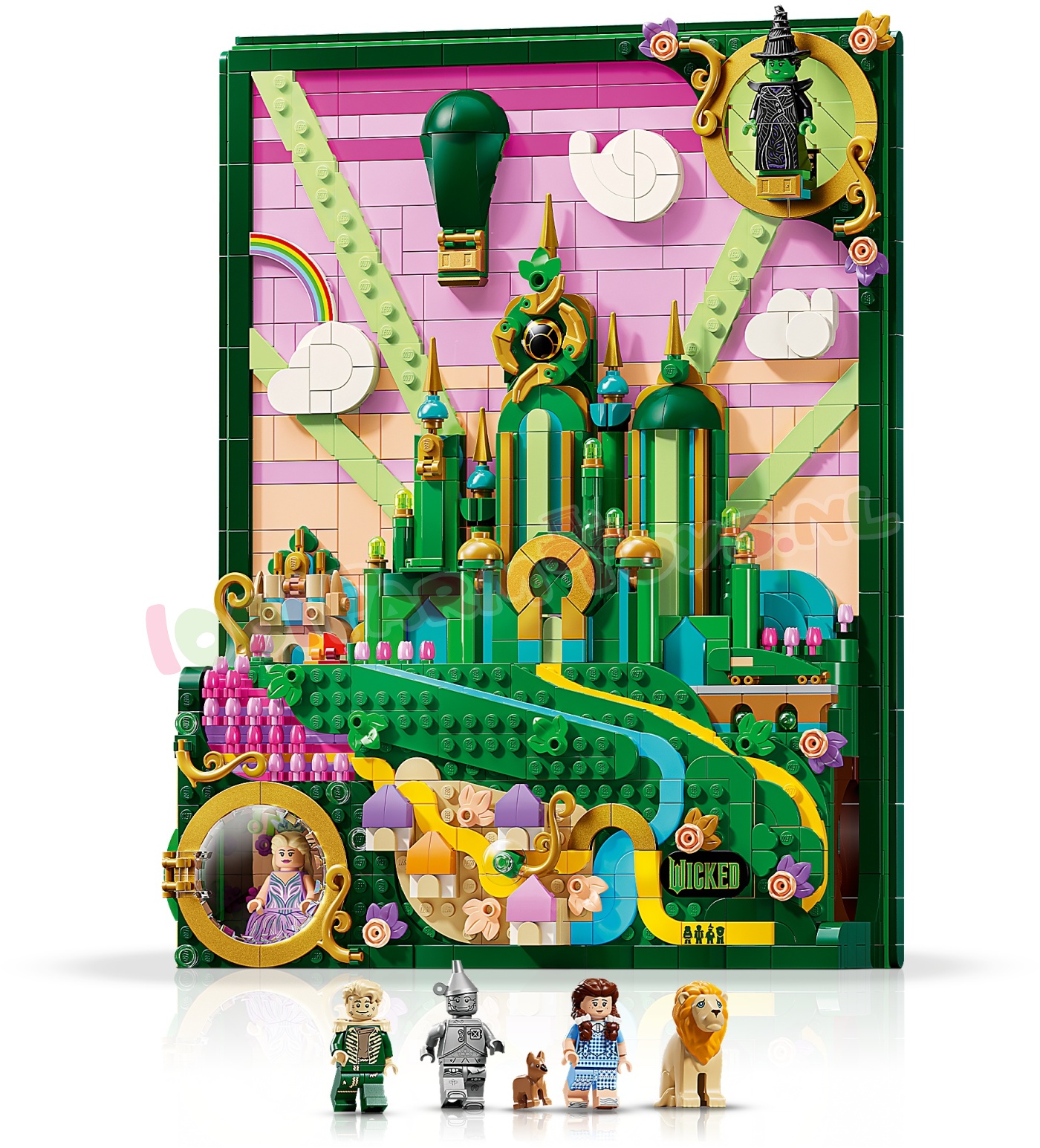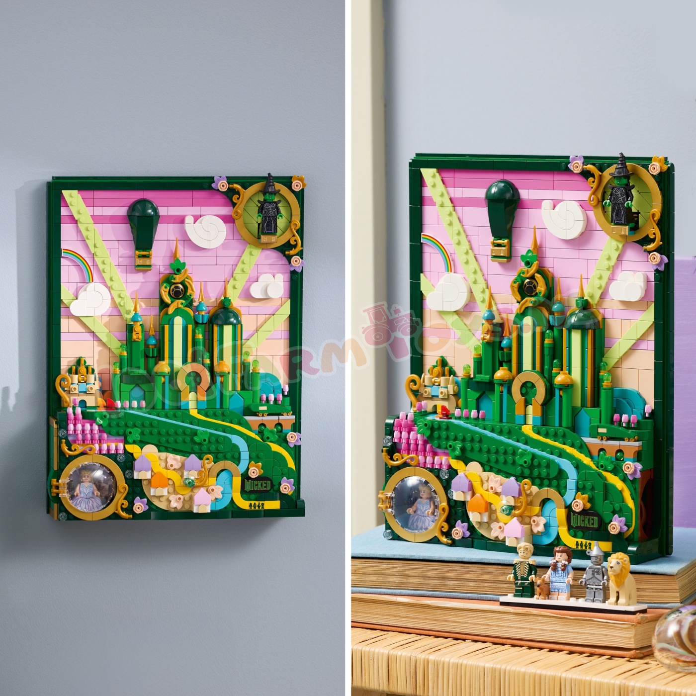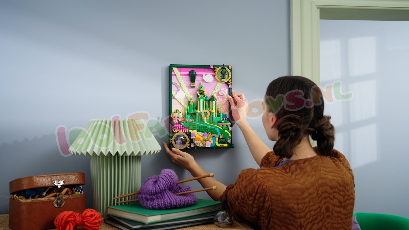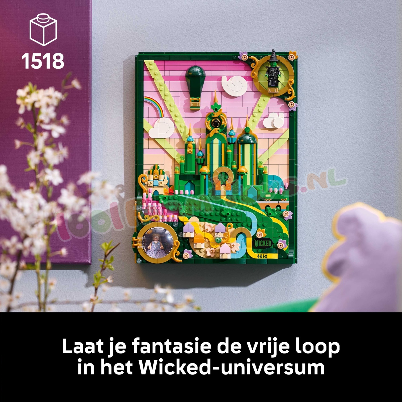 LEGO® Wicked bouwset voor volwassenen – haal filmavonturen in huis met deze fantasierijke Emerald City muurkunst set inclusief 6 minifiguren. plus een figuur van Toto en allerlei verborgen verwijzingen
