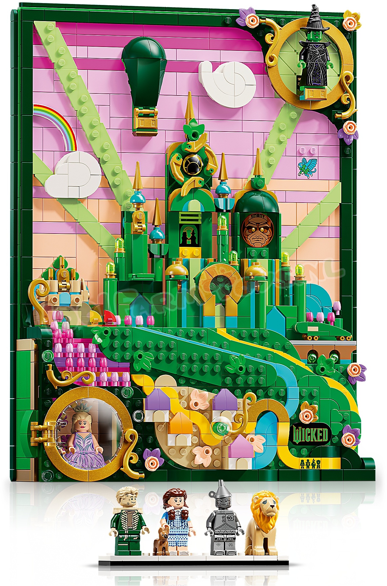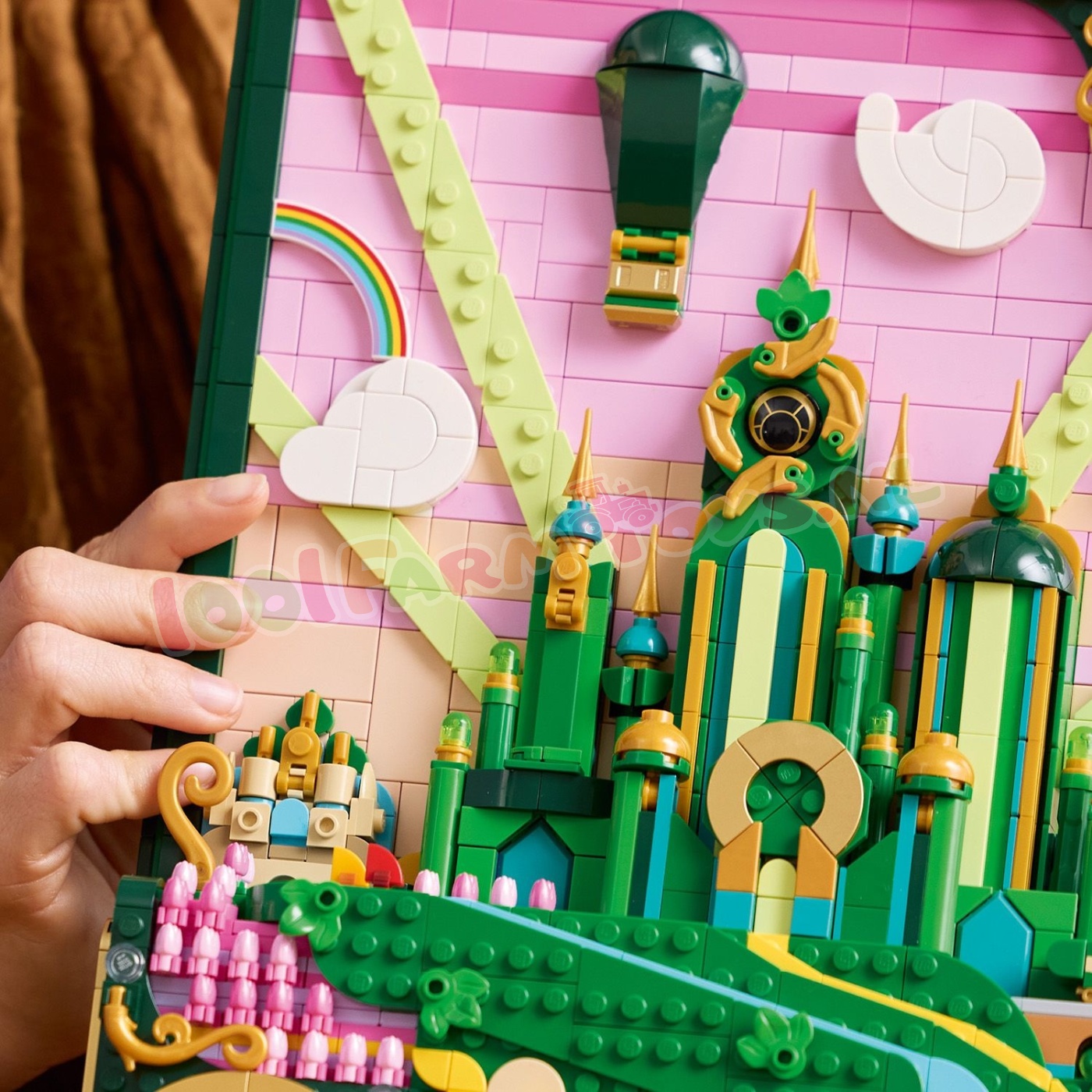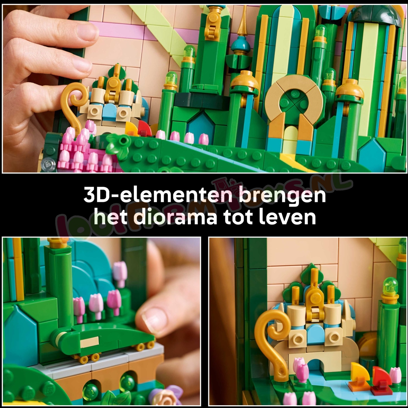 LEGO® Wicked bouwset voor volwassenen – haal filmavonturen in huis met deze fantasierijke Emerald City muurkunst set inclusief 6 minifiguren. plus een figuur van Toto en allerlei verborgen verwijzingen