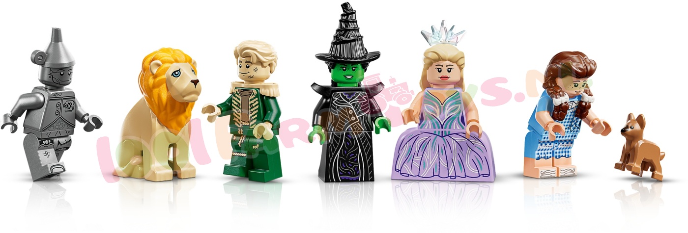 7 personages en minifiguren – het LEGO® kunstwerk bevat Elphaba die over Emerald City vliegt. Glinda die in haar zeepbel zweeft. plus Dorothy Gale. de Laffe Leeuw. de Vogelverschrikker. de Blikken Man en Toto